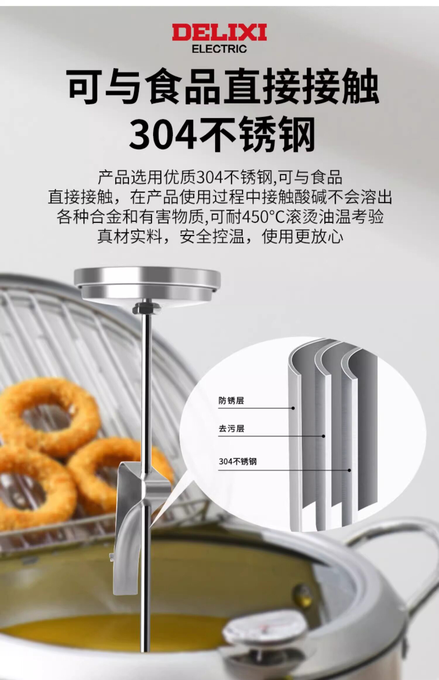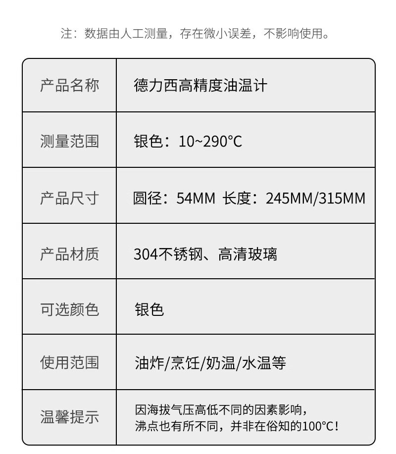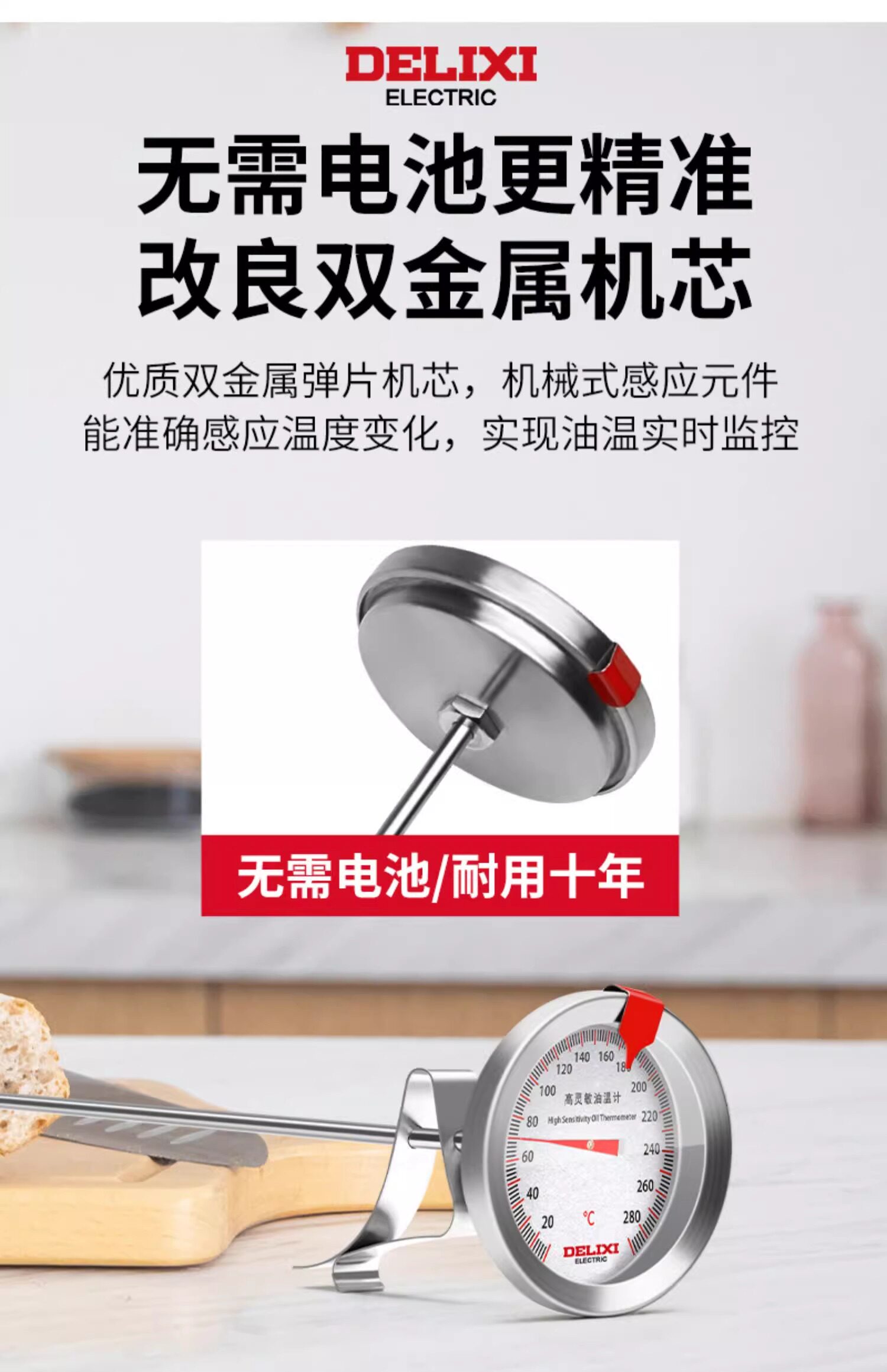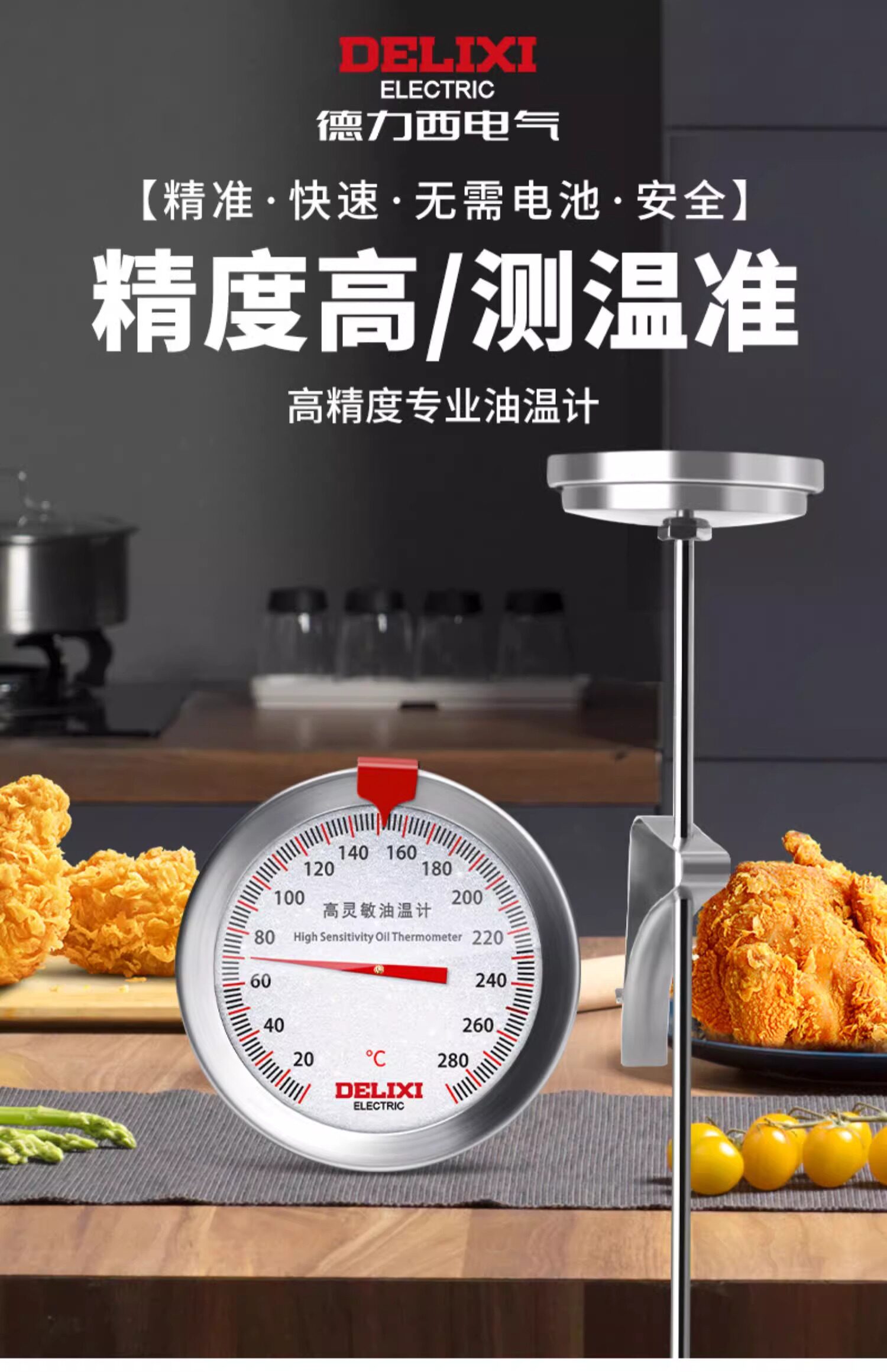 Delixi Oil Thermometer Kitchen Thermometer Baking Barbecue Liquid Food Thermometer High-Precision Commercial Oil Temperature Meter
