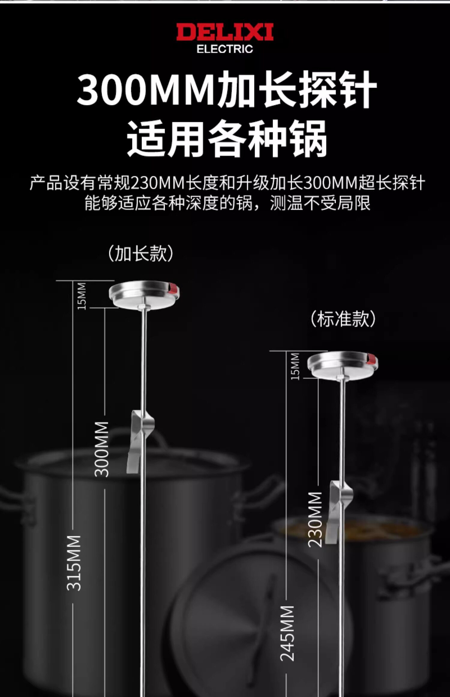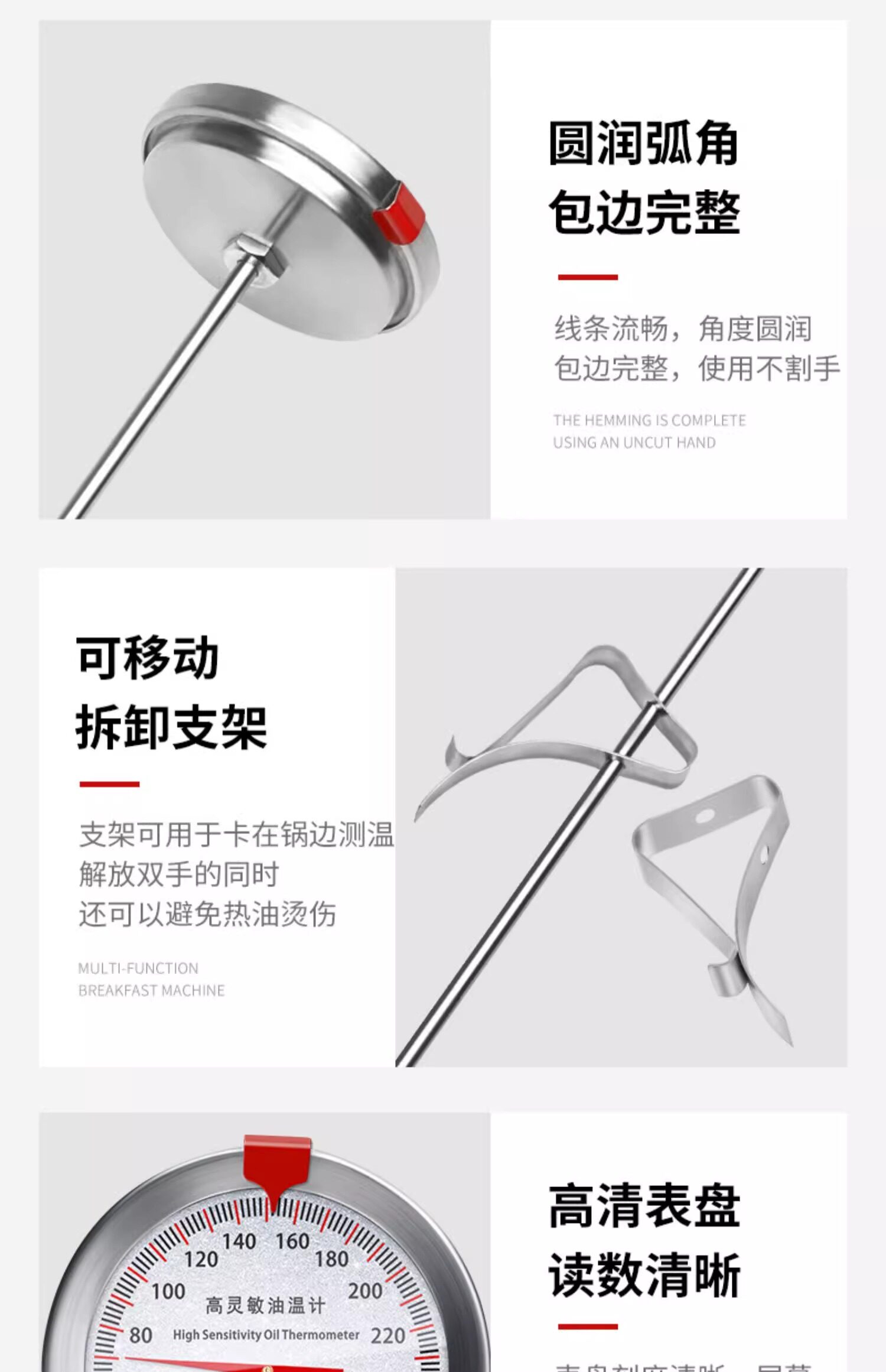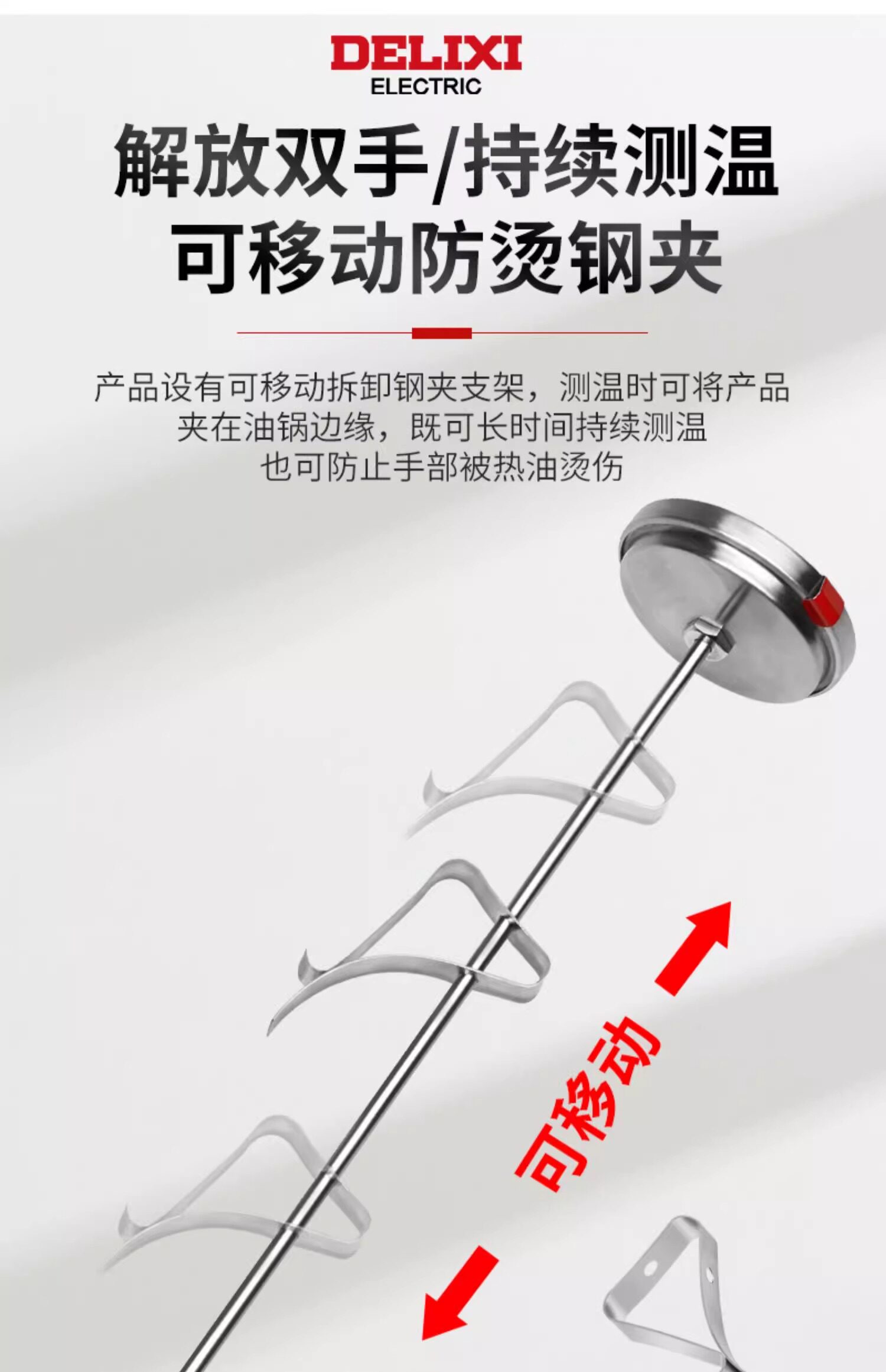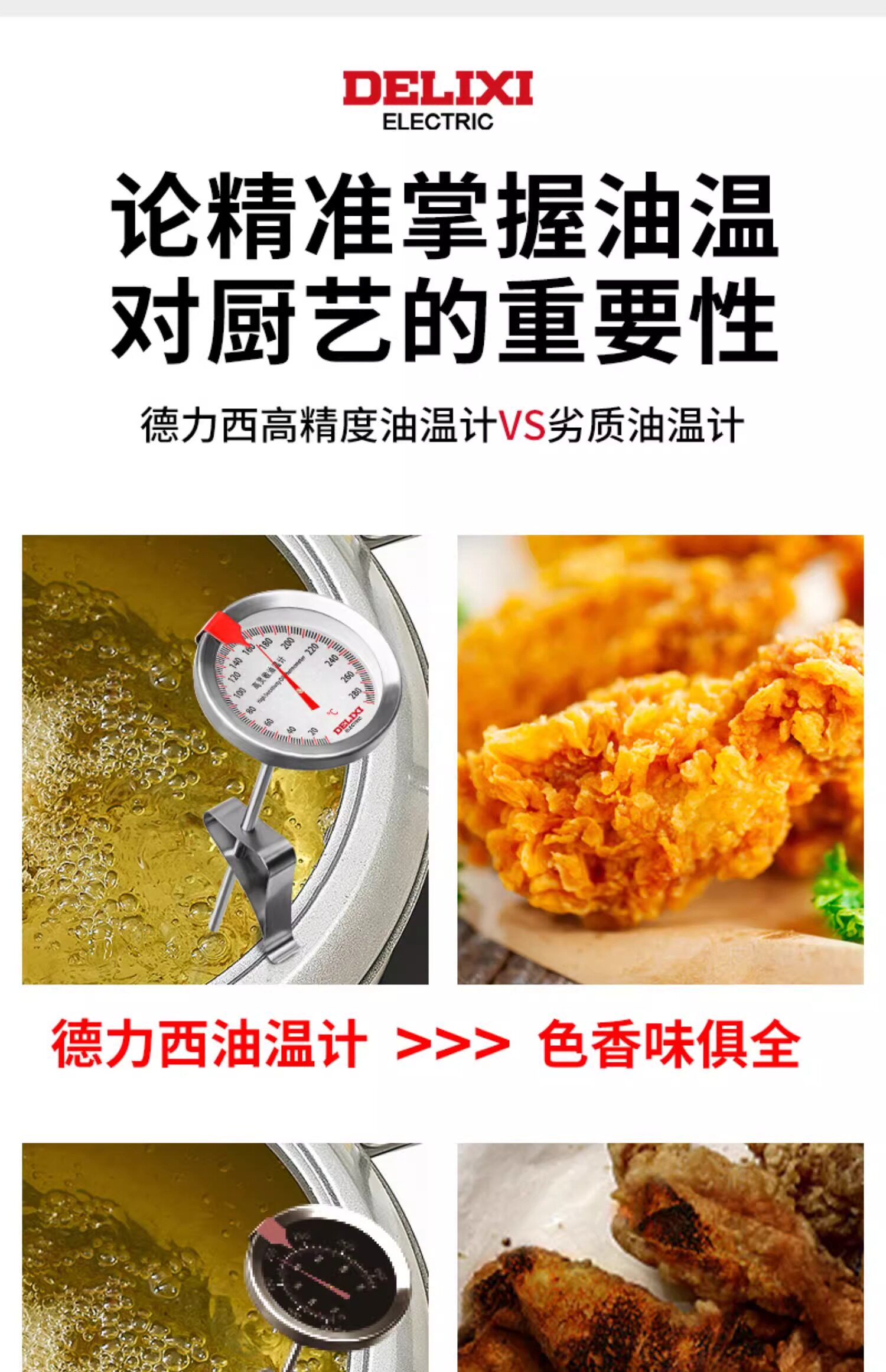 Delixi Oil Thermometer Kitchen Thermometer Baking Barbecue Liquid Food Thermometer High-Precision Commercial Oil Temperature Meter