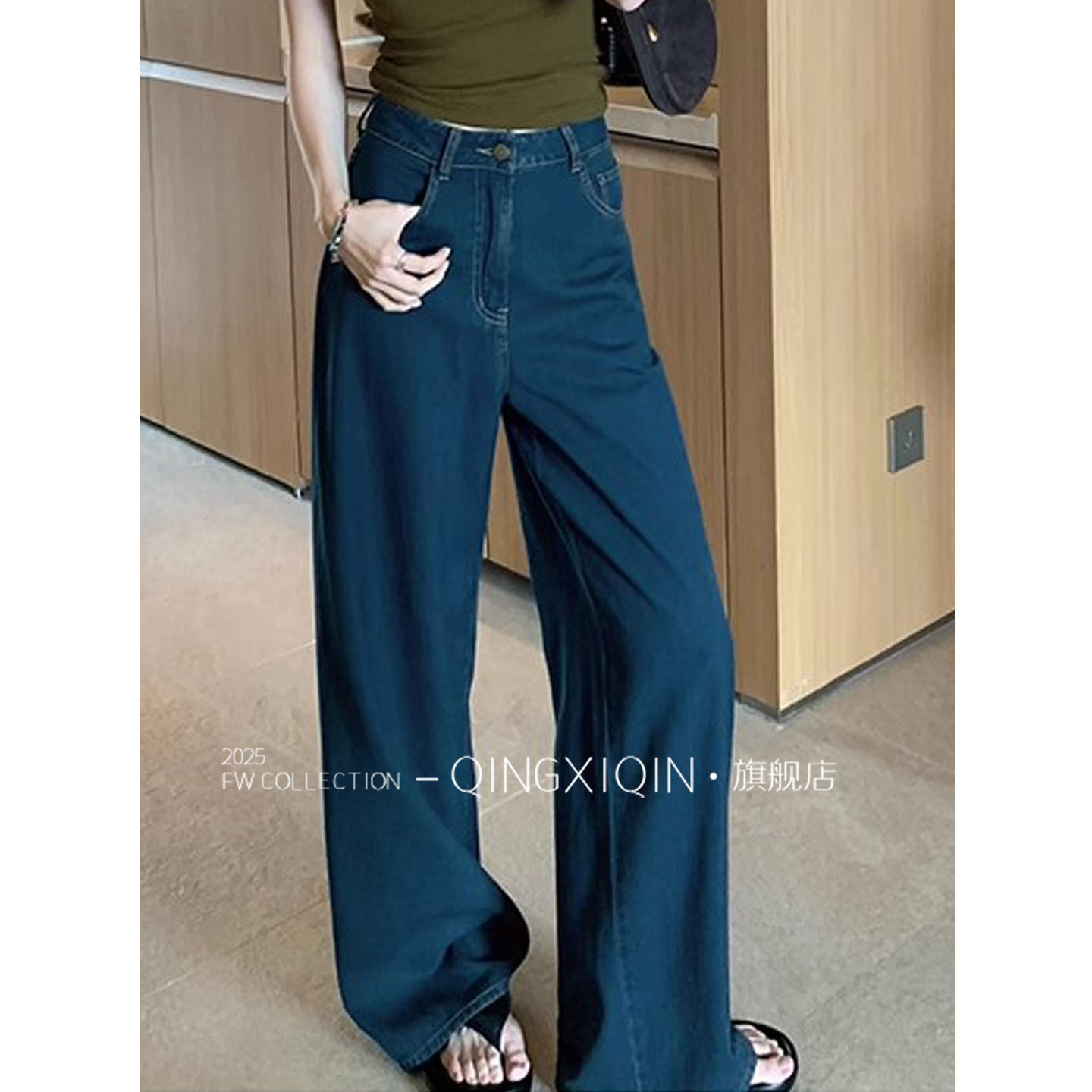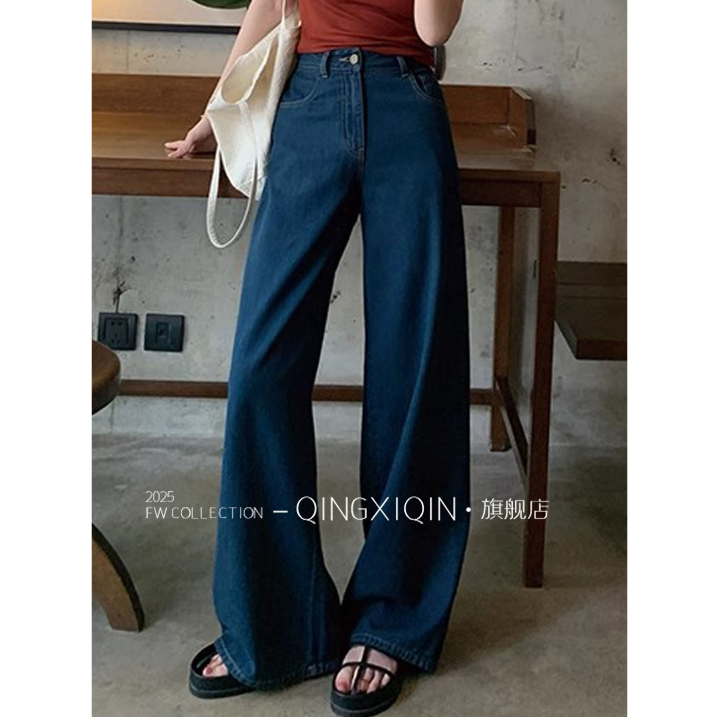 Dark Blue Retro Washed Jeans Wide Leg Pants for Women ◆ 25 Summer High-Waist Slim Straight Pants Floor-Length Pants