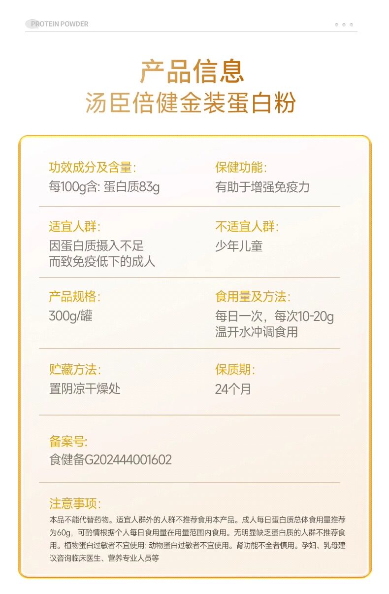 Tomson By-Health Gold Protein Powder Enhances Immunity with Dual Animal and Plant Proteins, Official Product for Middle-Aged and Elderly People