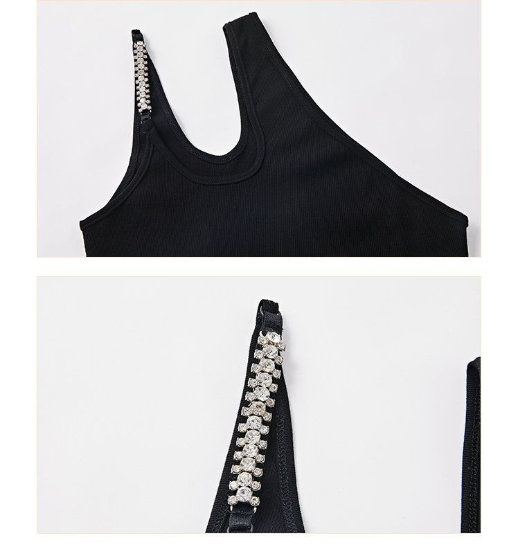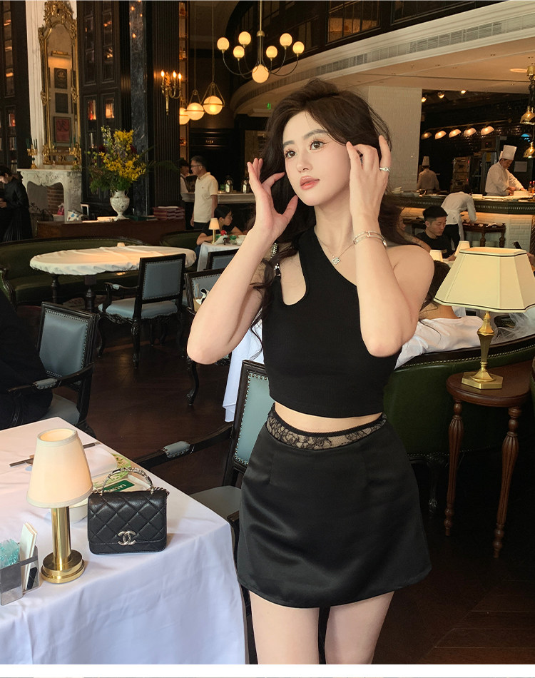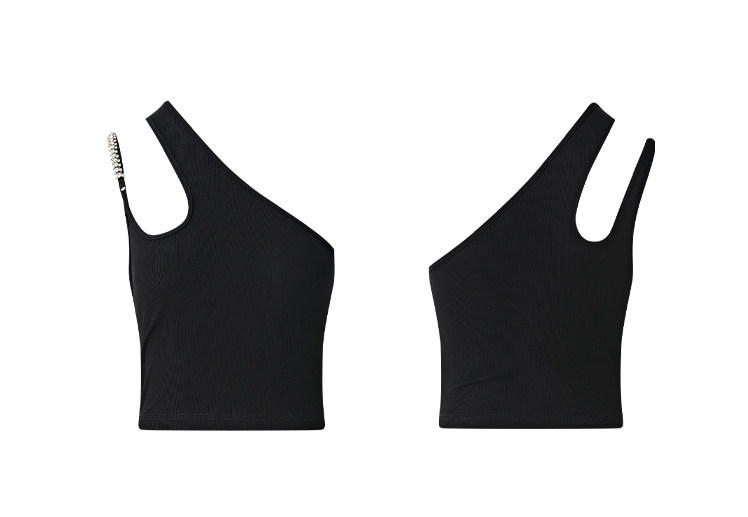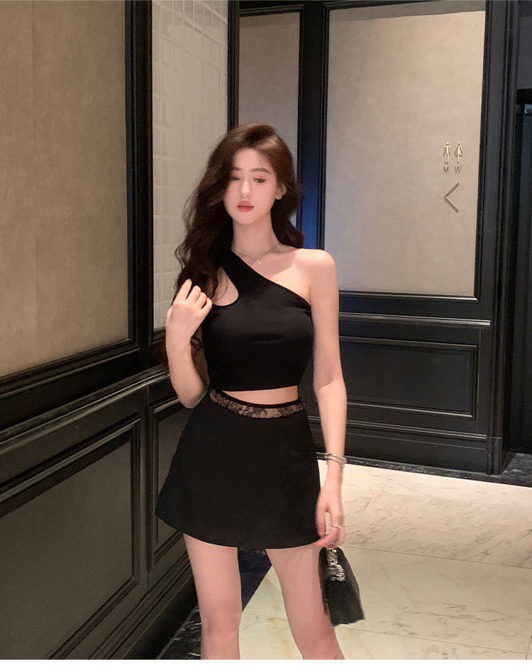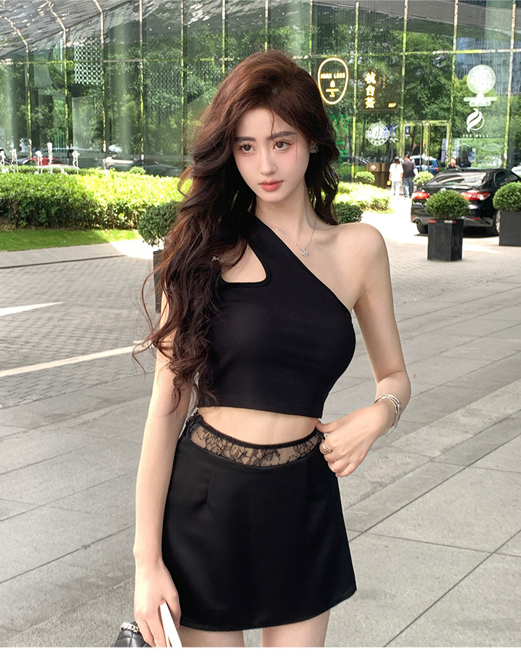 Hollin oblique shoulder sleeveless T-shirt women's summer waist slimming celebrity irregular bust sexy hot girl short top