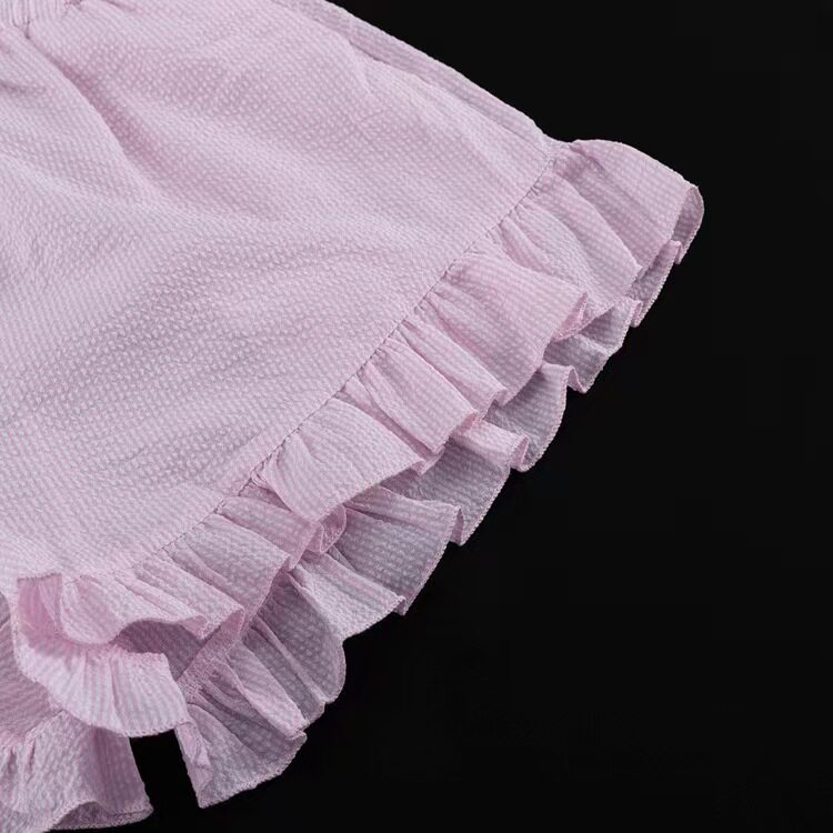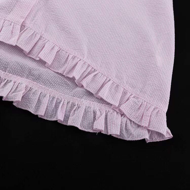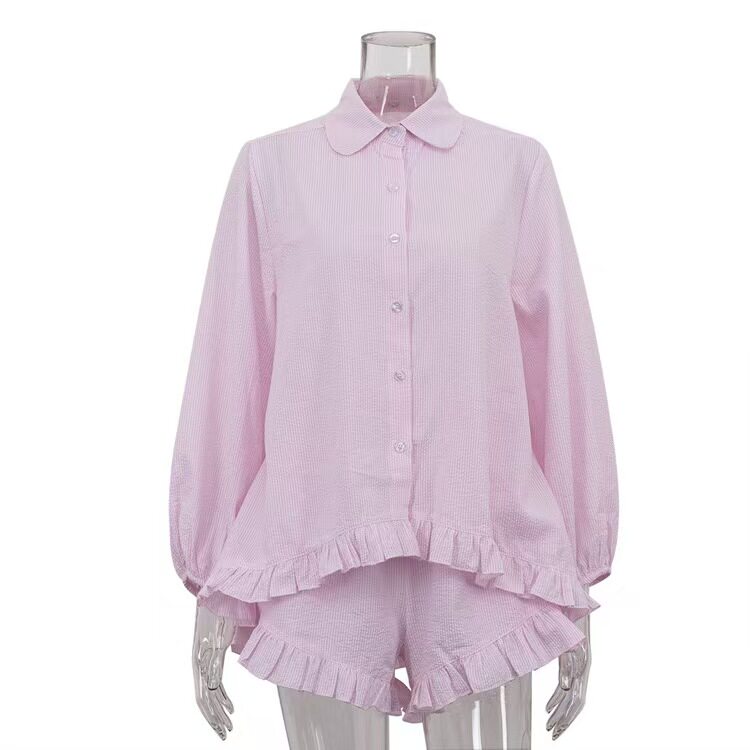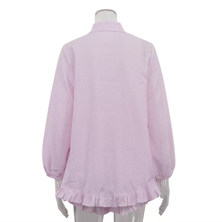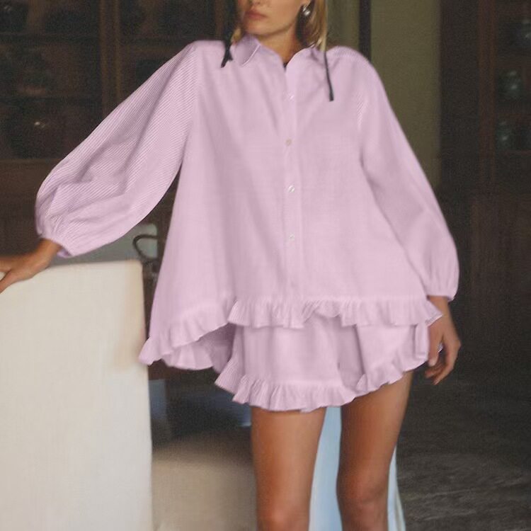 European and American Style New Fashion Lapel Long-Sleeved Ruffled Shirt and Shorts Set