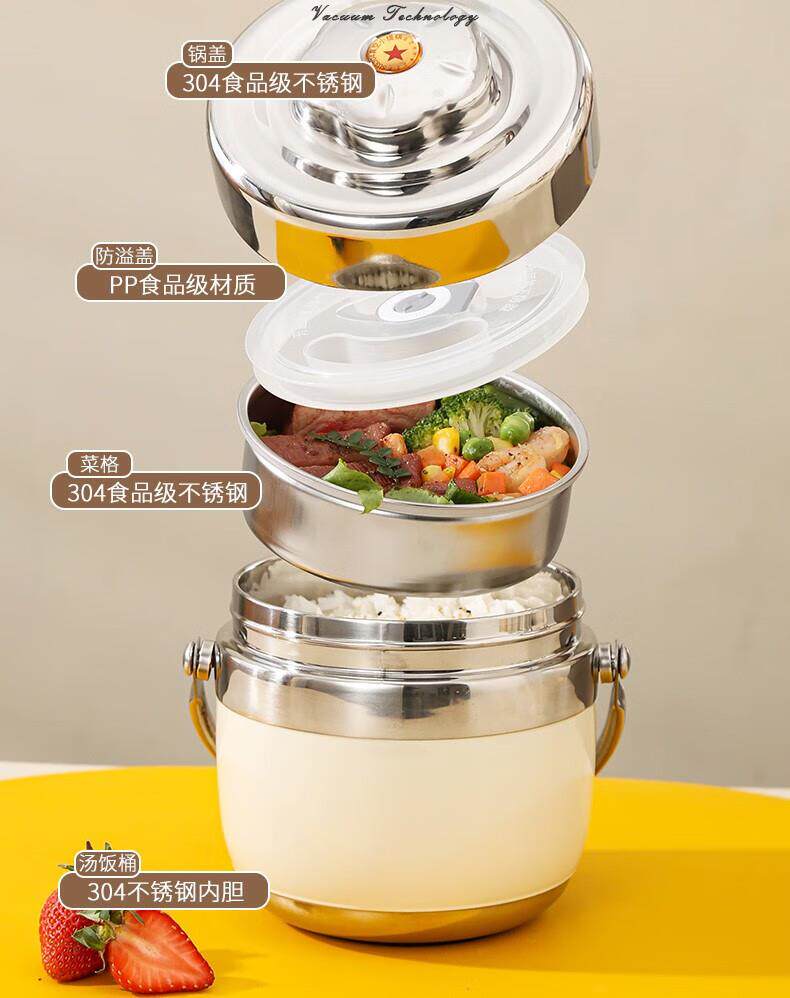 Double-Layer Vacuum Insulated Lunch Box Pot, Large Capacity, Winter, Super Strong 24-Hour Long-Lasting Insulation, Soup Pot with Handle