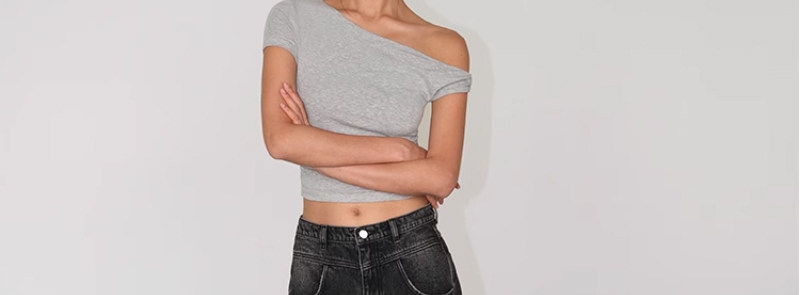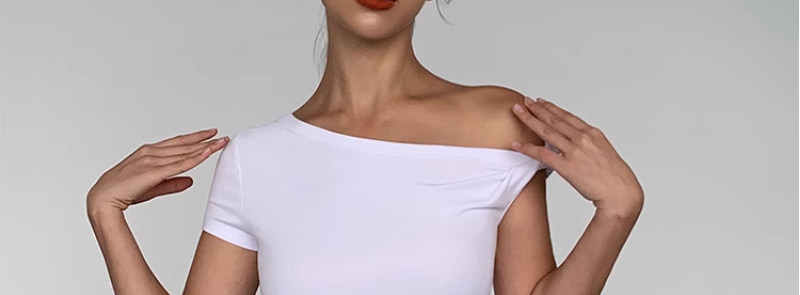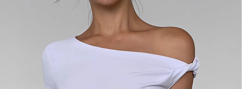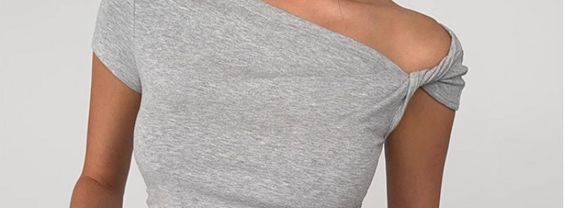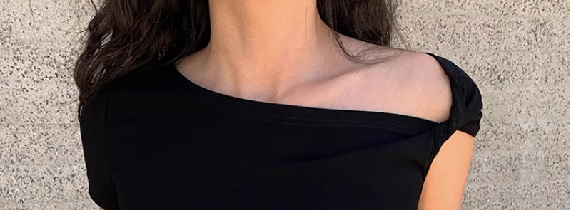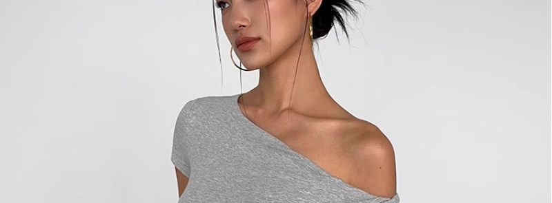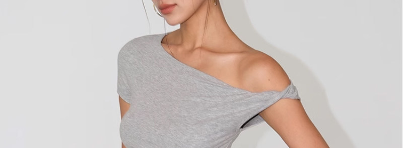 Trendy and Unique Off-Shoulder Tight-Fitting Top for Women in Summer, Super Popular, Age-Reducing, Chic, Slimming, Twisted Asymmetrical Shoulder T-Shirt