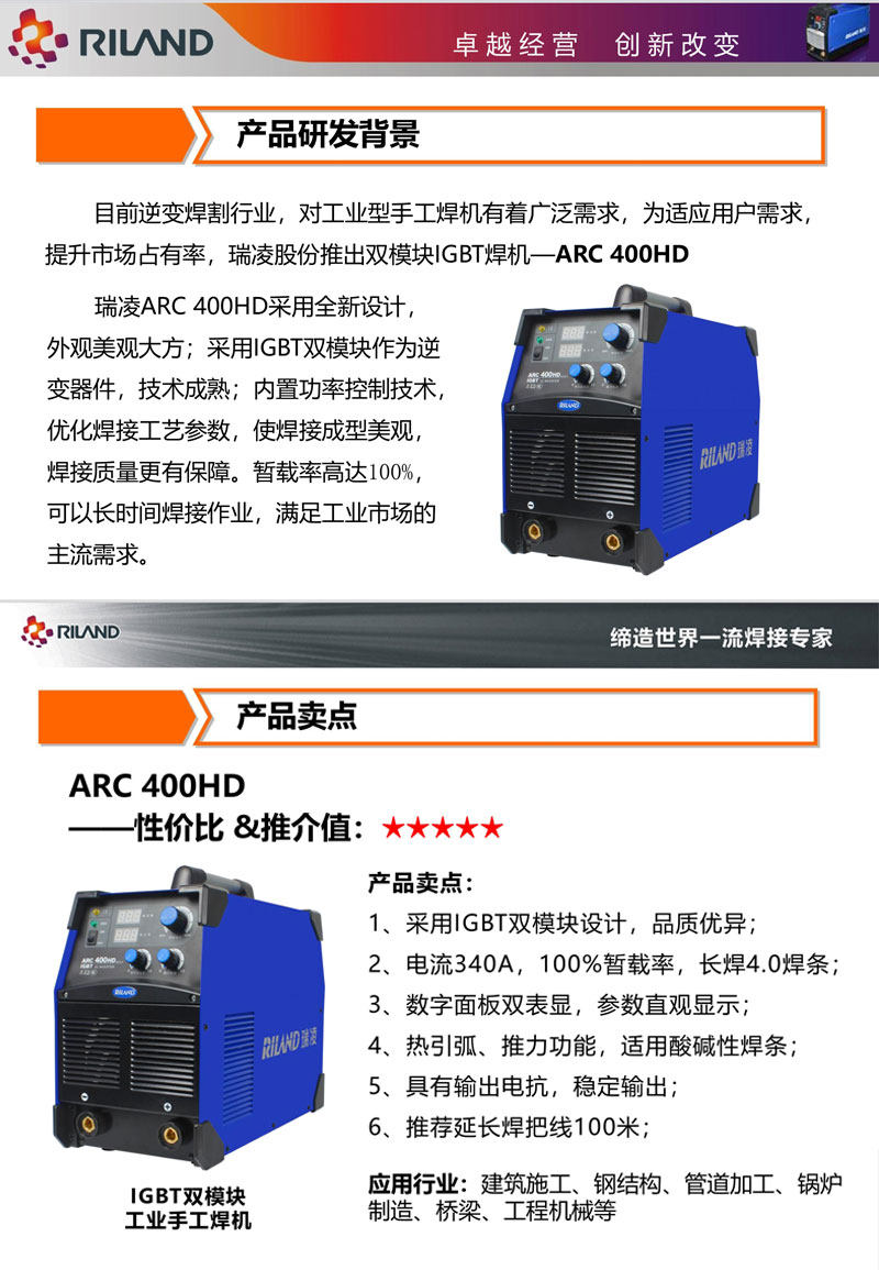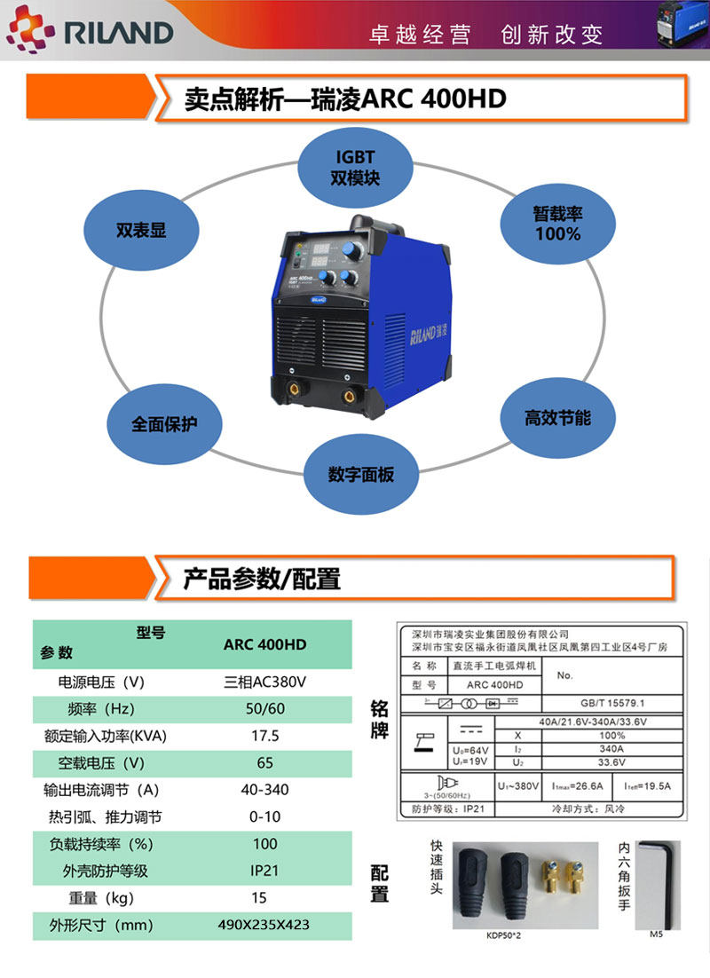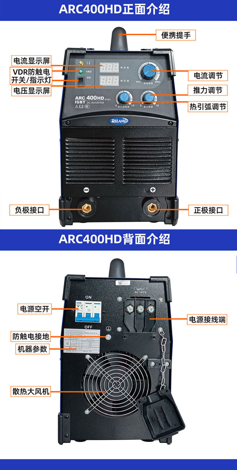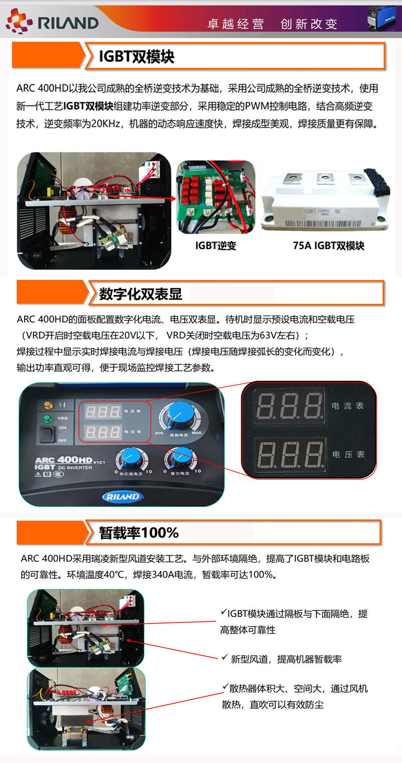 Ruiling Welding Machine Arc400Hd Industrial Grade Igbt Dual-Mode Fast 380V 0m Long Distance Long Welding Temporary Rate 100%