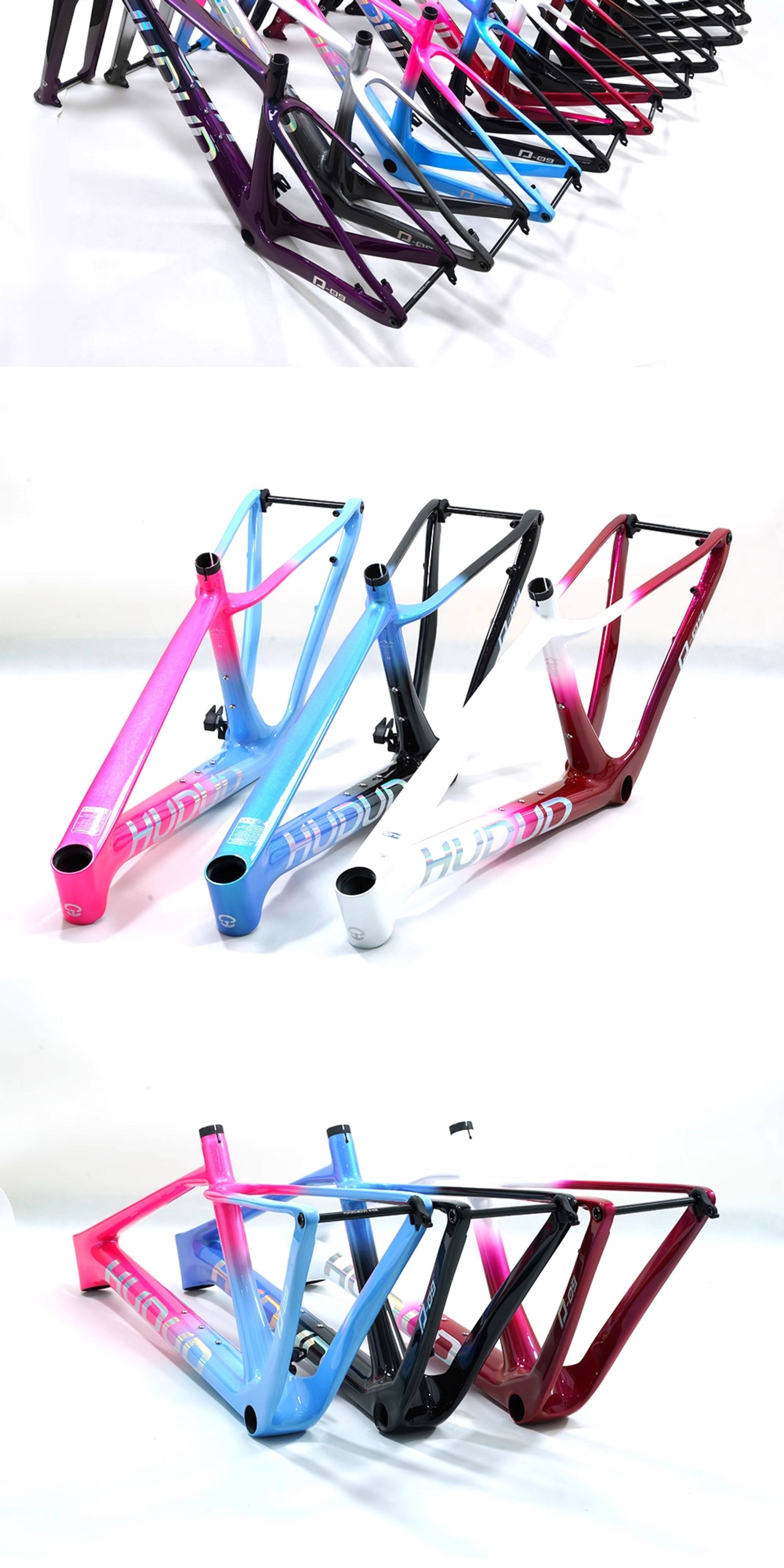 Hudud Curved Carbon Fiber Mountain Bike Frame 29inch Hardtail Internal Routing Full Carbon Fiber Lightweight Mountain Bike Colorful Frame