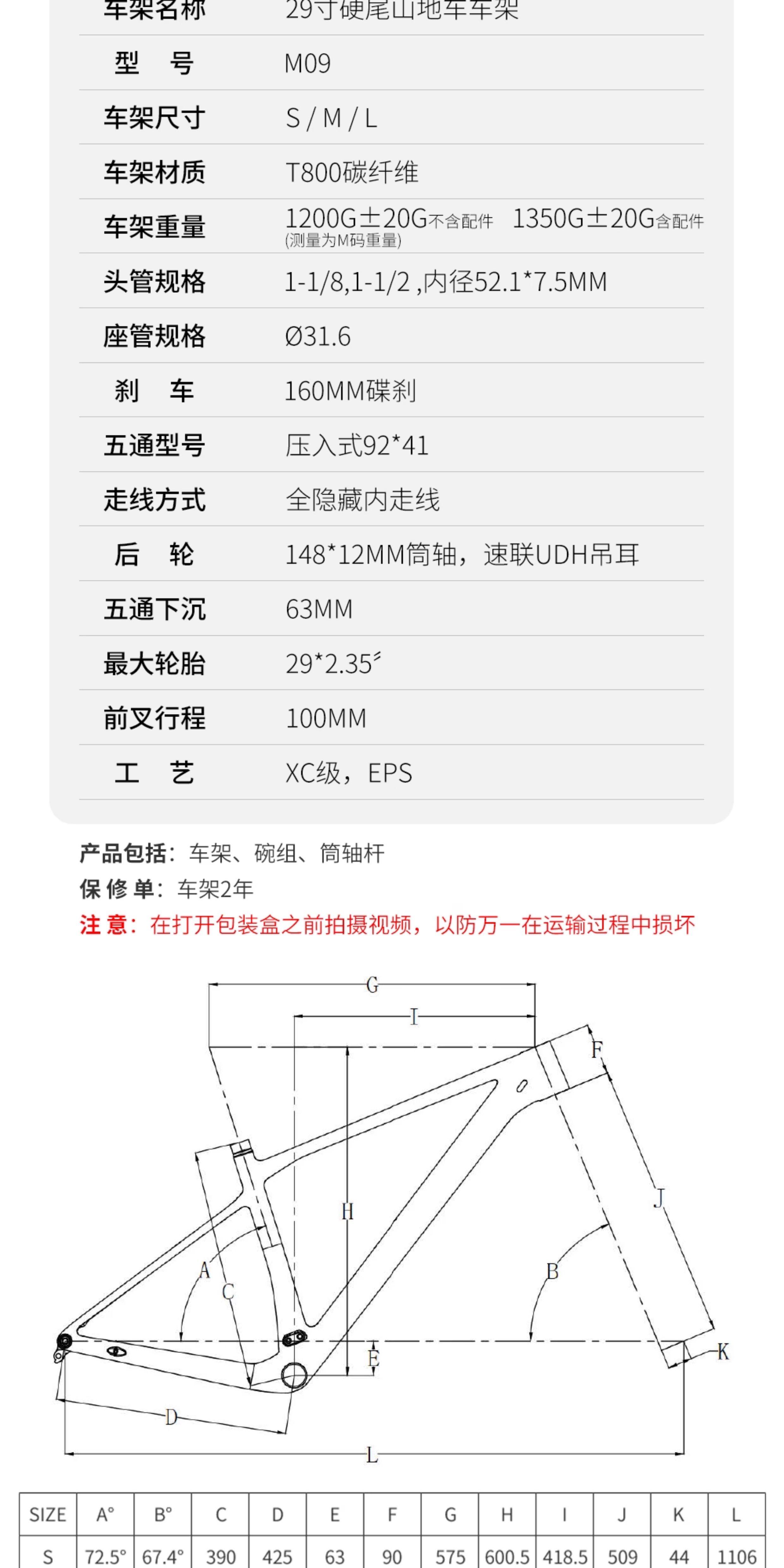 Size 15inch S (Recommended Height 155-170),17inch m (Recommended Height 165-179),19inch L (Recommended Height 175-189)