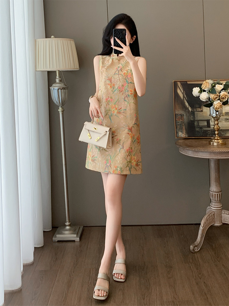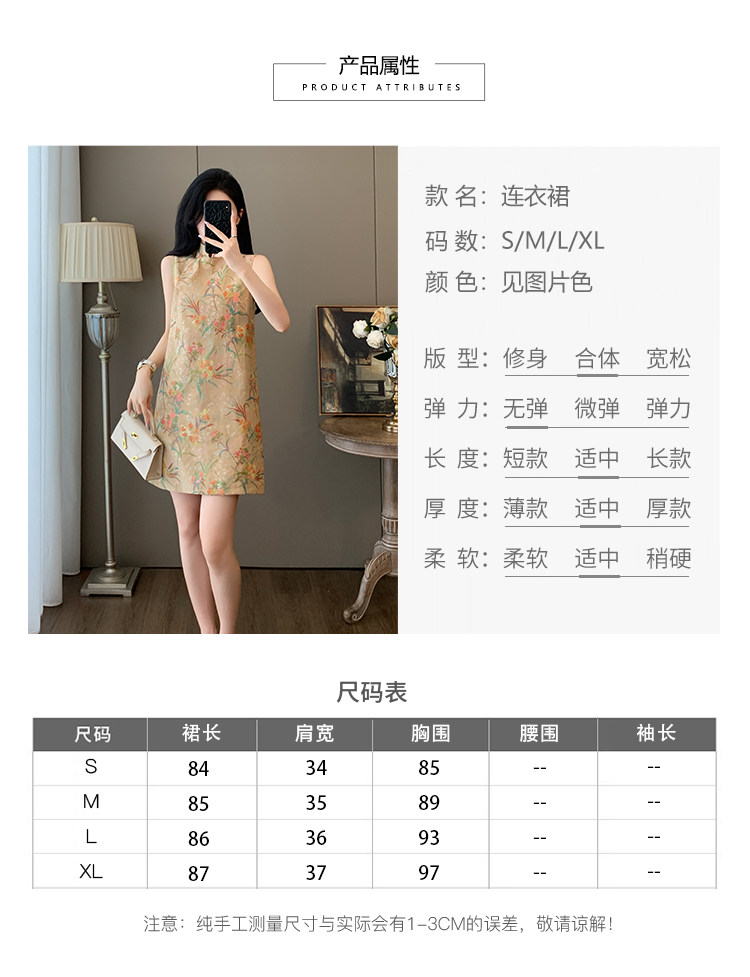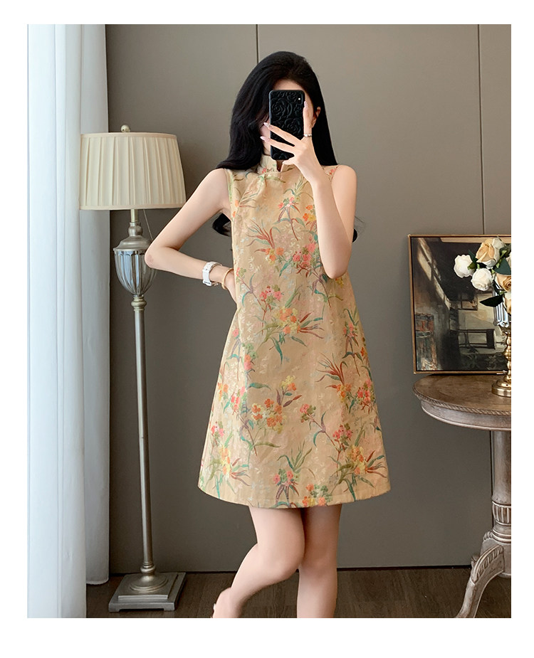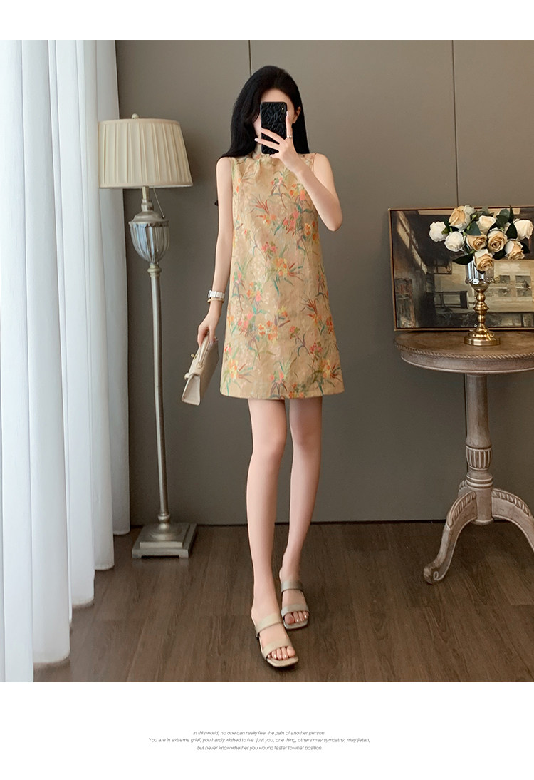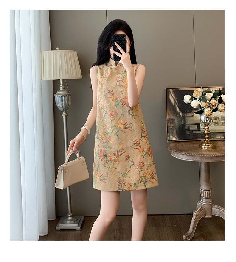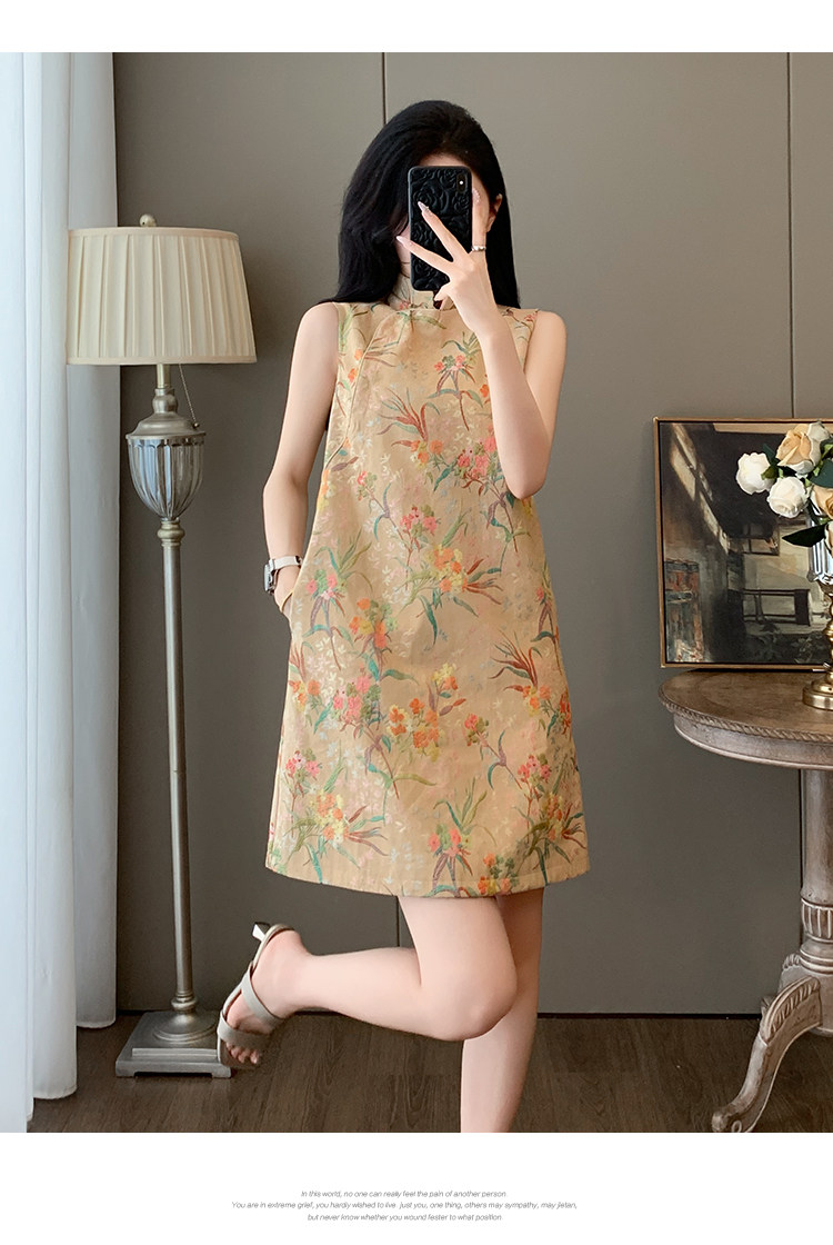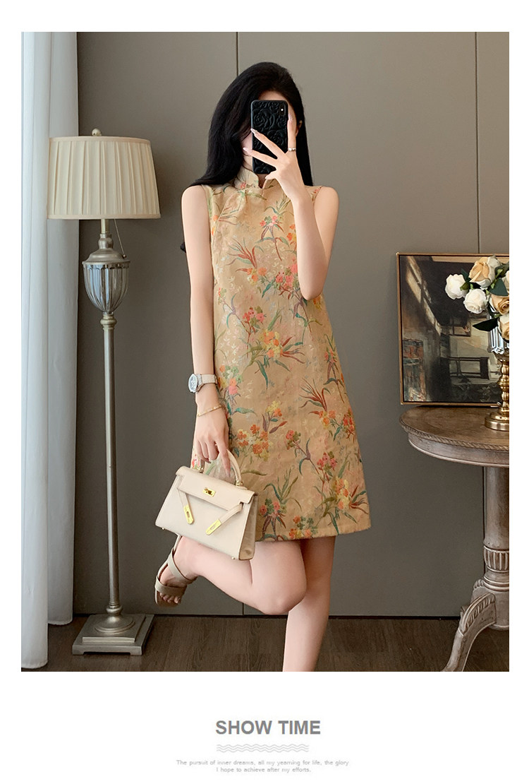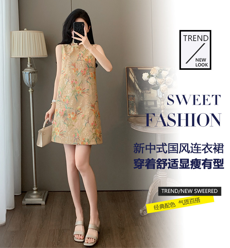Summer Fashion New Chinese Style Sleeveless Jacquard Dress for Women, National Style Elegant Stand-Up Collar, Stunning Loose-Fitting Improved Cheongsam Dress