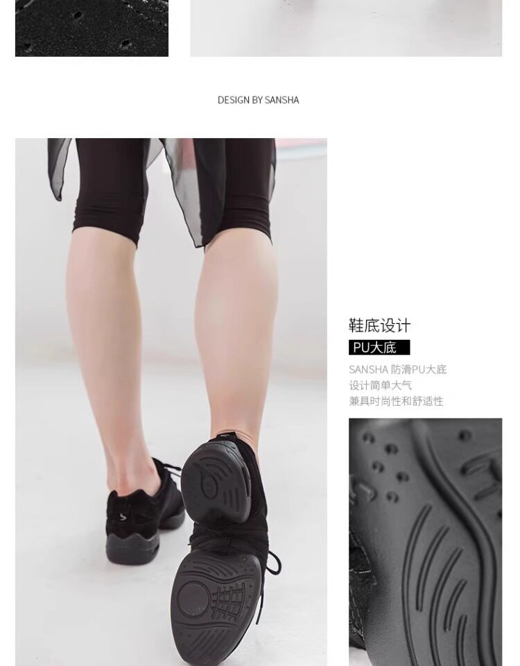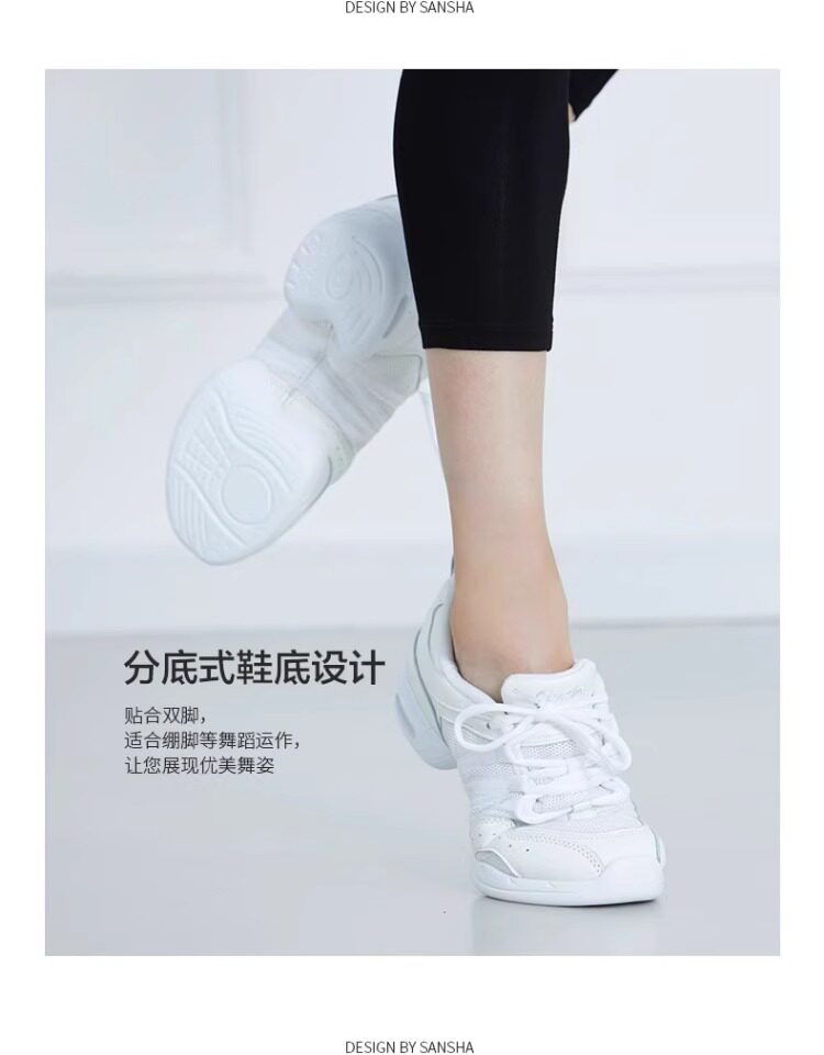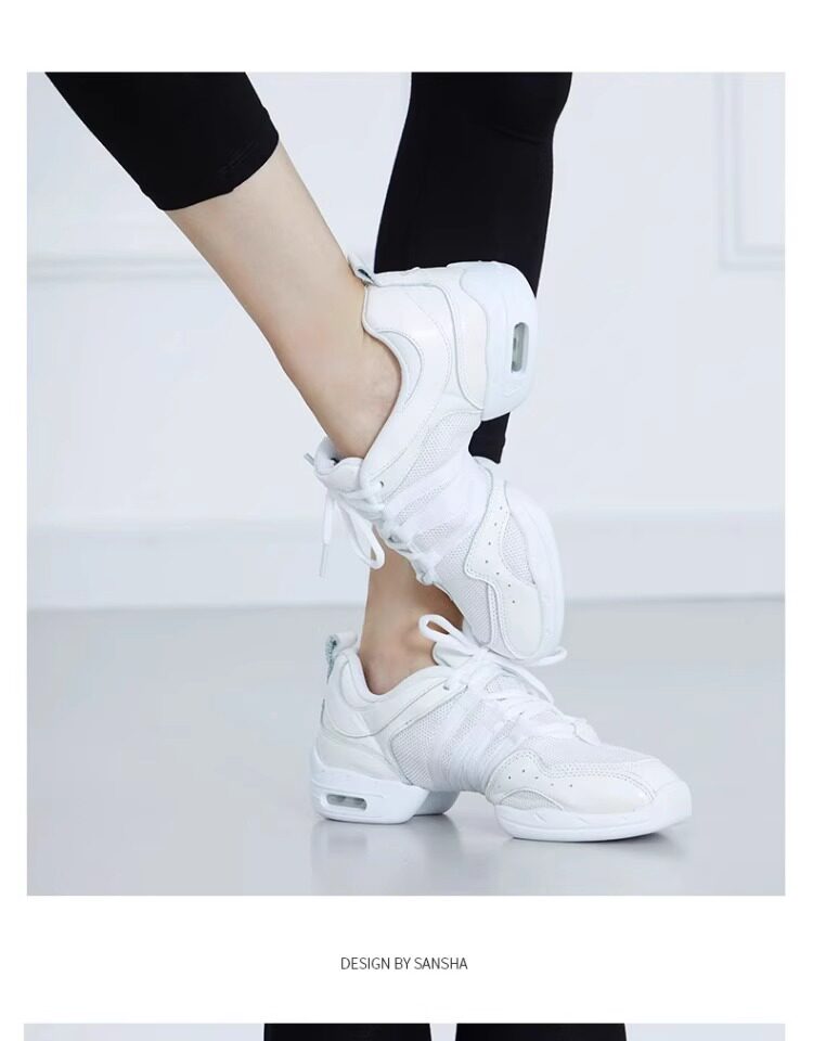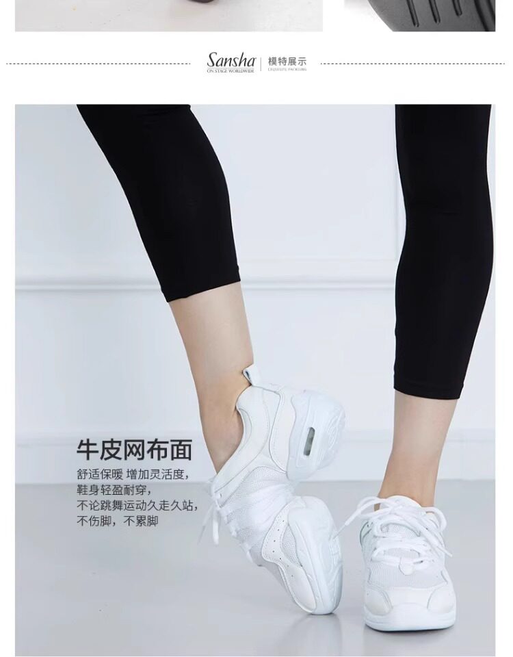 Sansha Modern Jazz Square Dance Shoes Cowhide Mesh Air Cushion Fashion Sports Dance Shoes Women White