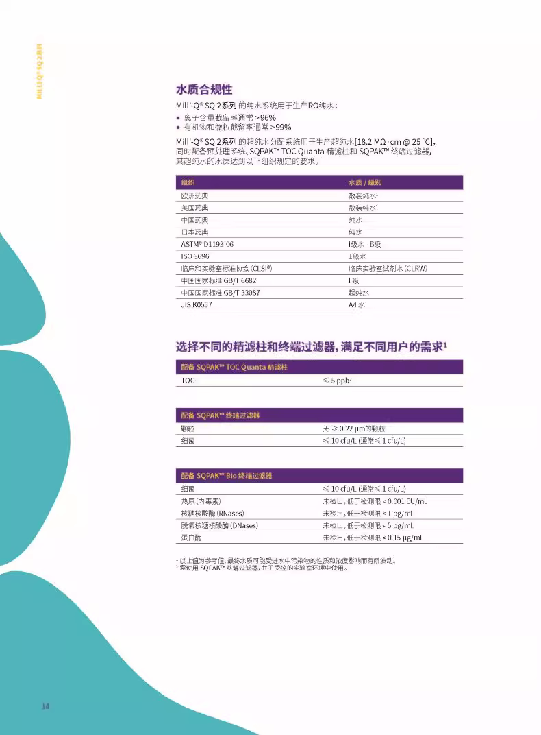 Color Classification Milli-Q® Sq 200P (Excluding Pure Column),Milli-Q® Sq 200P Ultrapure Water System,Sopak Terminal Filter,Sqpak Quanta Purification Column