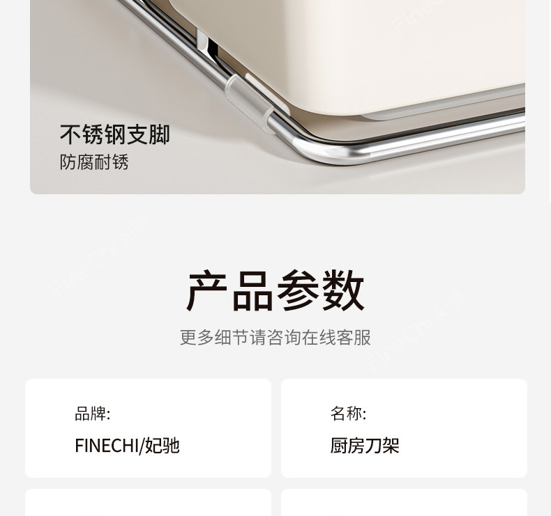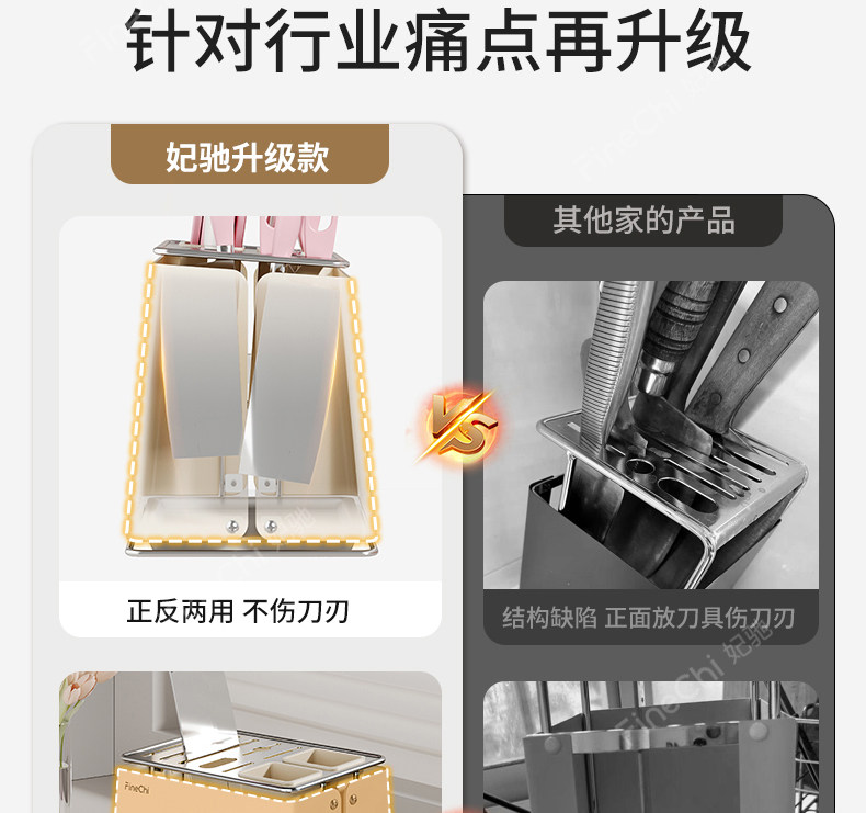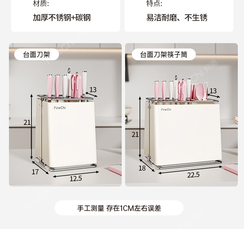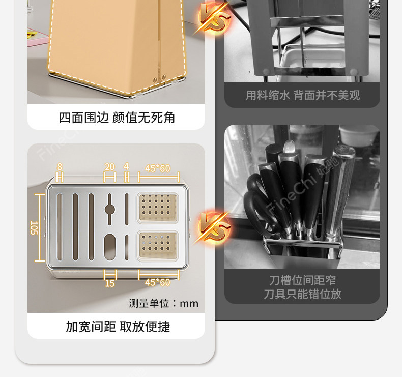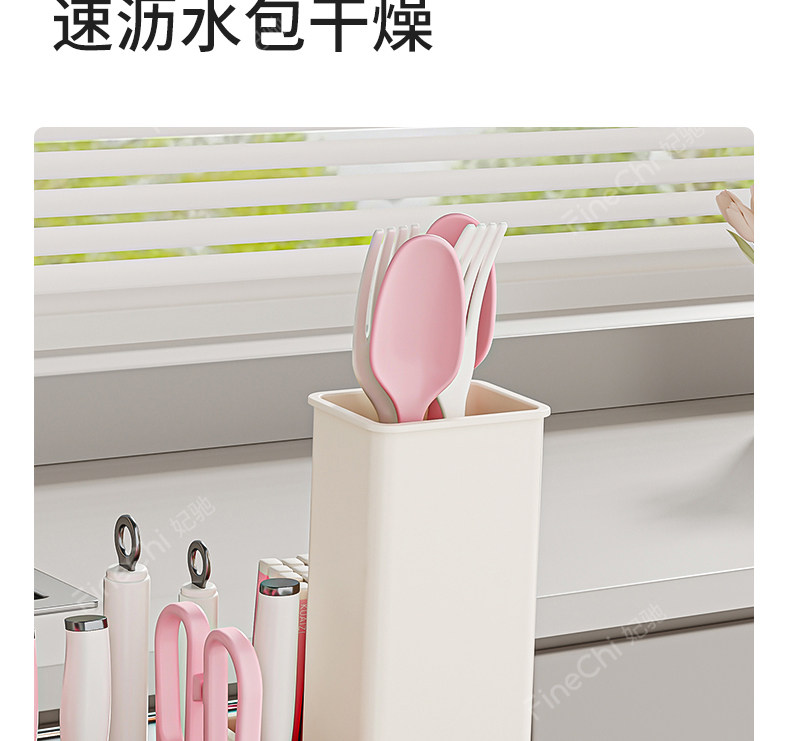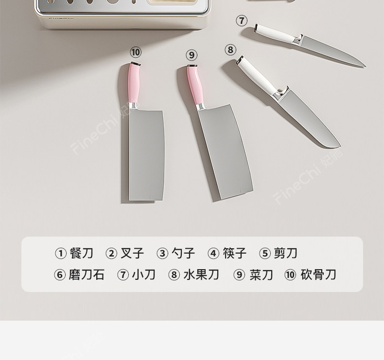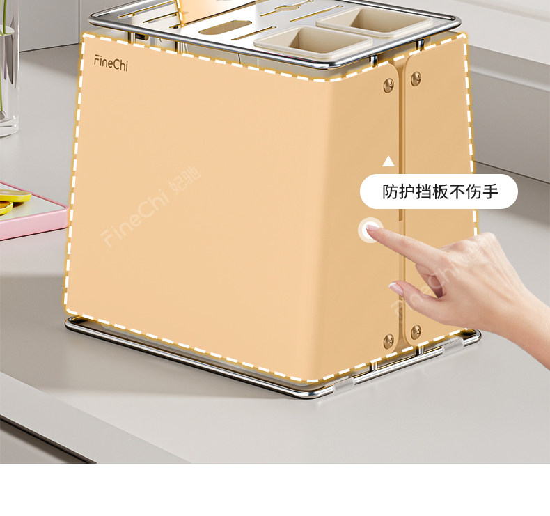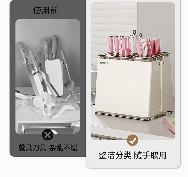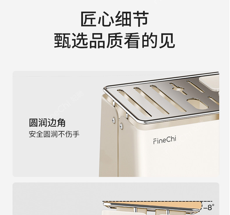 FINECHI kitchen countertop knife rack storage rack stainless steel milk white multi-functional kitchen knife chopstick barrel integrated storage