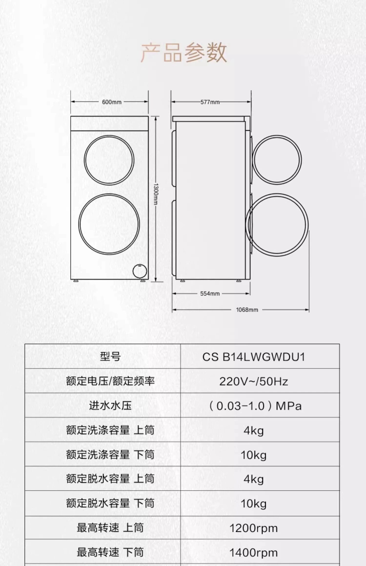 Casarte Languang Cs B14Lwgwdu1 Languang Wd14Kg Dual-Zone Washing Machine W2 Upgraded Version