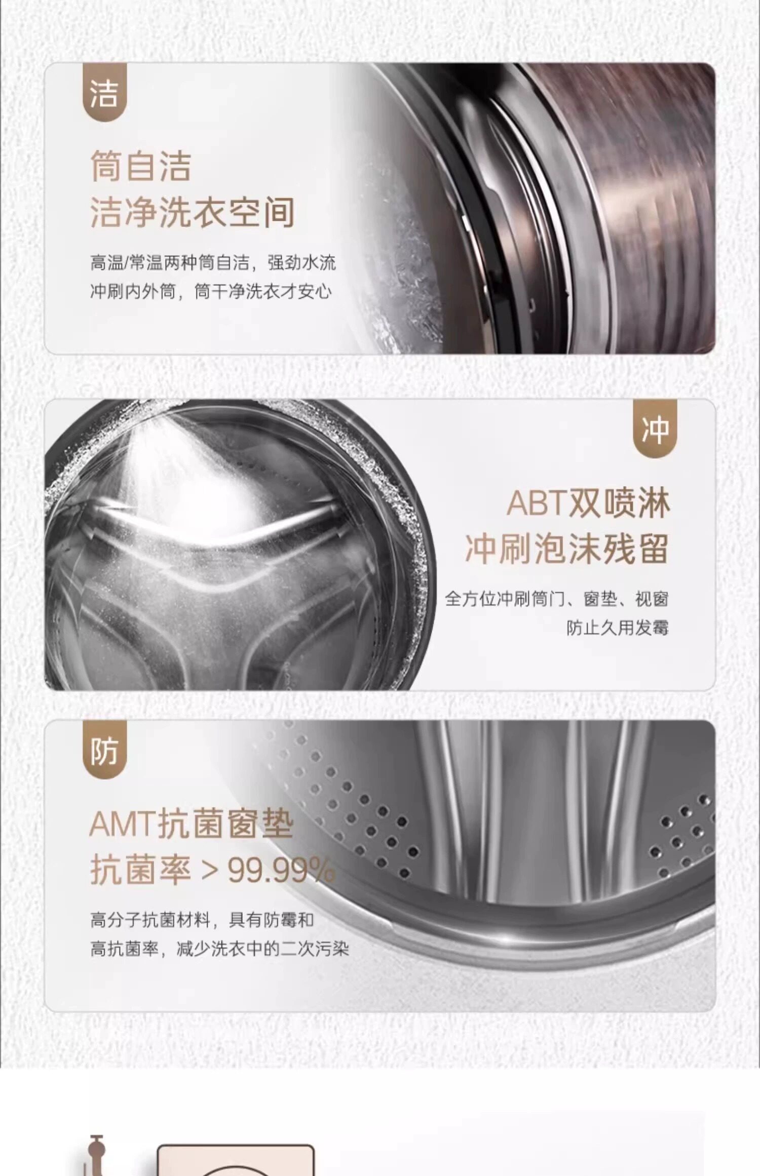Laundry Procedures Self-Cleaning Tube,Floating Off,Large Items Wash,Hot and Clean,Smart Wash,Silk Wash,Single Dehydration,Quick Wash,Down Wash,Wool Wash