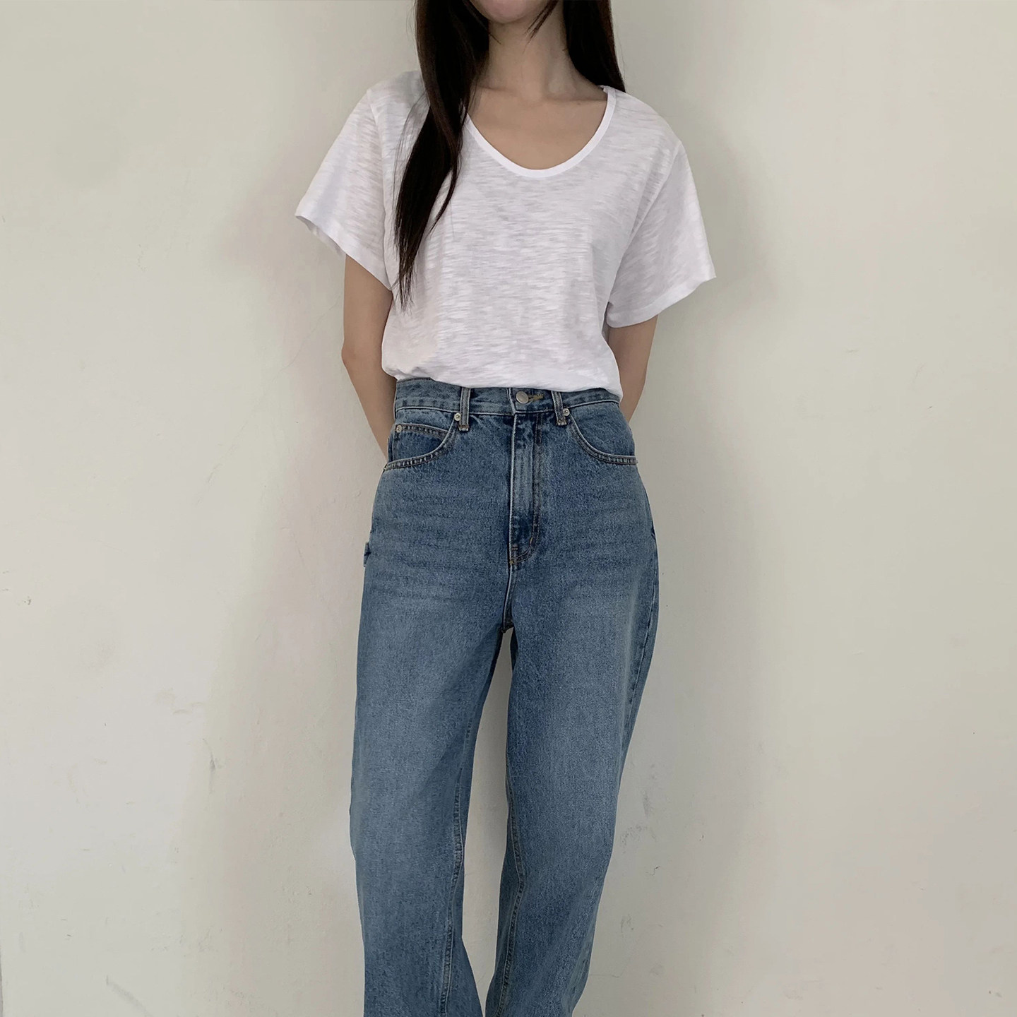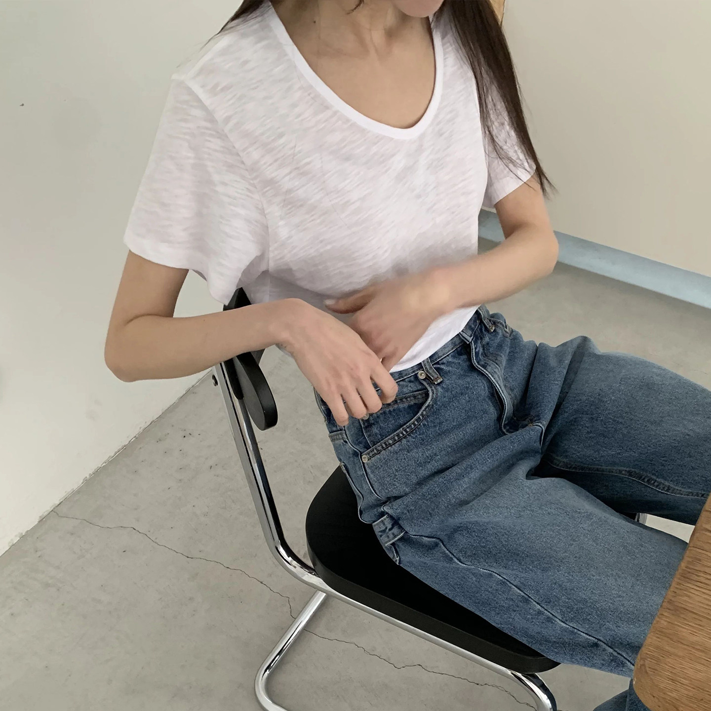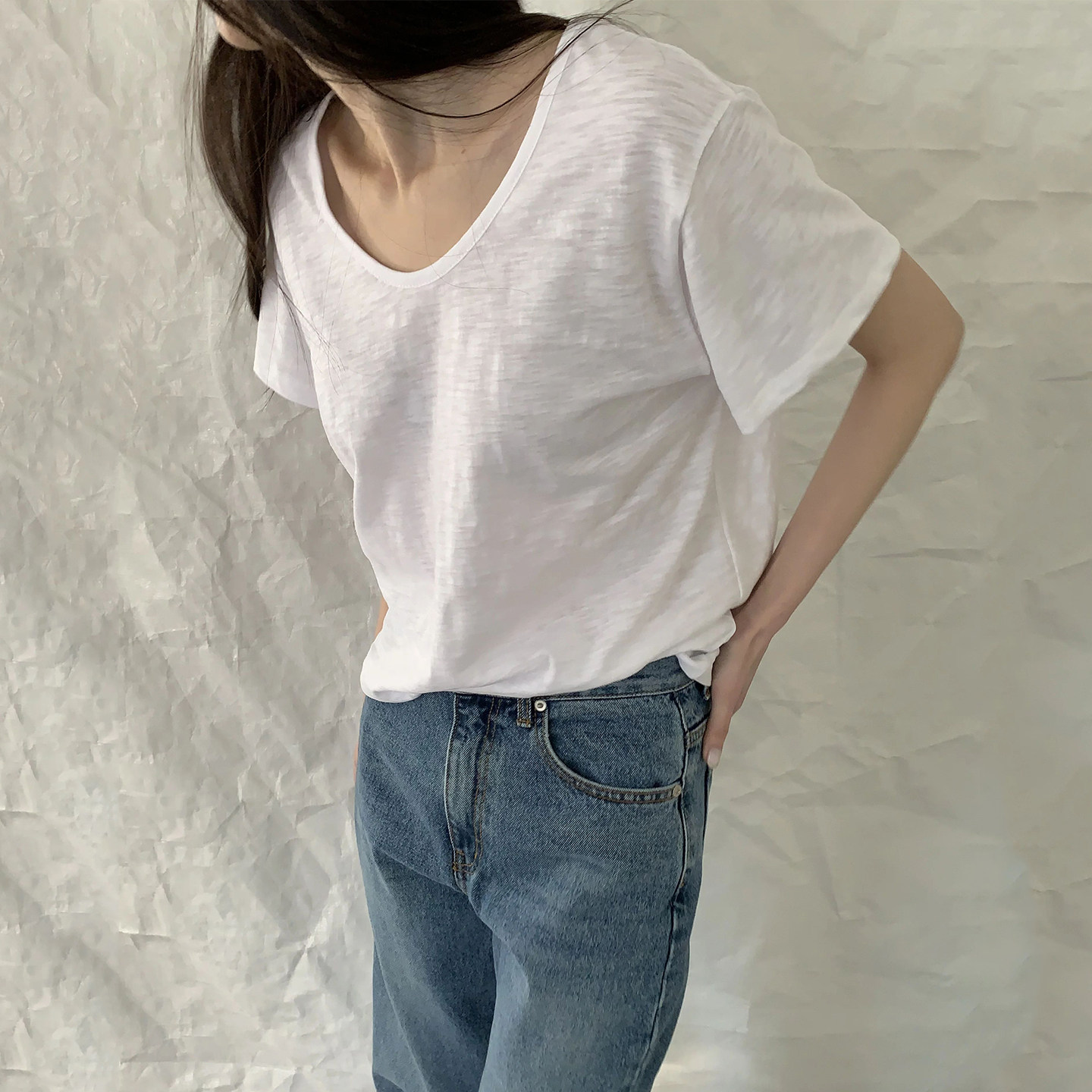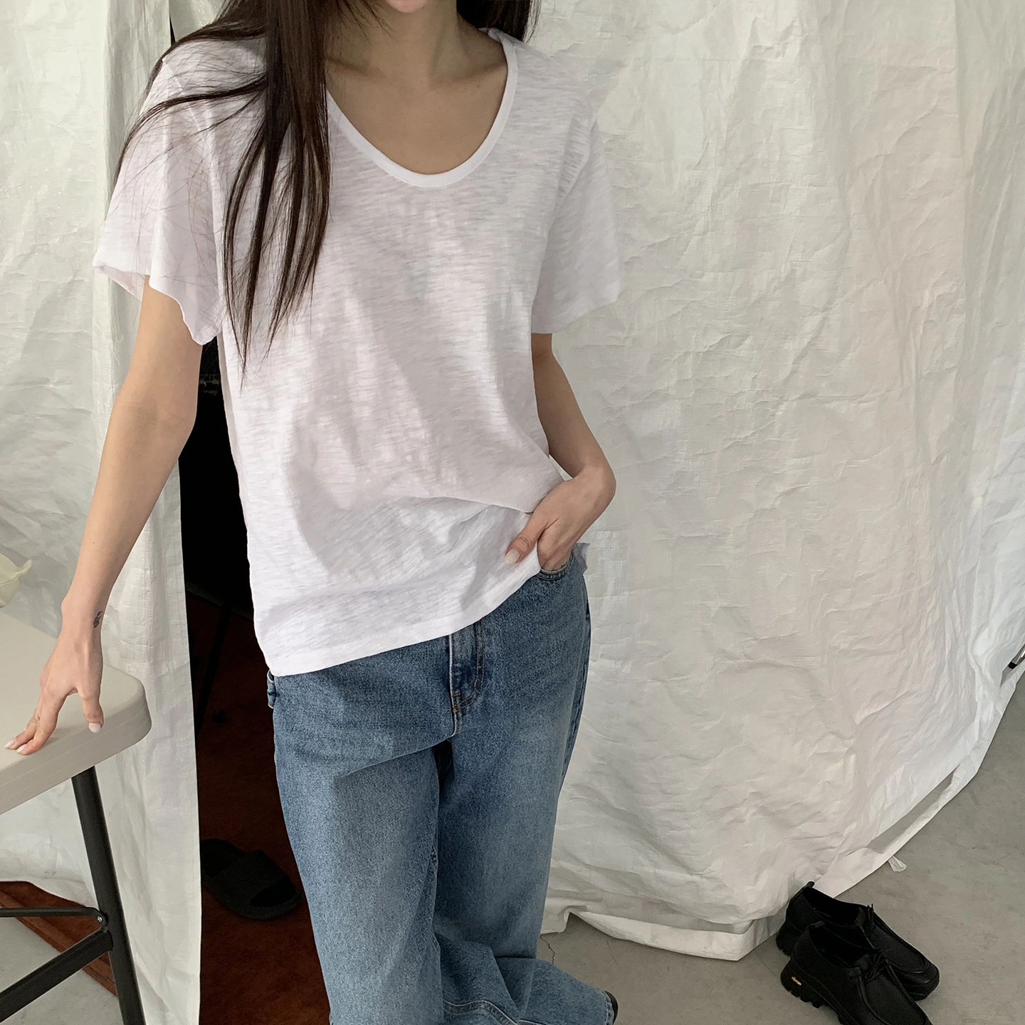 Relaxed Fit Thin V-Neck Short-Sleeve White T-Shirt for Women, Summer Loose Bamboo Cotton Simple Casual Lazy Top