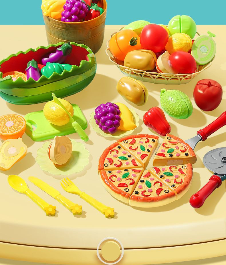Children's Fruit Cutting Toy Pretend Play Kitchen Set Vegetable Cutting Set for Boys and Girls Pizza Cutting Fun Set