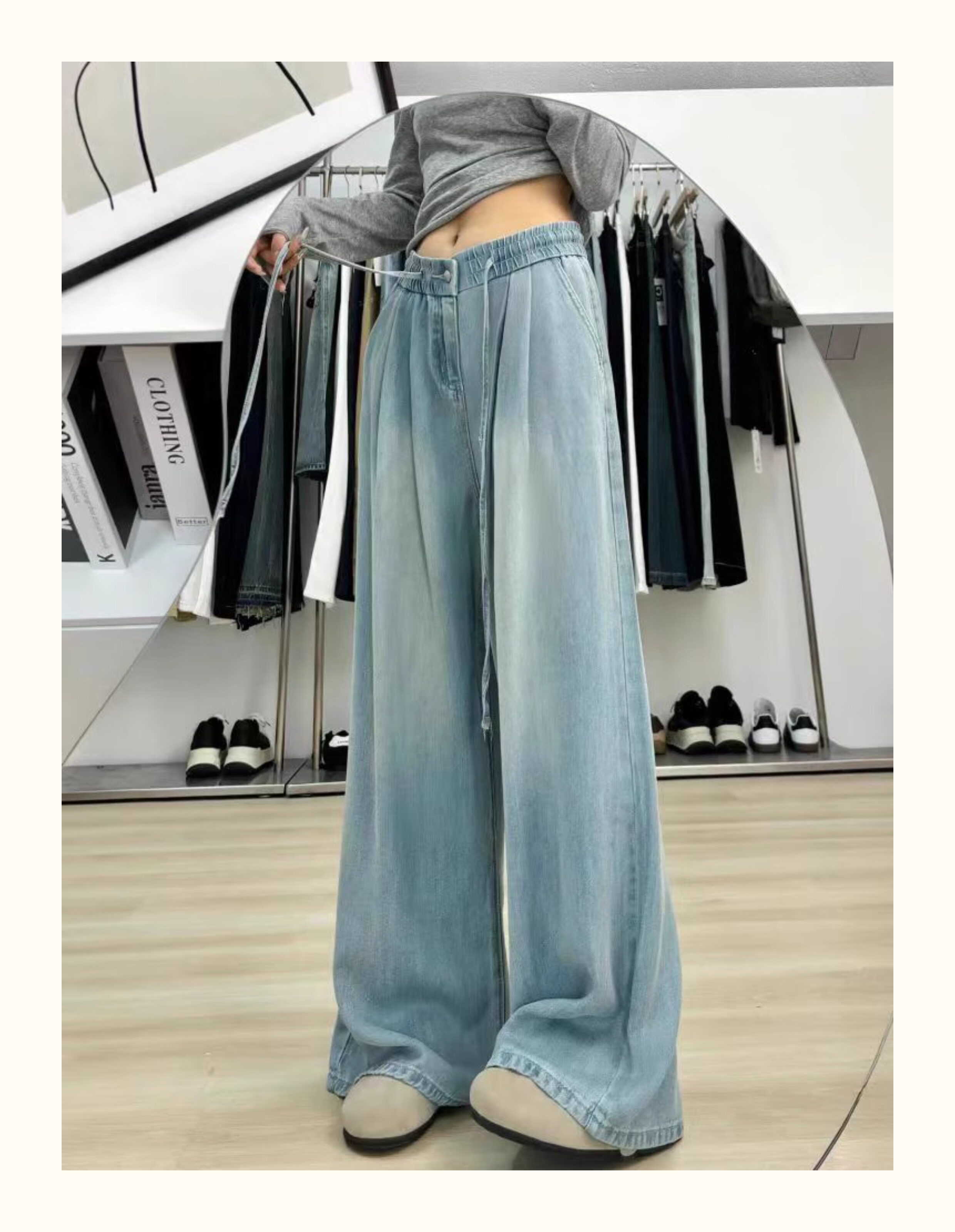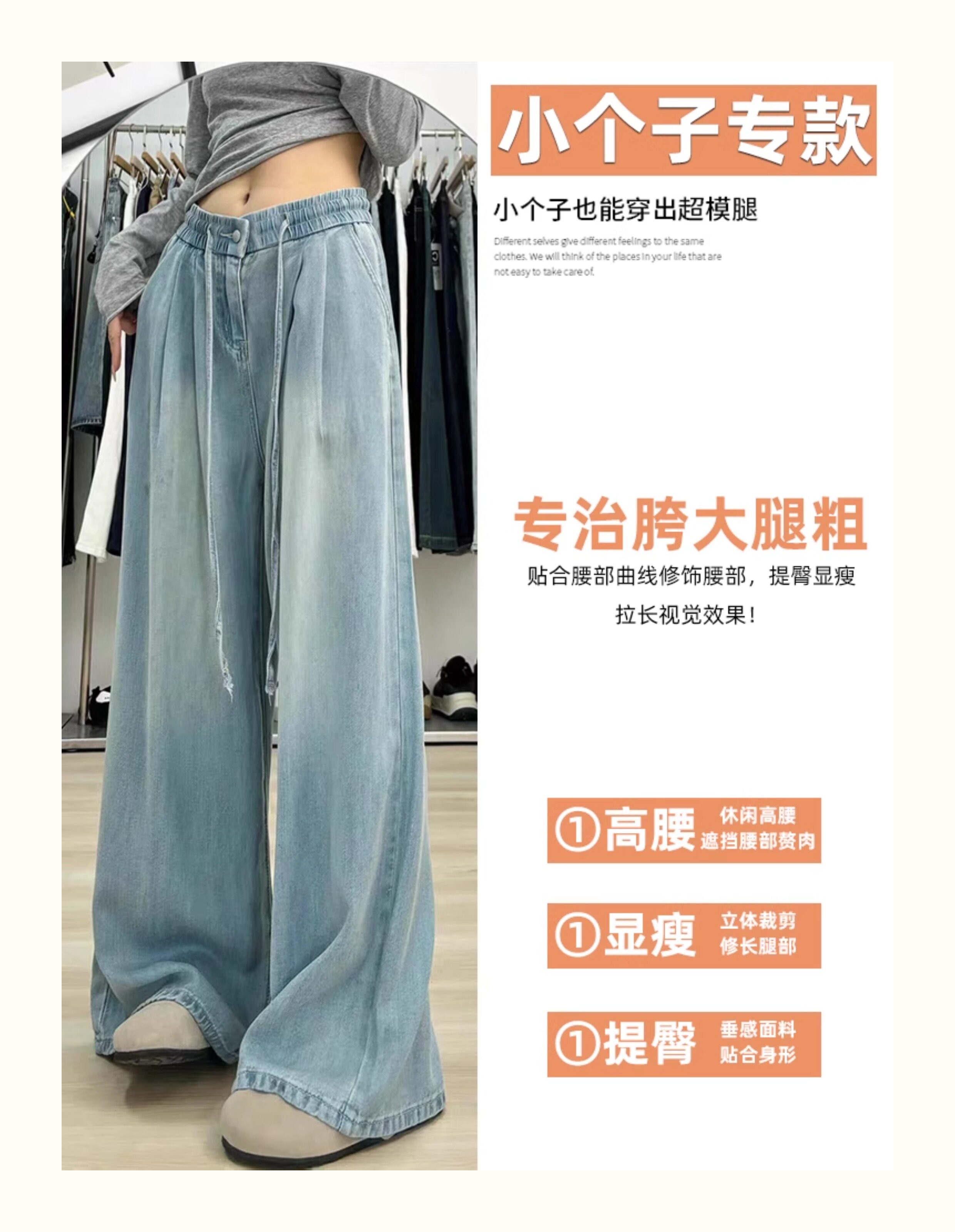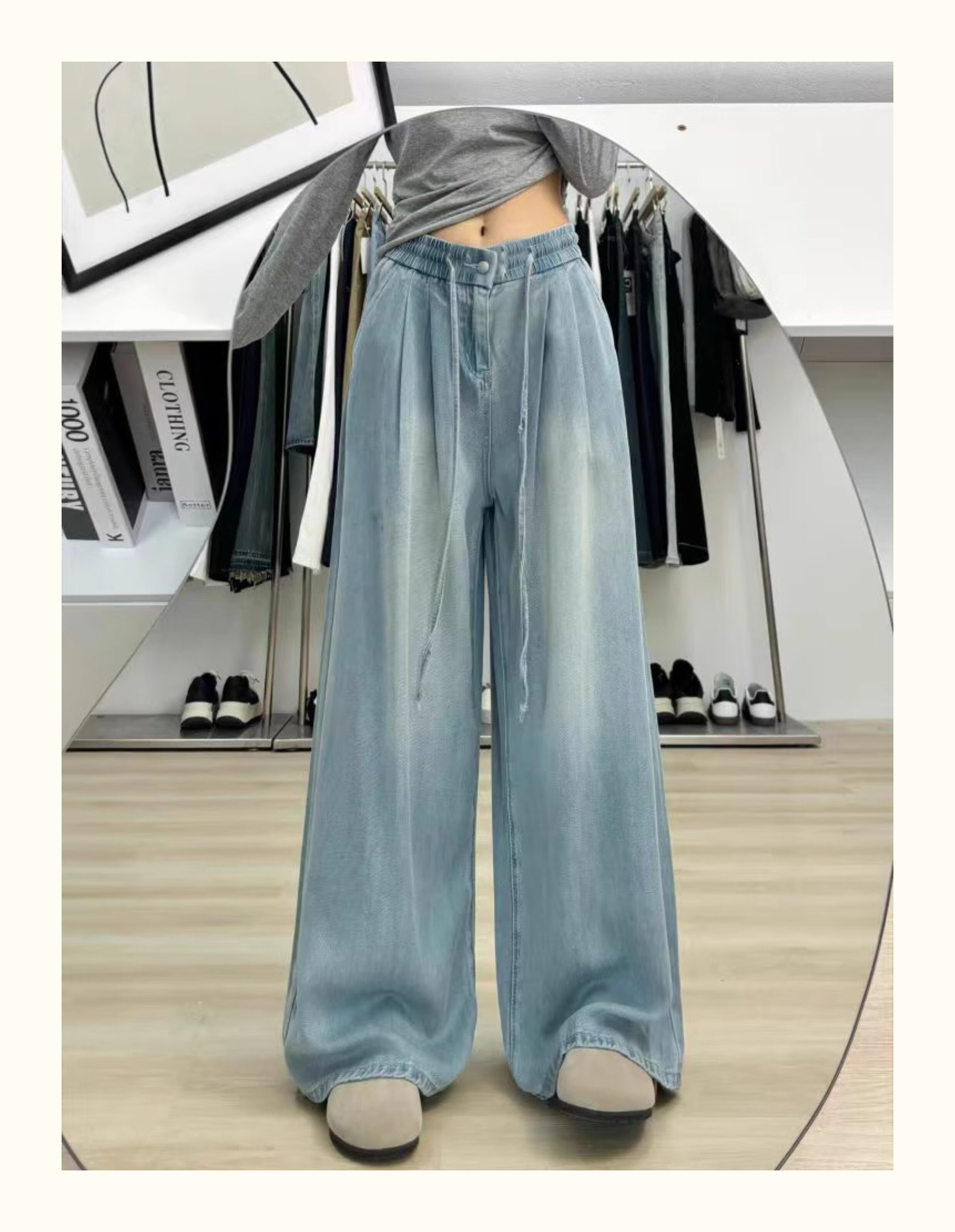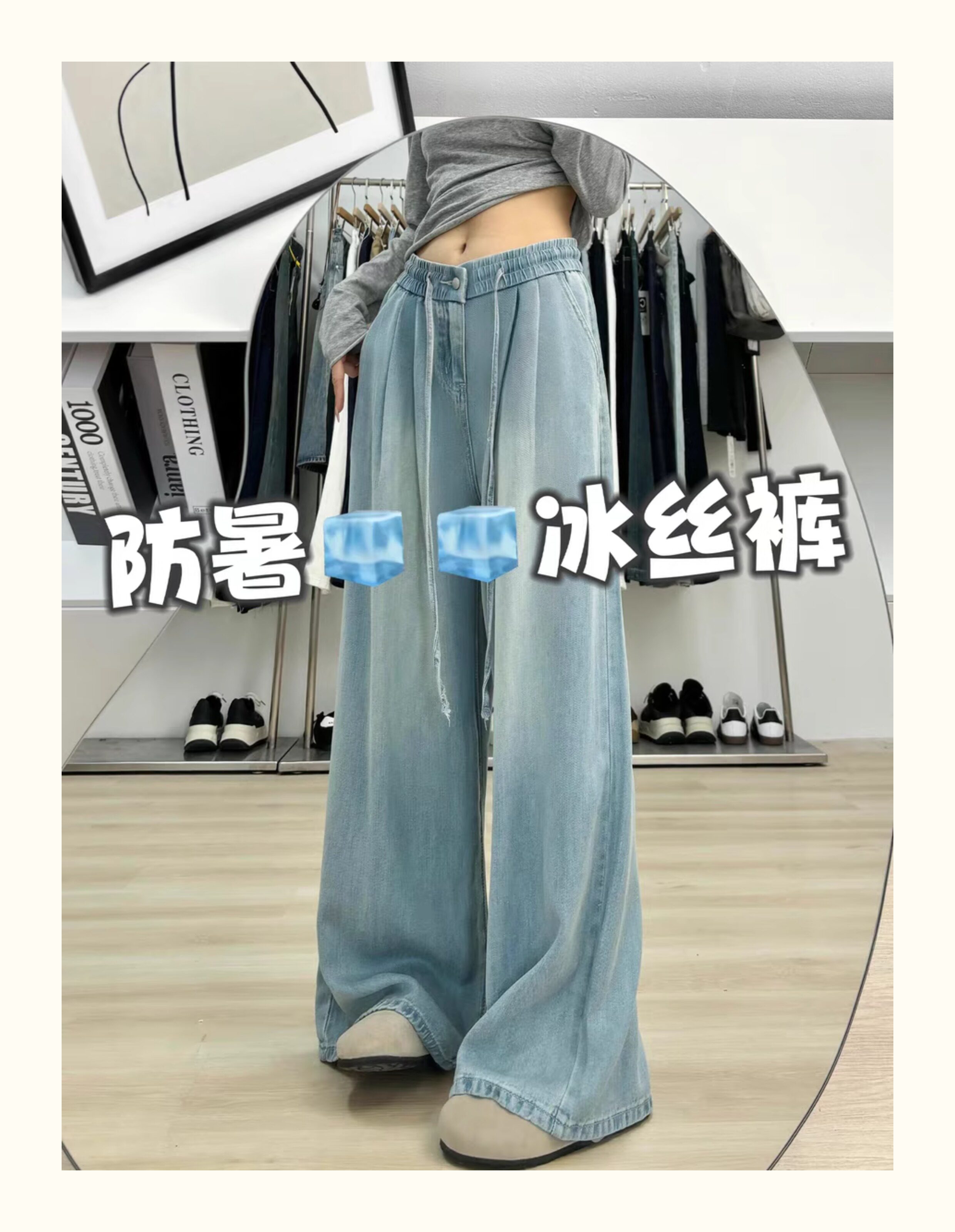 150 small ice silk denim wide-leg pants for women summer thin high-waisted loose non-leg pants showing height trousers