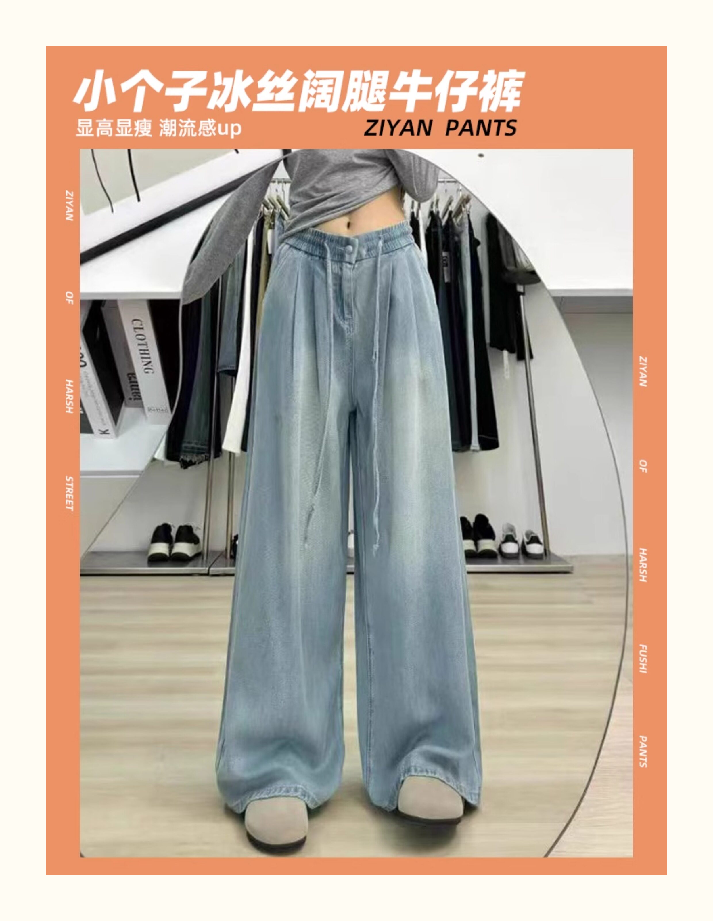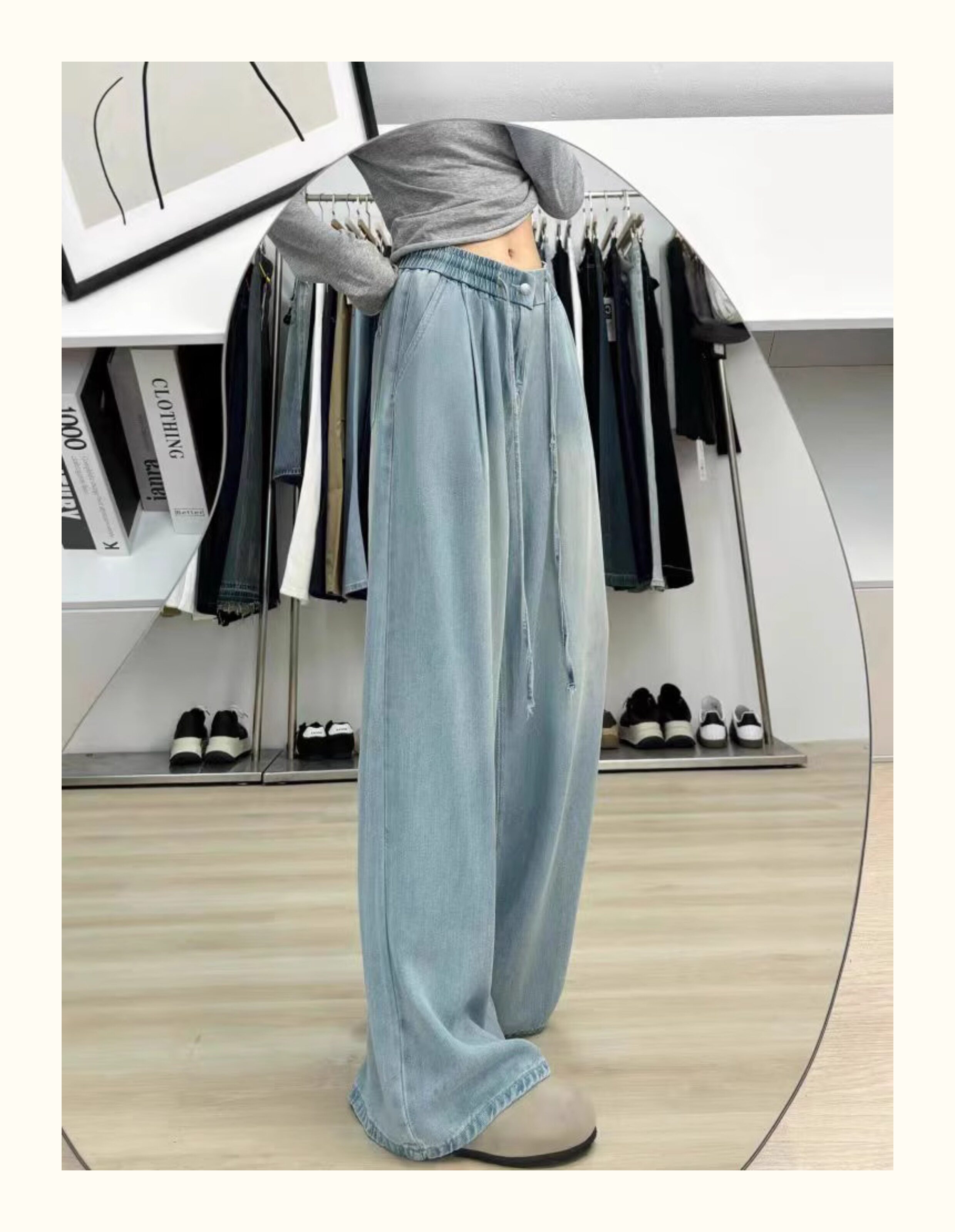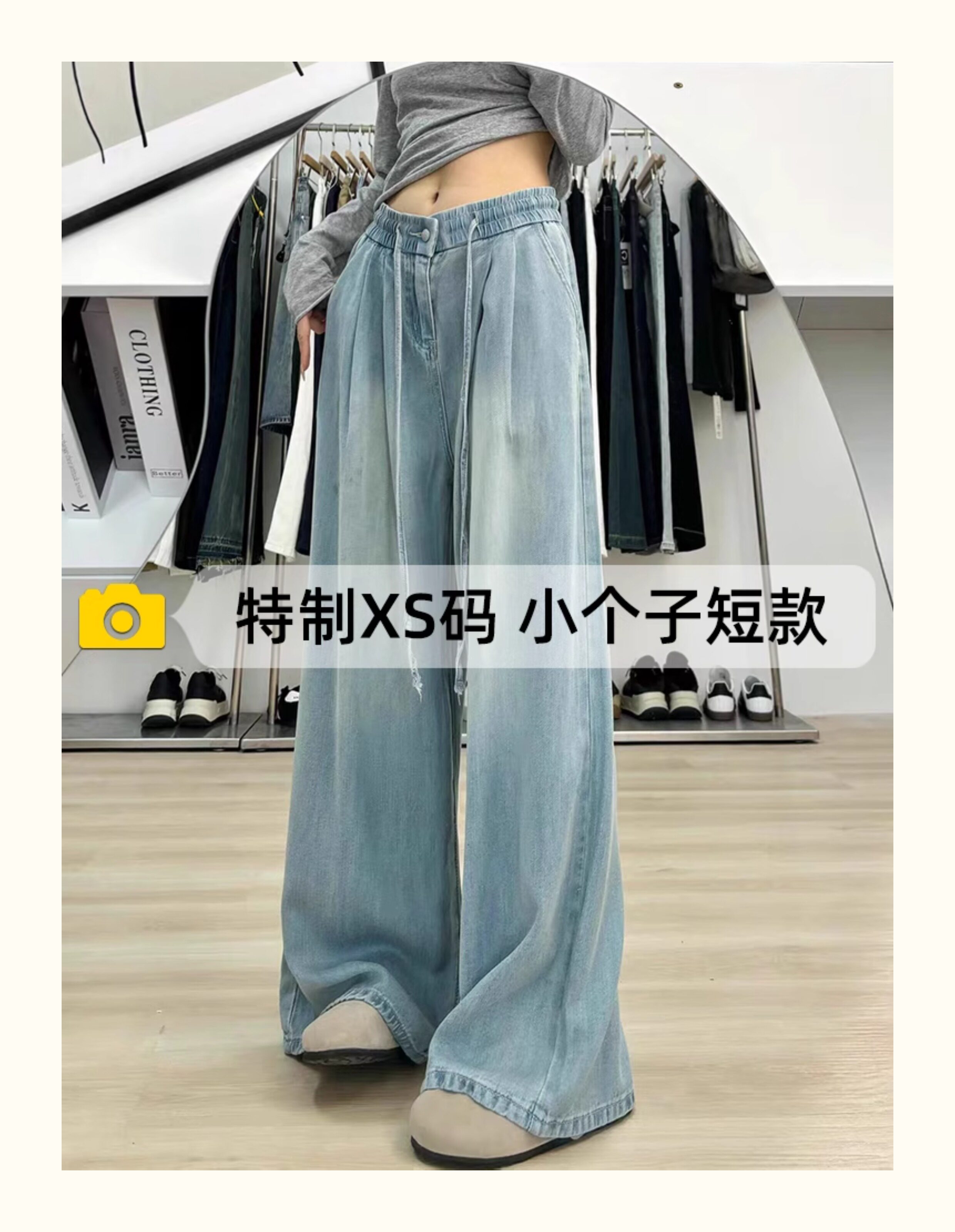 150 small ice silk denim wide-leg pants for women summer thin high-waisted loose non-leg pants showing height trousers