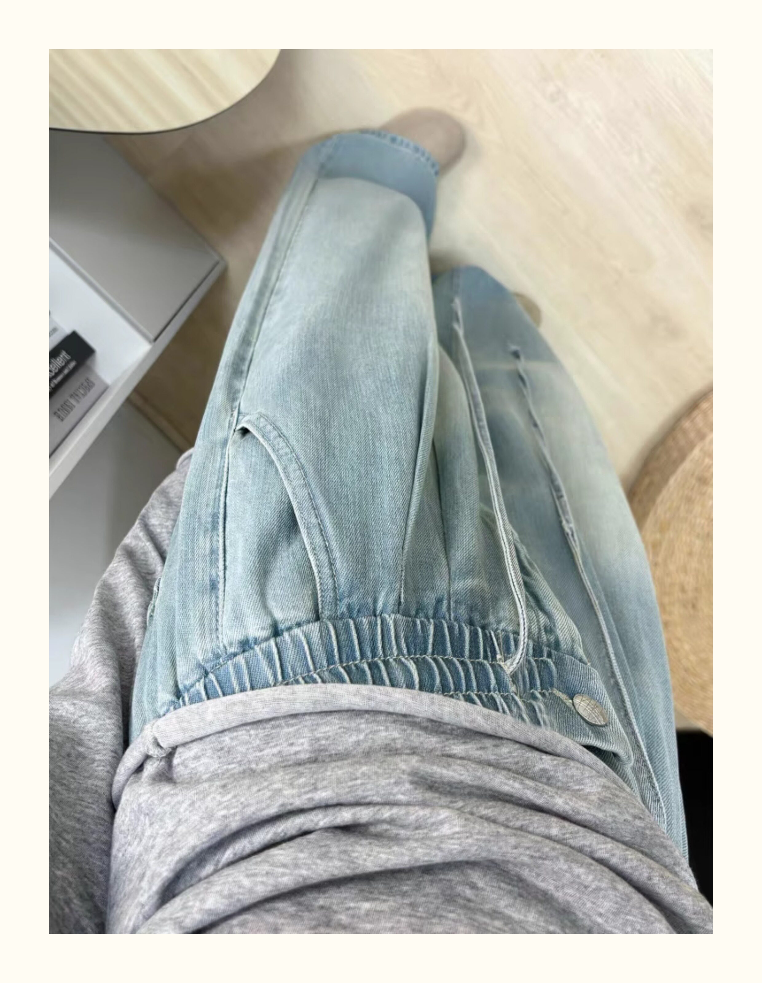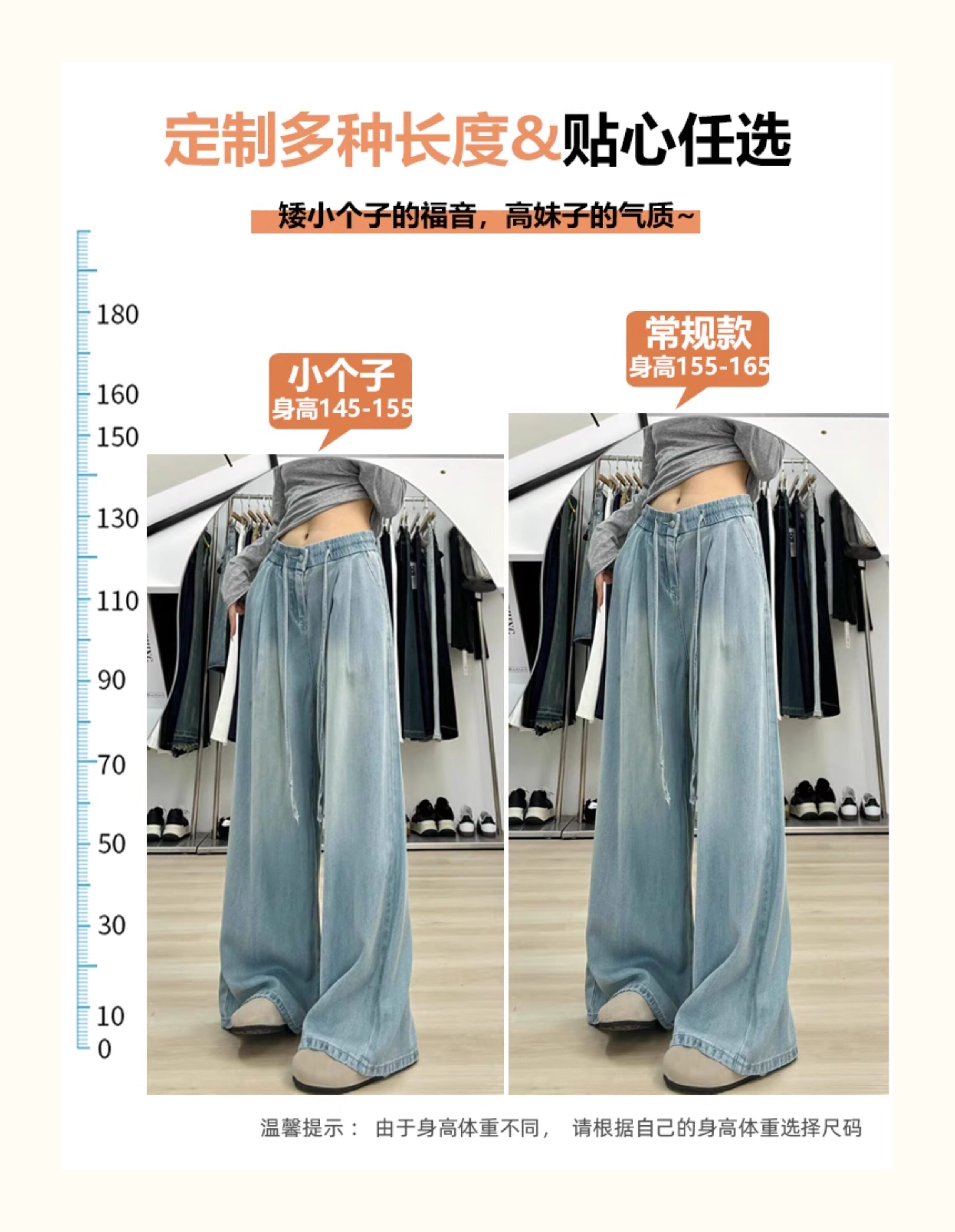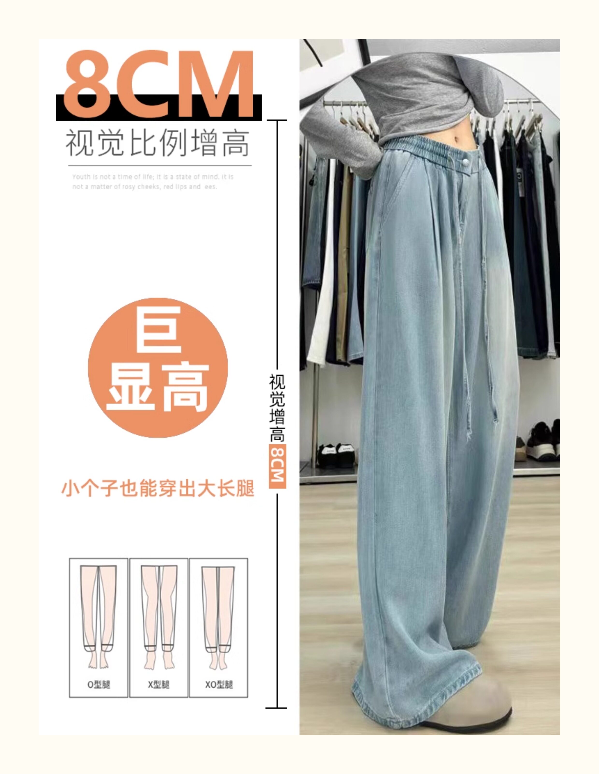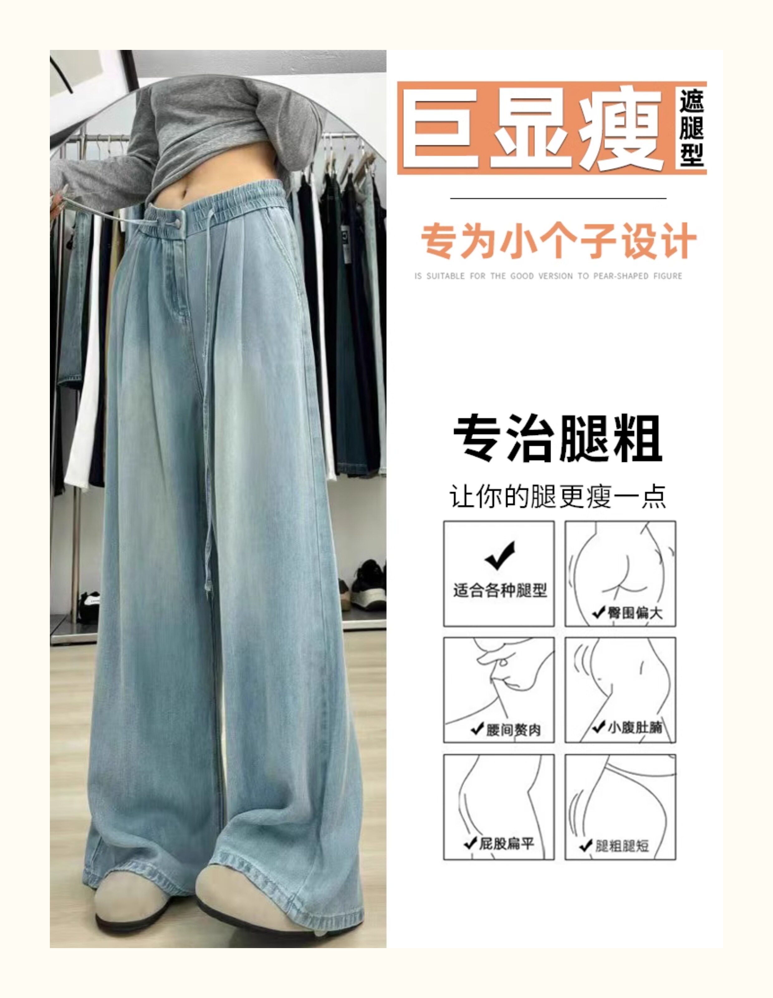 150 small ice silk denim wide-leg pants for women summer thin high-waisted loose non-leg pants showing height trousers
