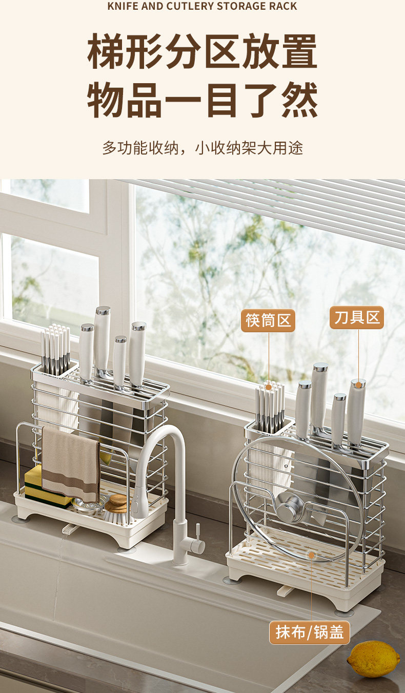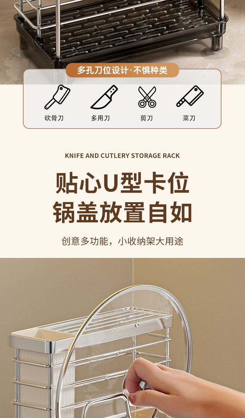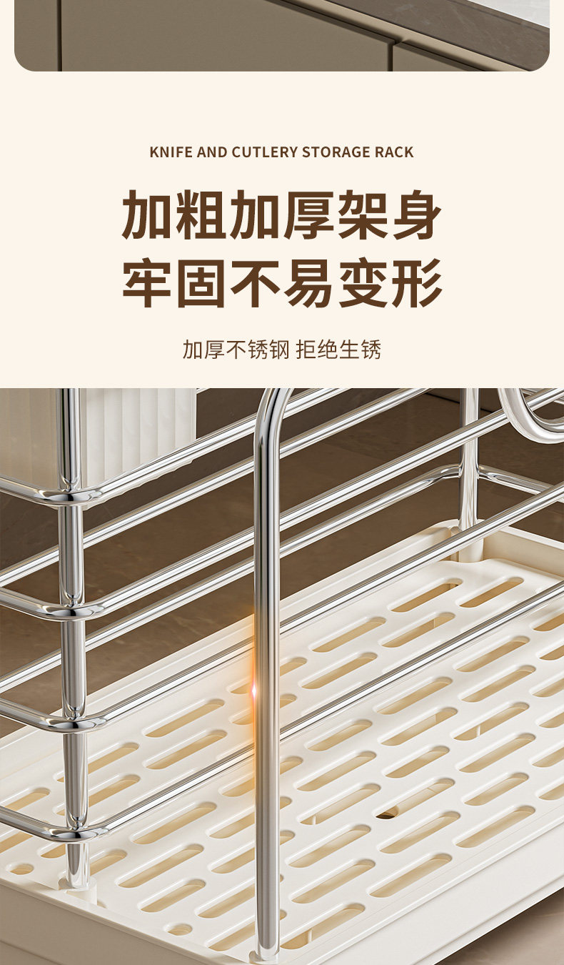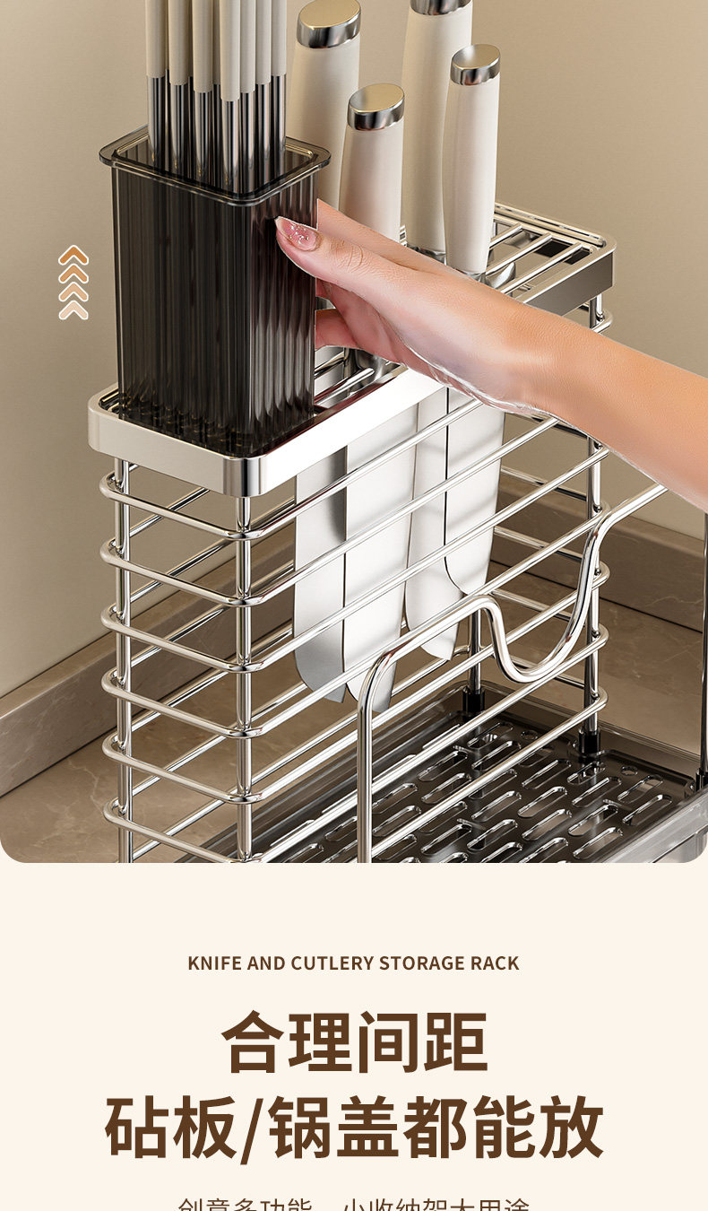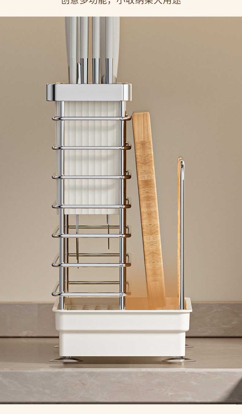 2025 New Knife Holder Storage Rack Kitchen Multi-Functional Pot Lid Rack Kitchen Knife Chopstick Cage Integrated Chopping Board Knife Storage Rack