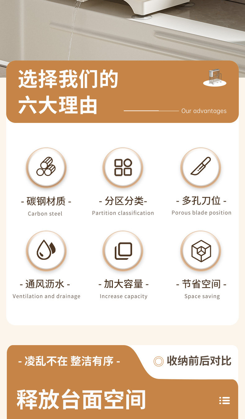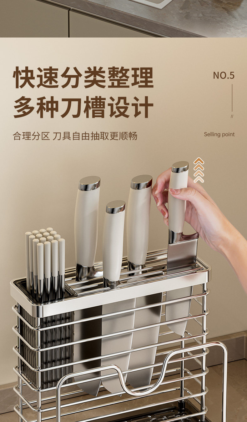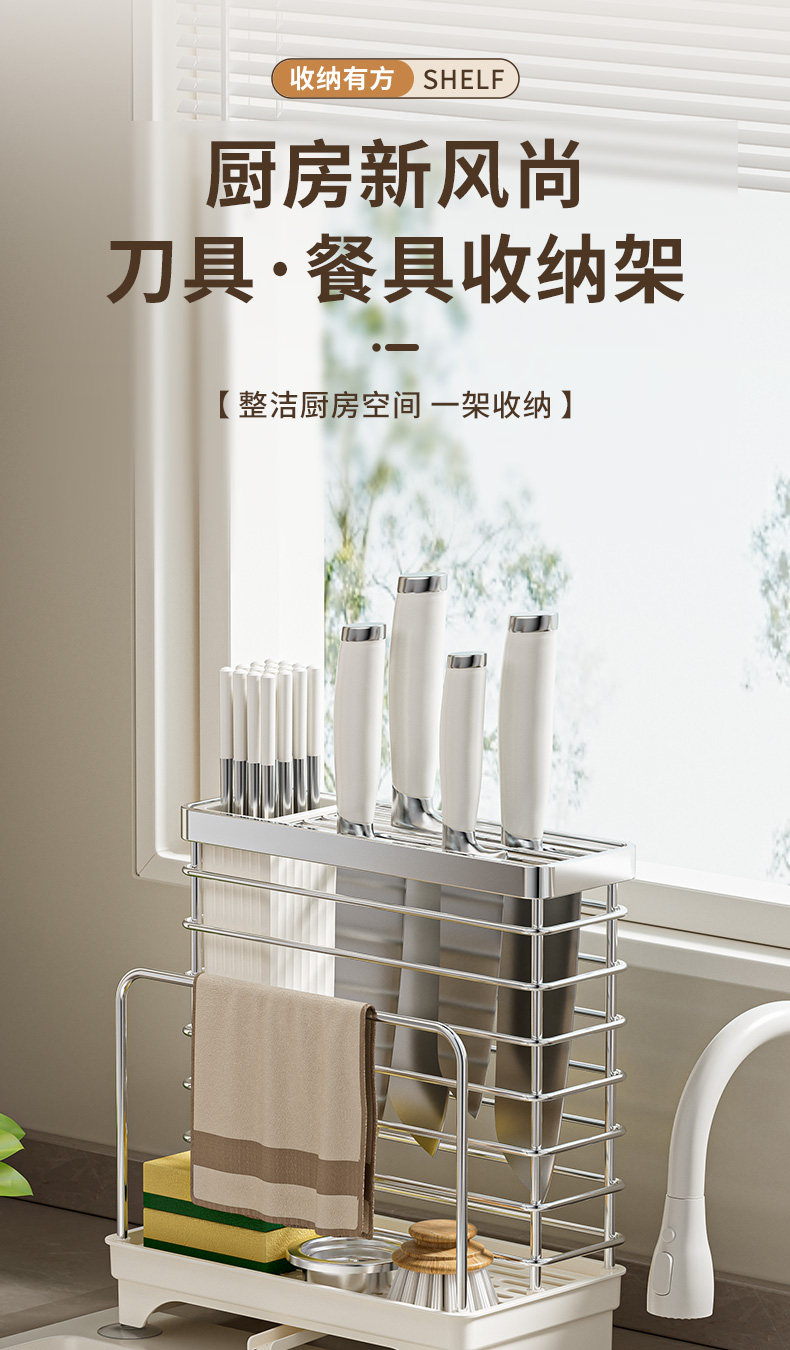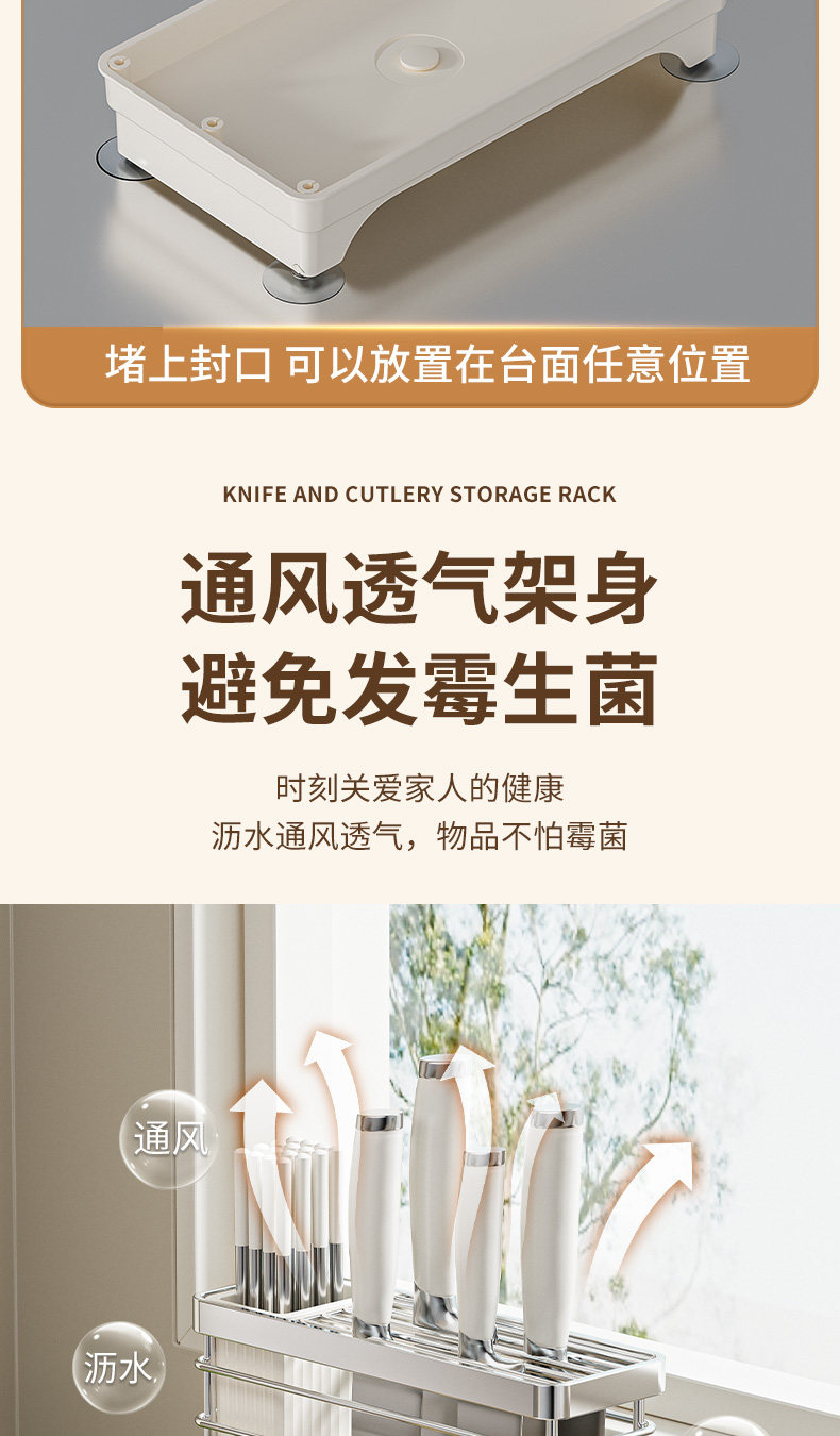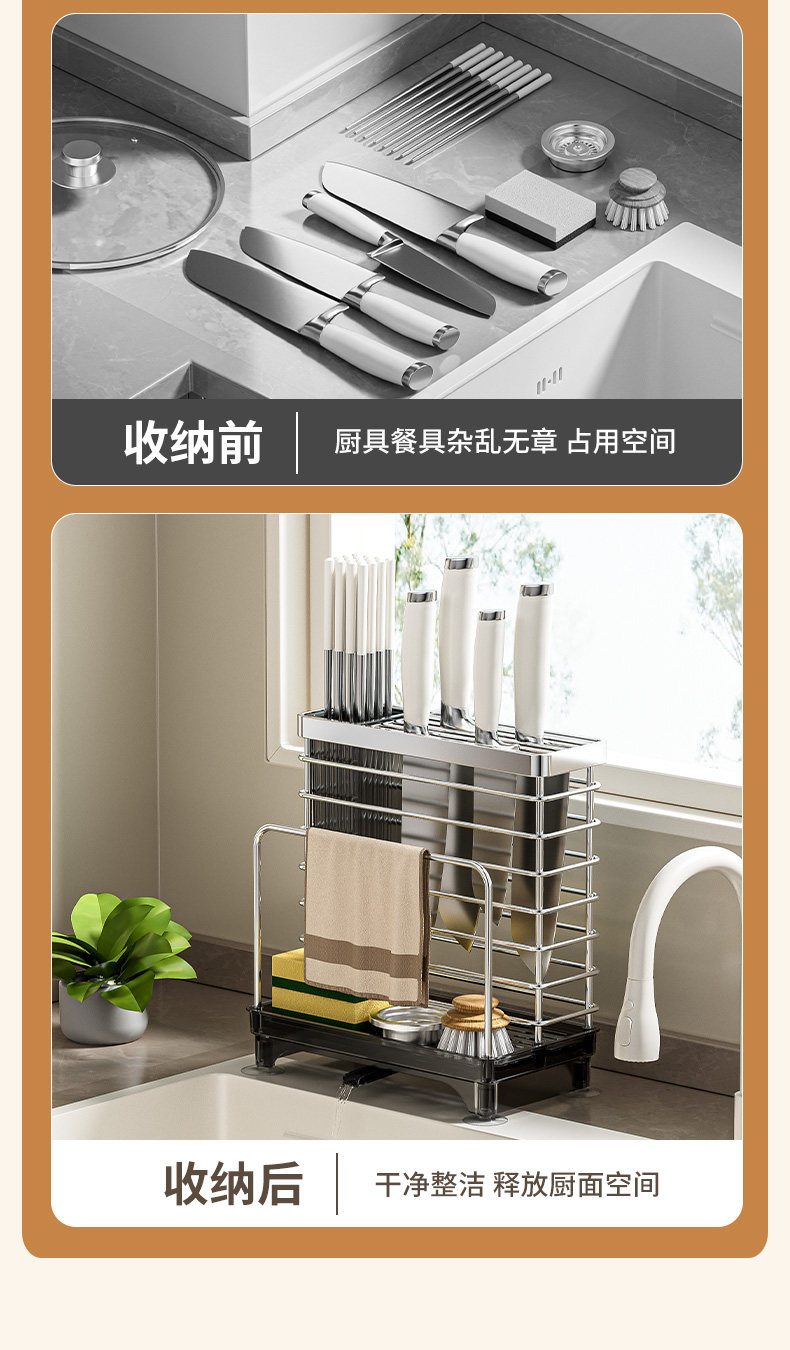 2025 New Knife Holder Storage Rack Kitchen Multi-Functional Pot Lid Rack Kitchen Knife Chopstick Cage Integrated Chopping Board Knife Storage Rack