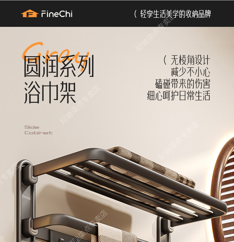 Finechi Mid-Century Style Towel Rack Bathroom Punch-Free Towel Rack Bath Toilet Bathroom Shelf Storage Rack