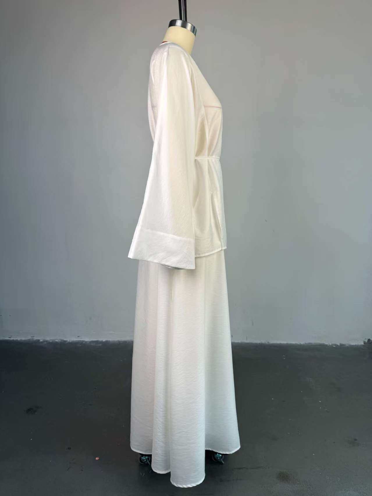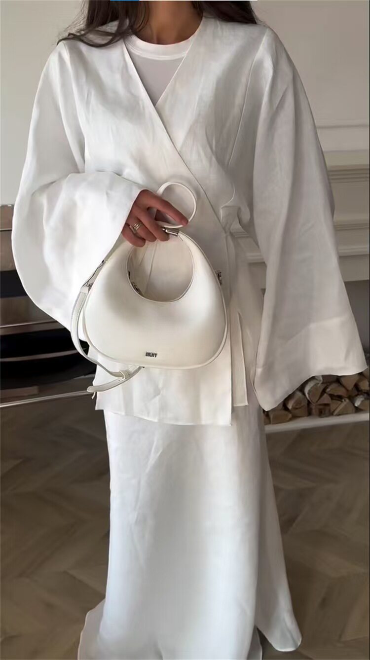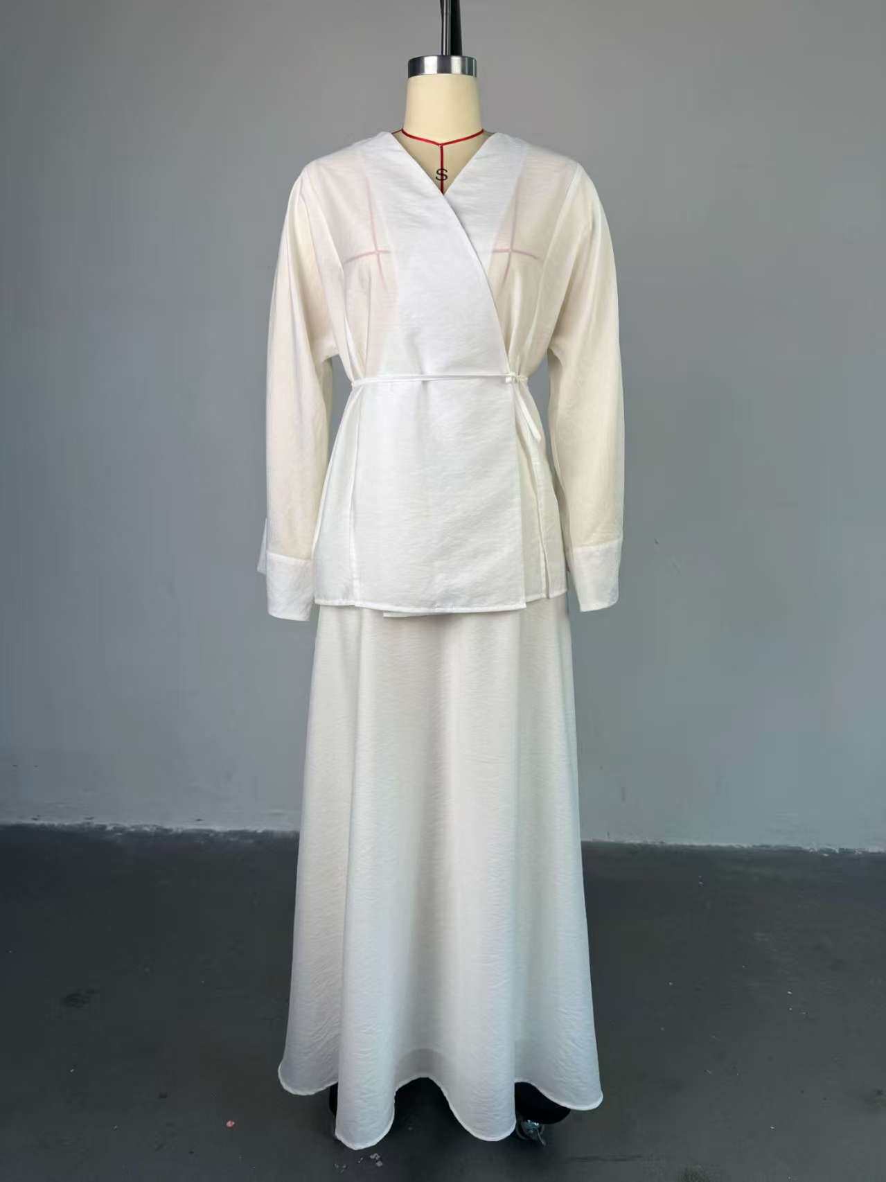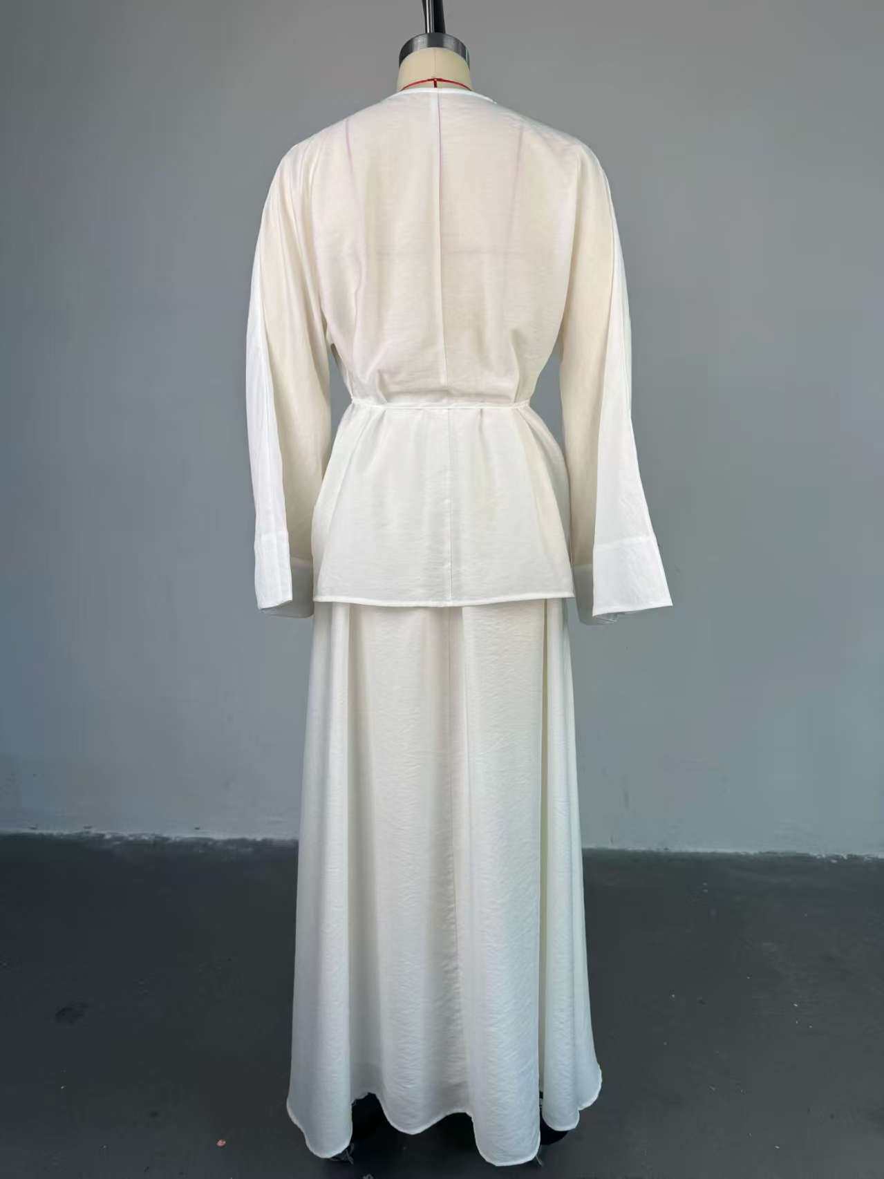 European and American New Style Solid Color V-Neck Tie-Up Cardigan Top and High-Waisted Skirt Set Shirt and Skirt Set