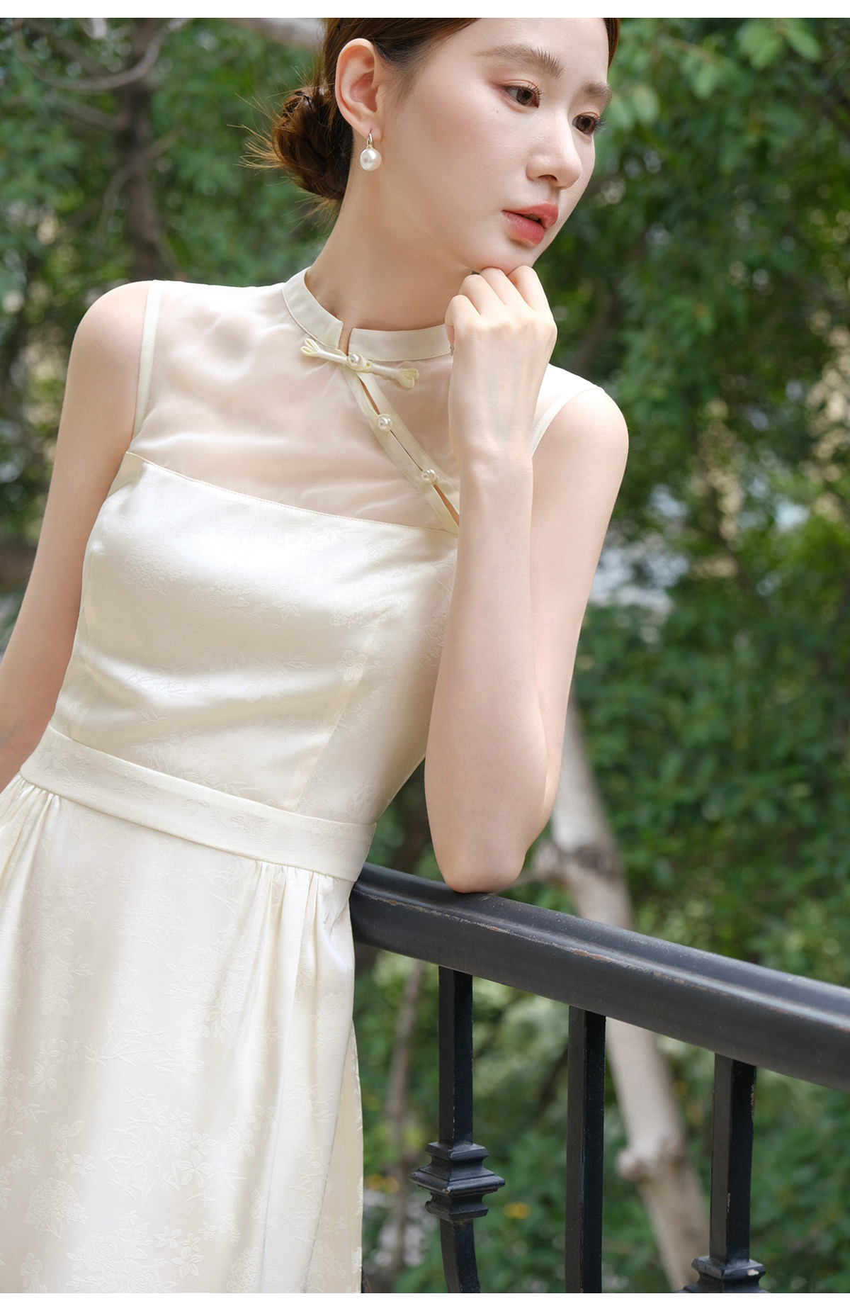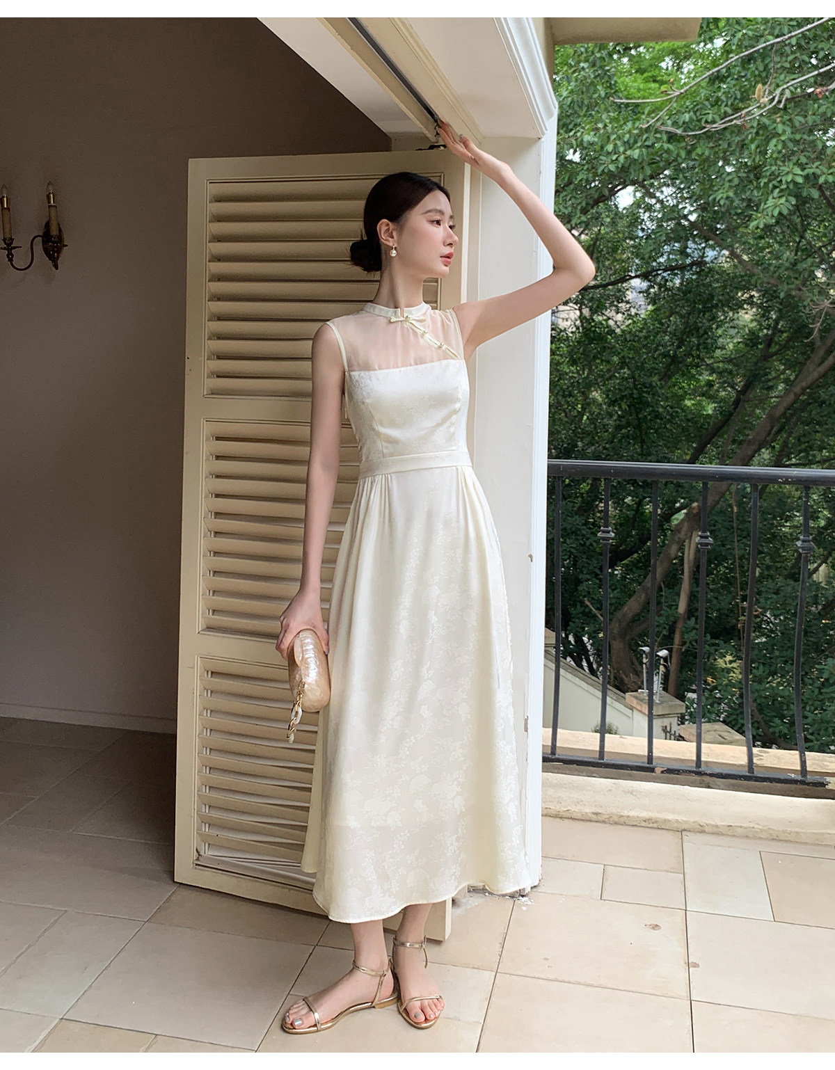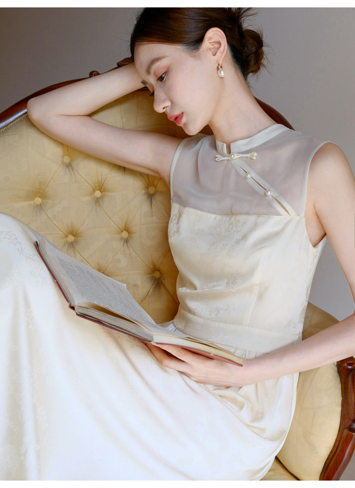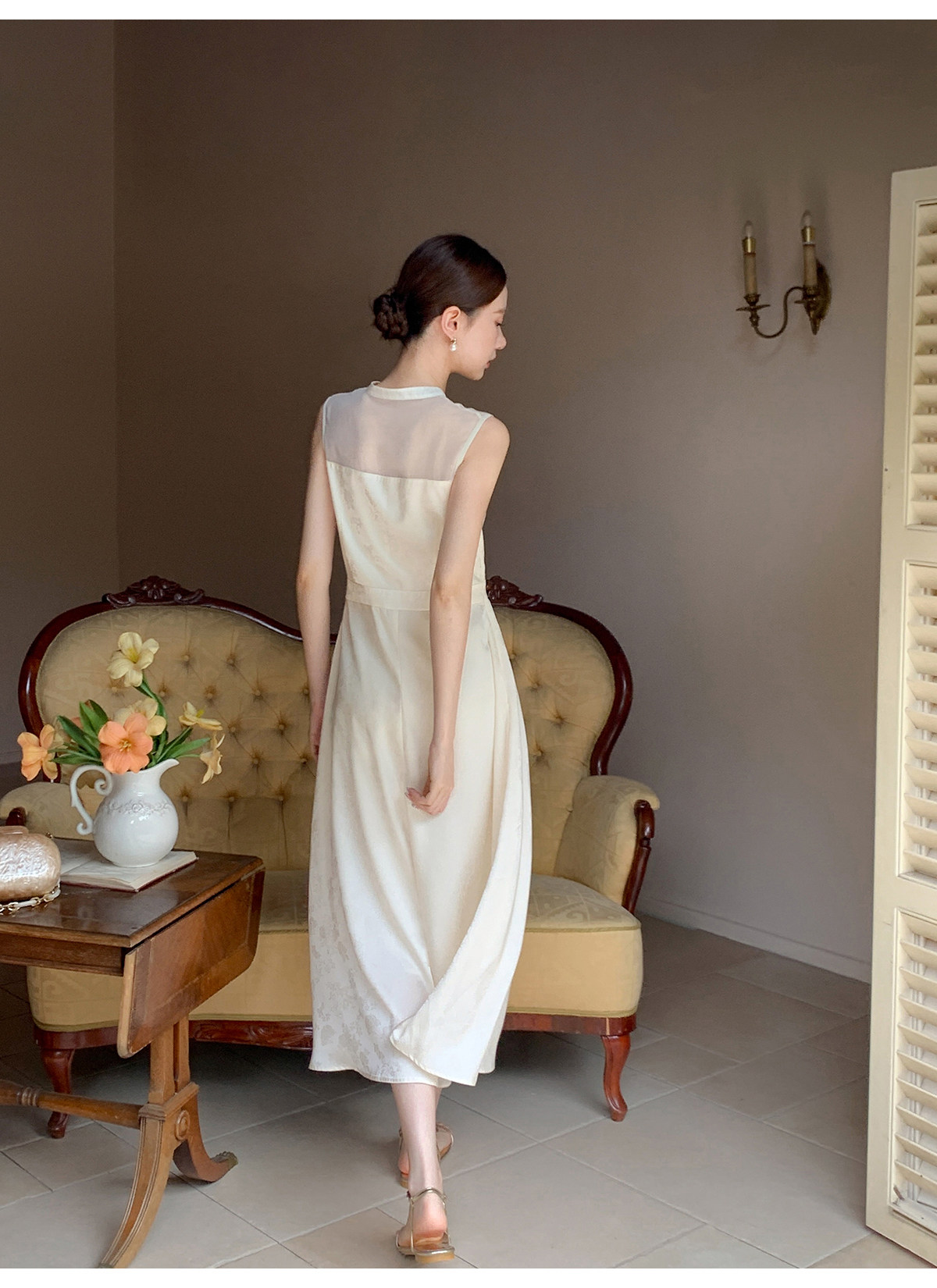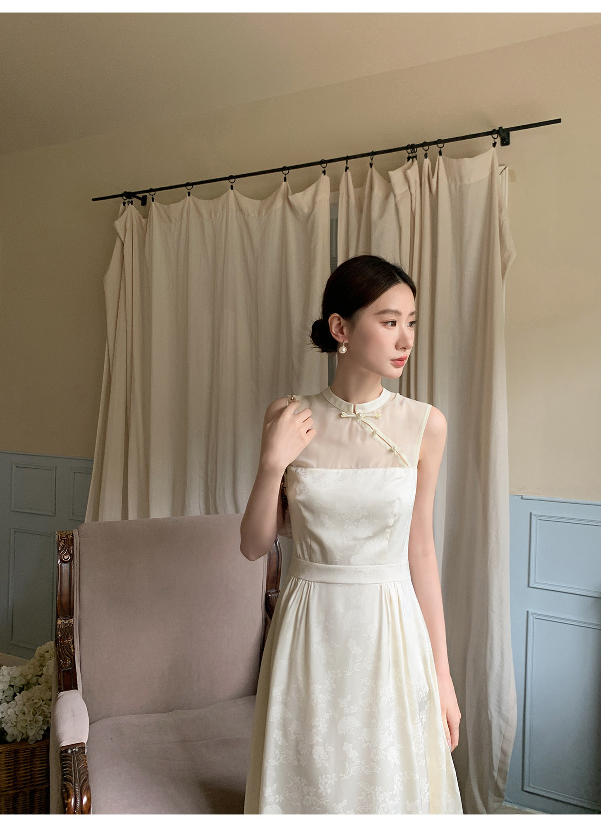 Xxning New Chinese Style Small Stand Collar Jacquard Dress for Women, Autumn New Model, High-End Atmosphere, Elegant and Slimming Long Dress