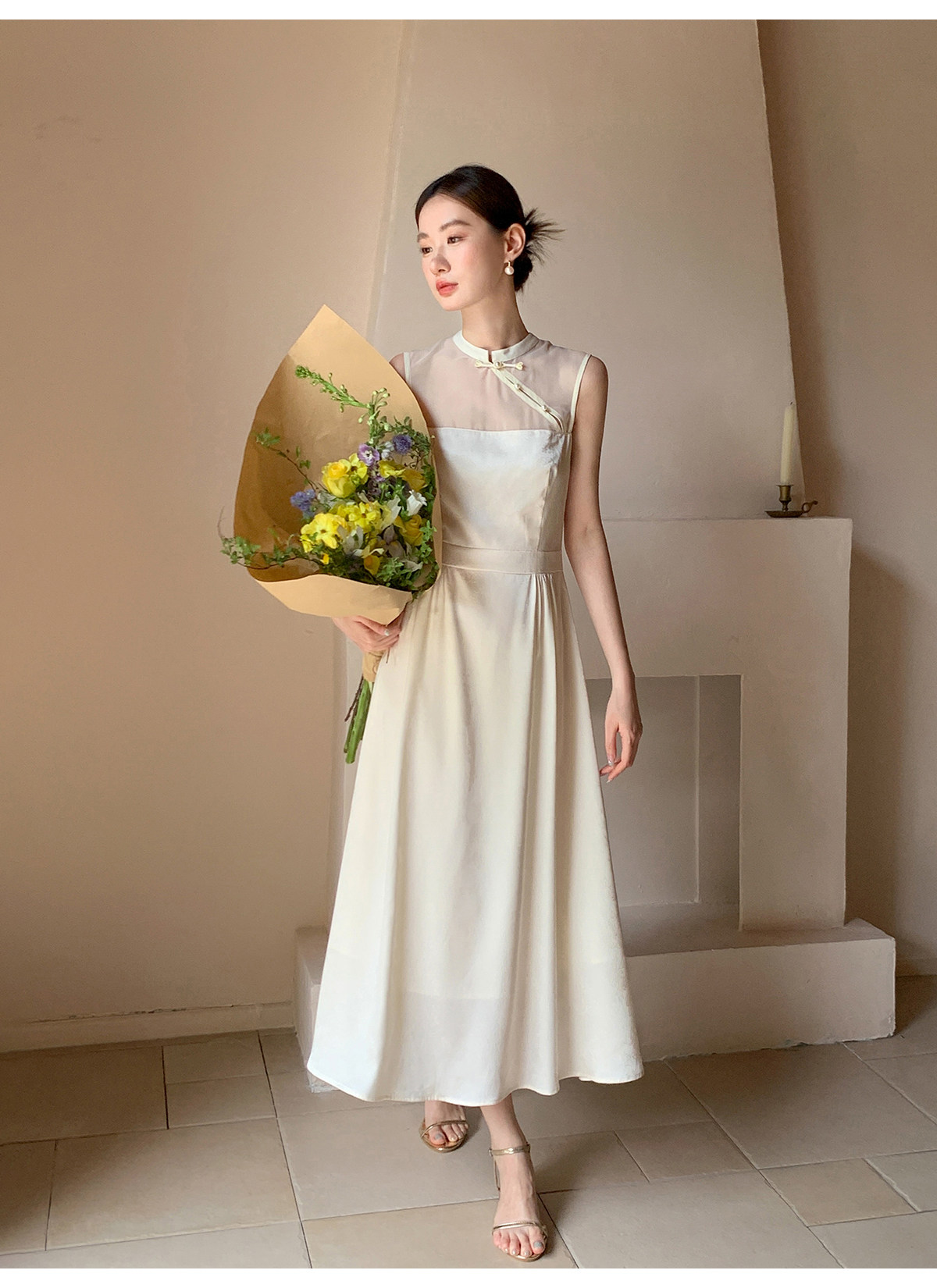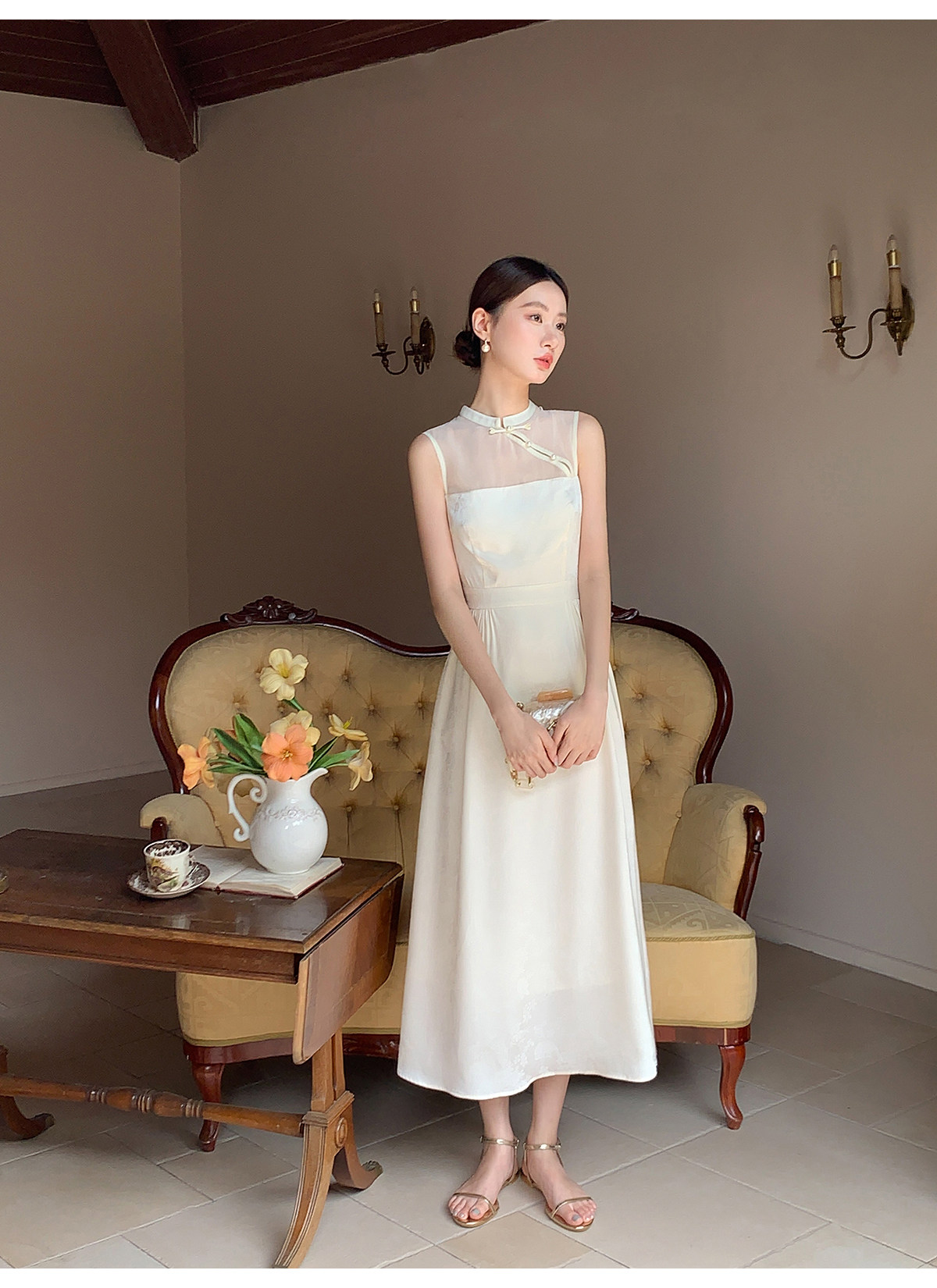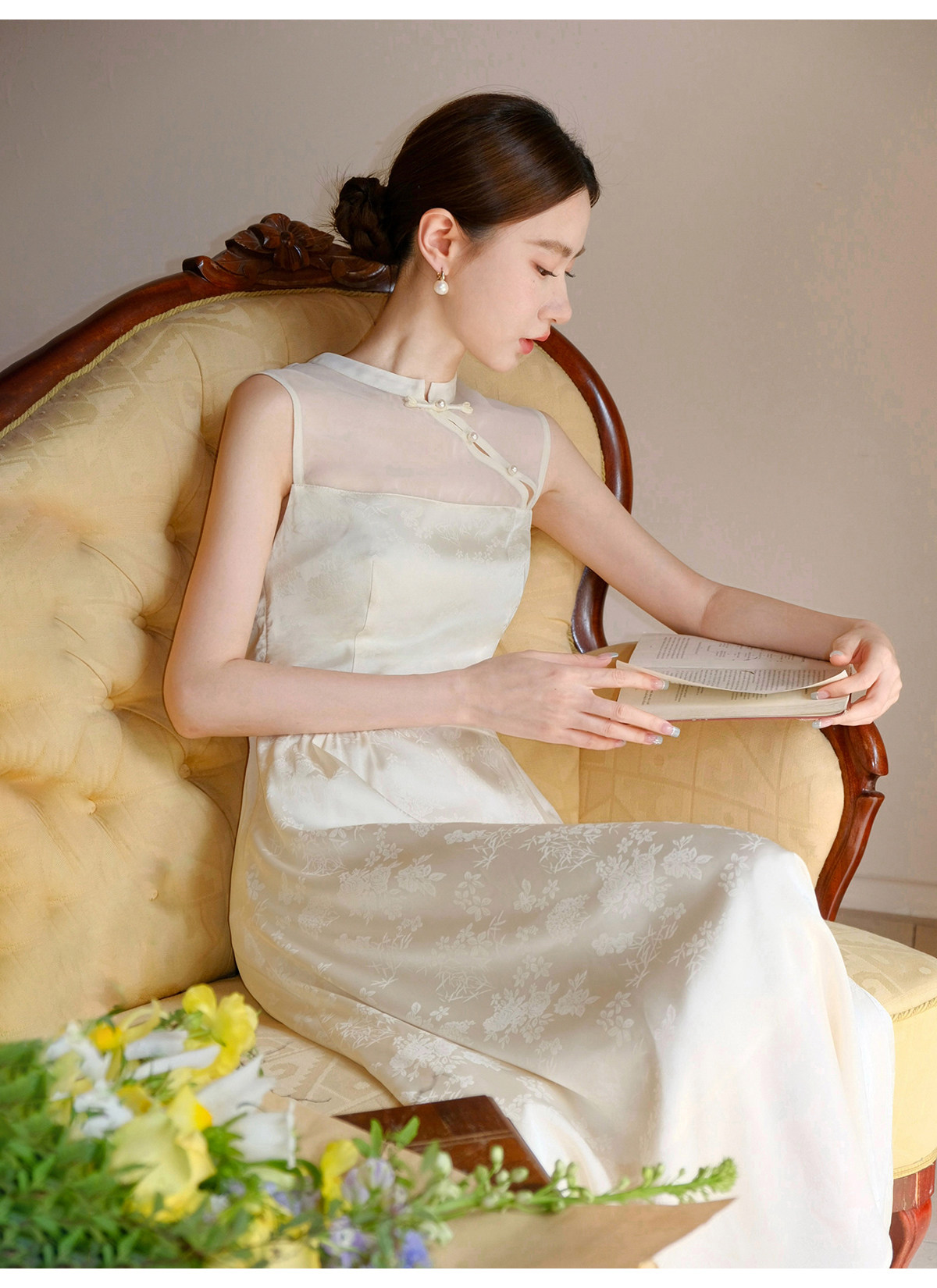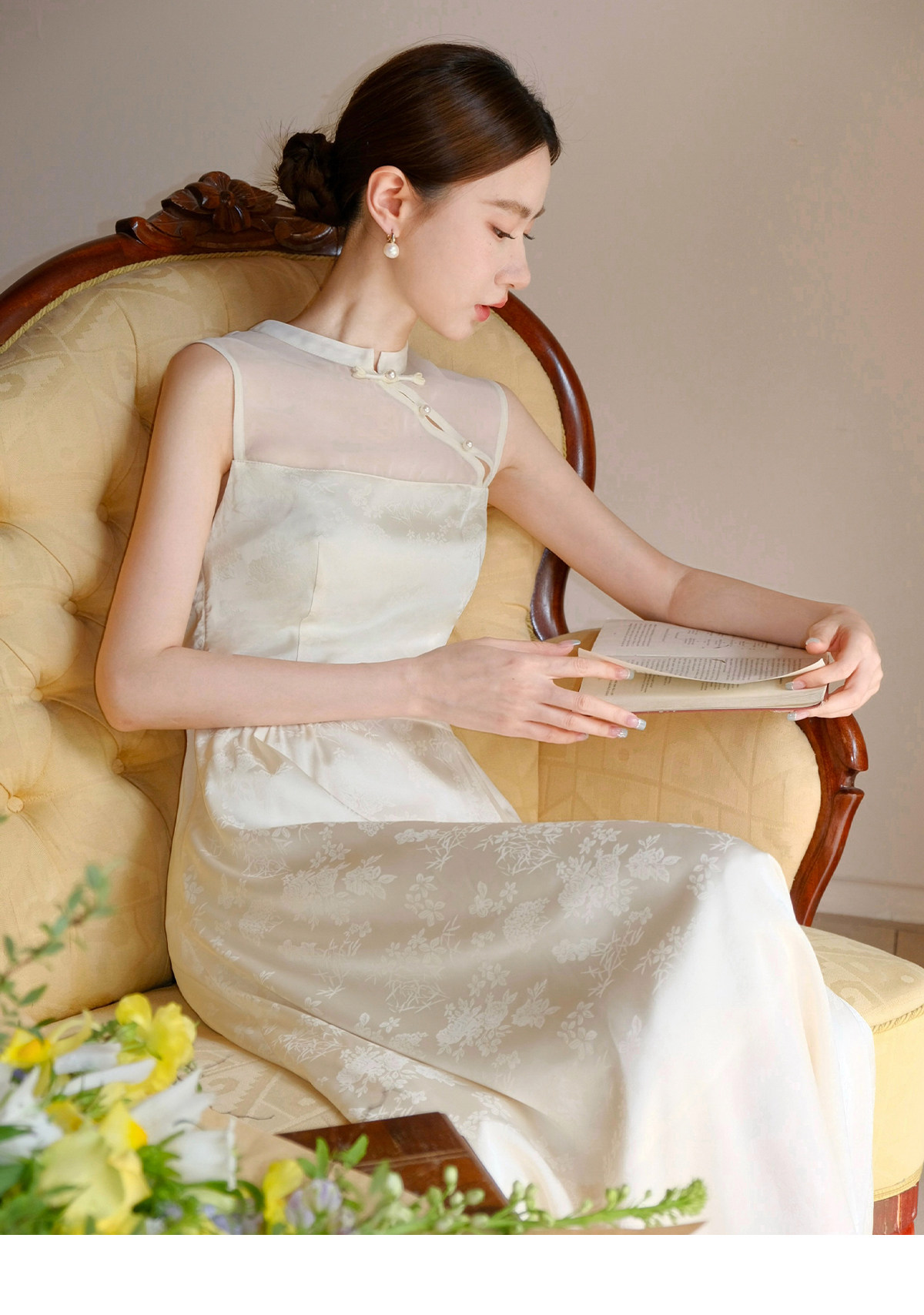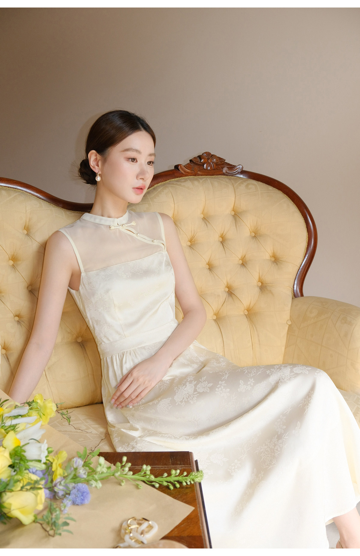 Xxning New Chinese Style Small Stand Collar Jacquard Dress for Women, Autumn New Model, High-End Atmosphere, Elegant and Slimming Long Dress