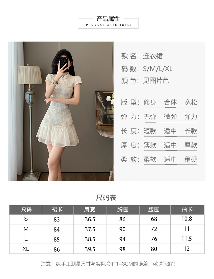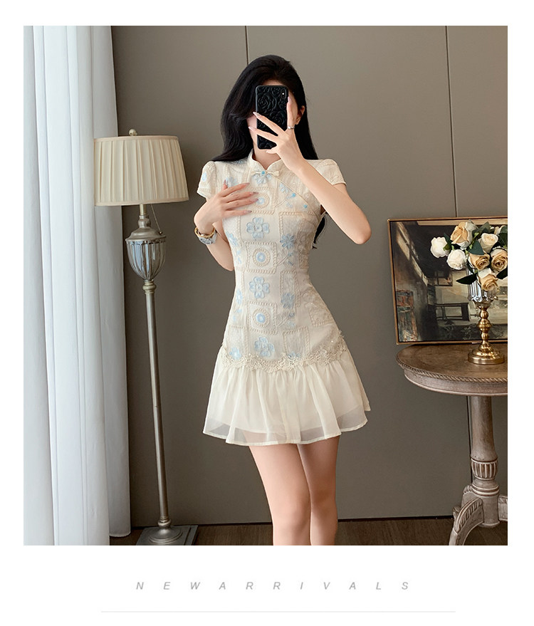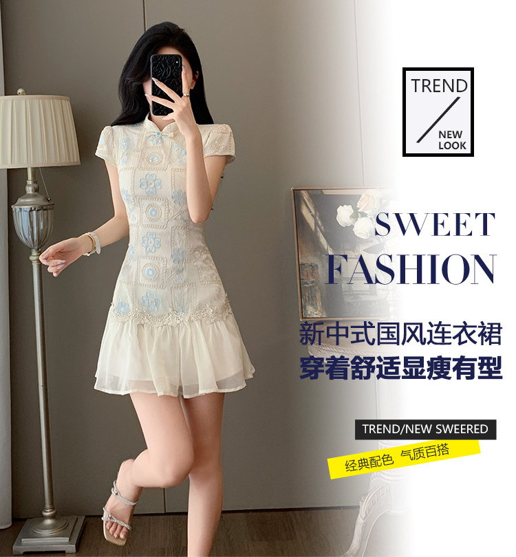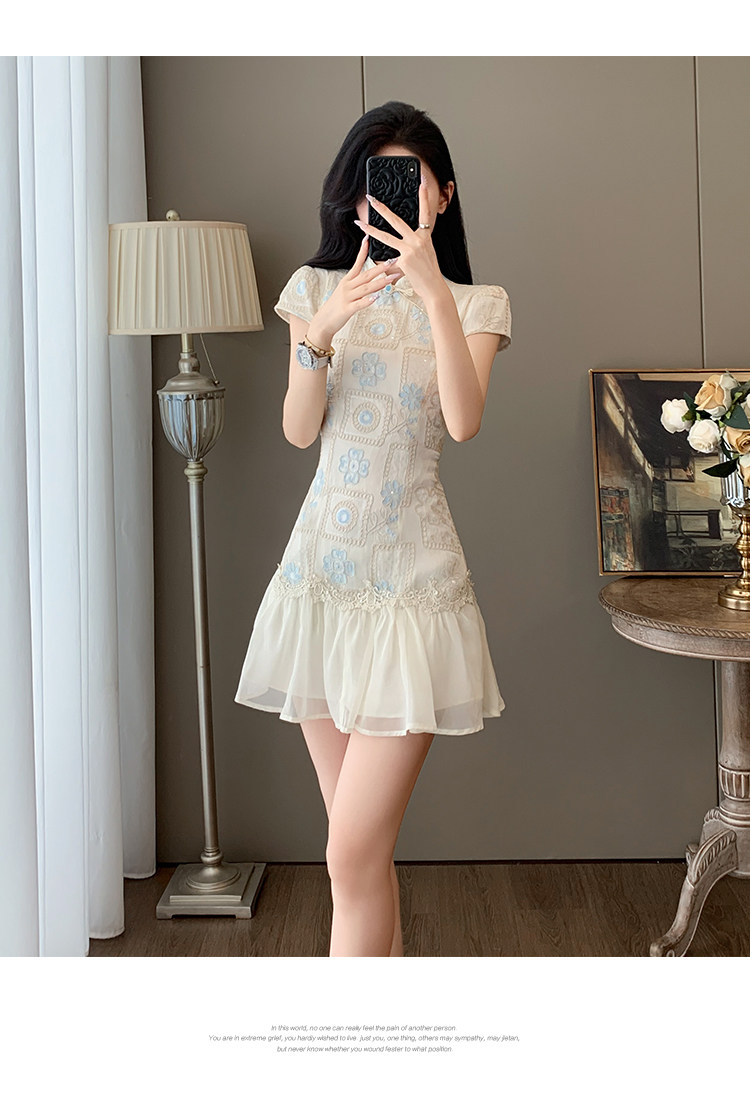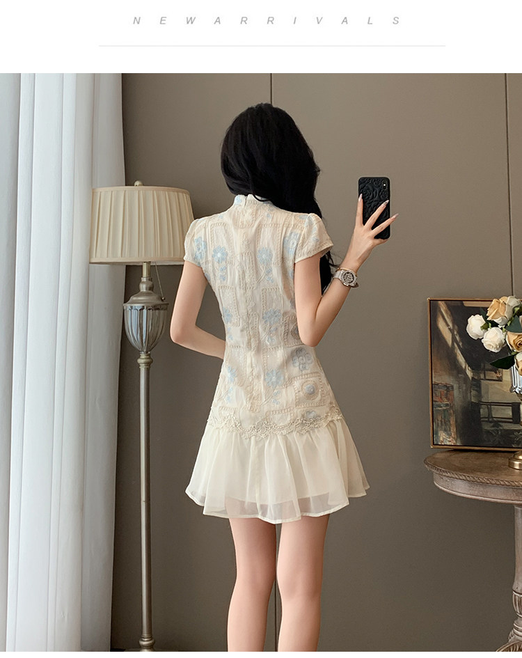 Summer Elegant Stand-Up Collar Stunning Embroidered Patchwork Improved Cheongsam Dress for Women, Vintage Button New Chinese Style National Dress