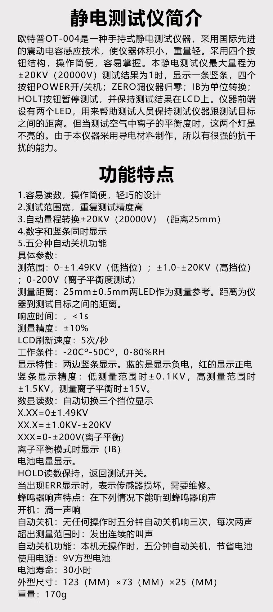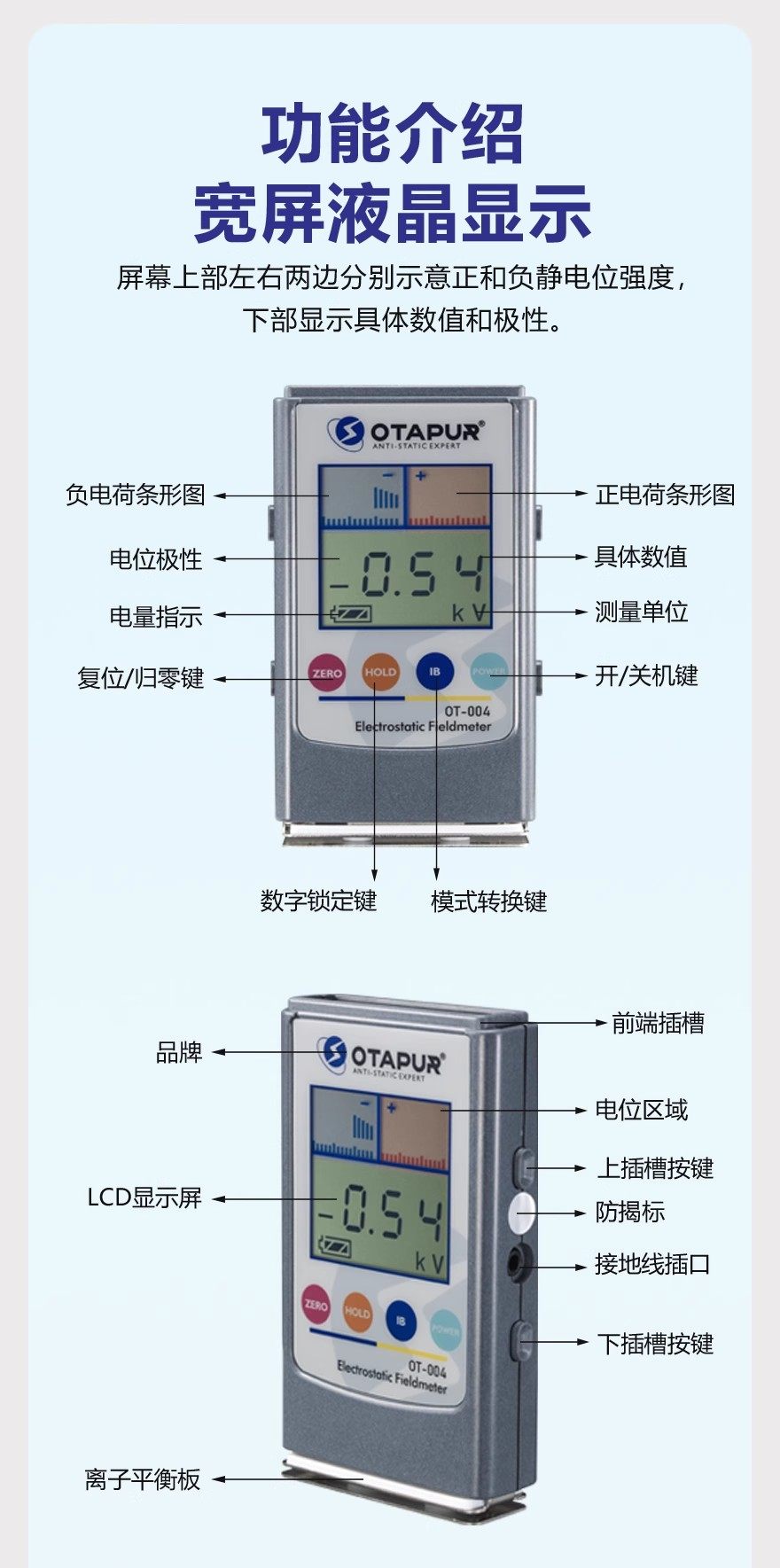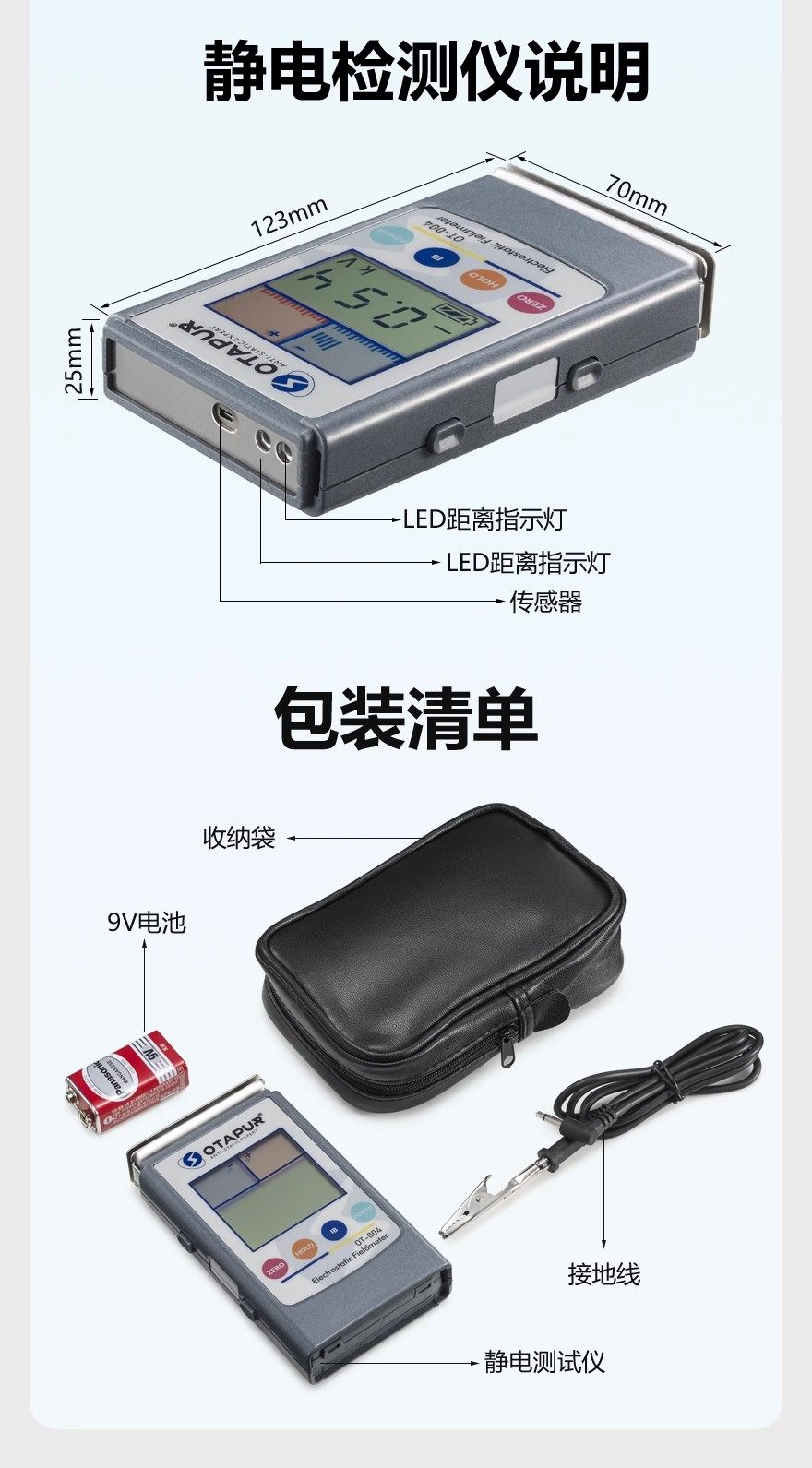 Ot-004 Digital Display Portable Electrostatic Voltage Meter High-Precision Surface Voltage Tester for Fabric Bags and Foam
