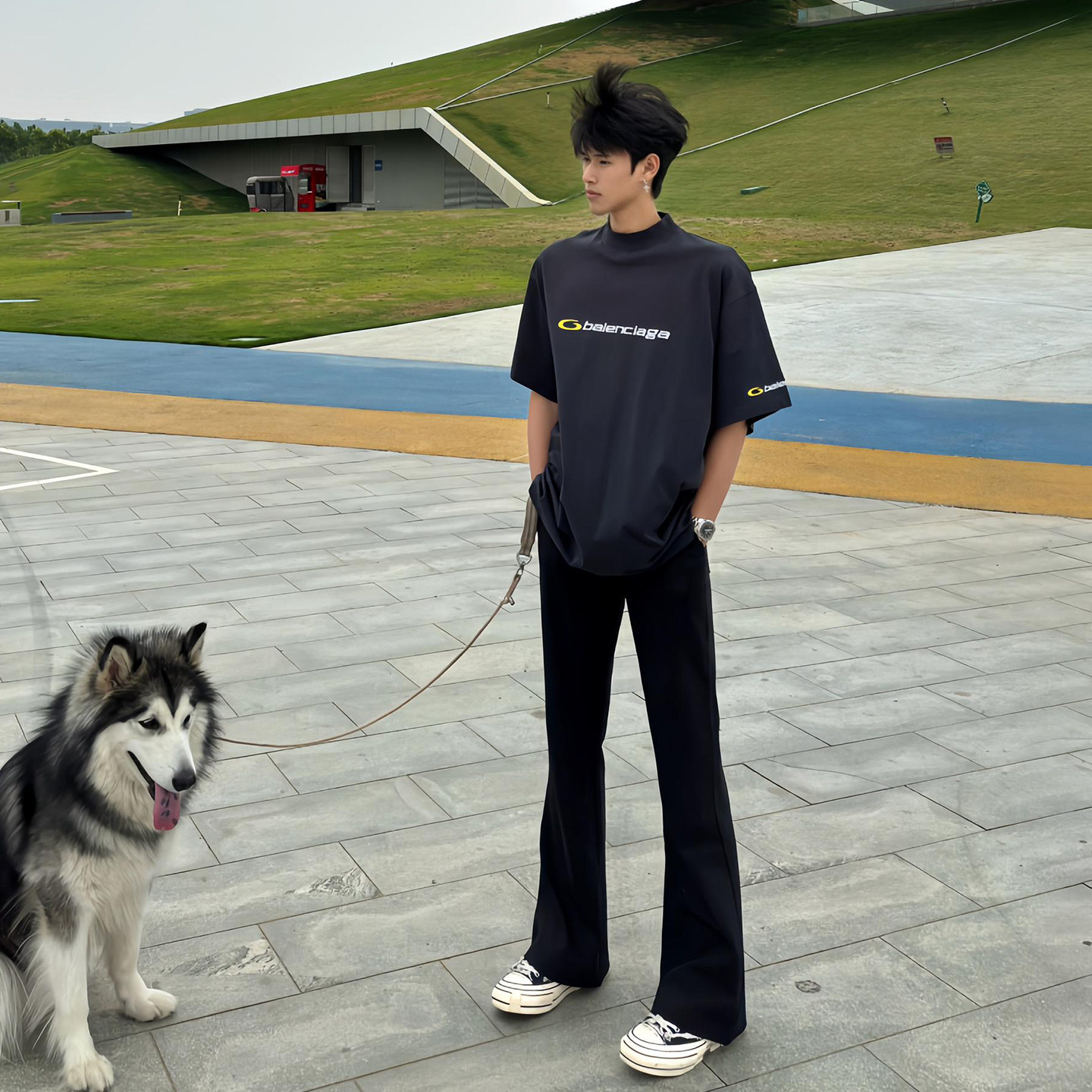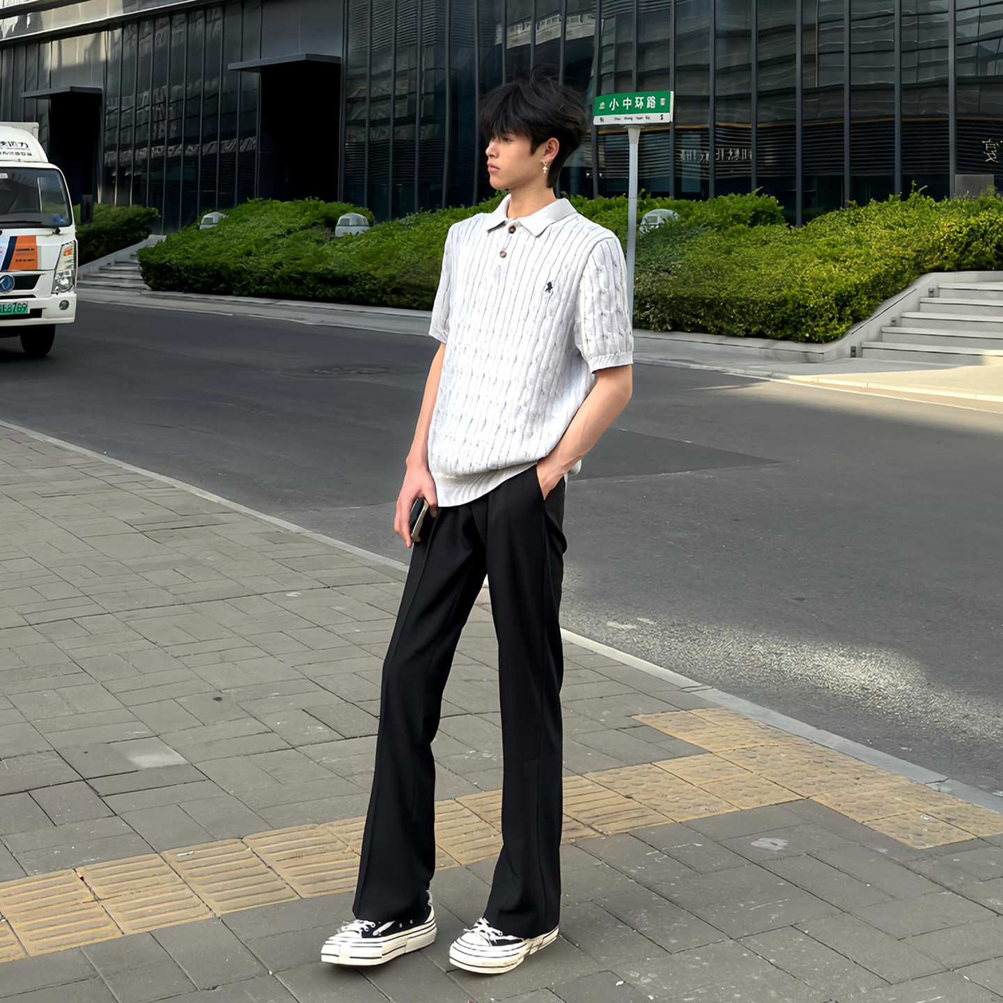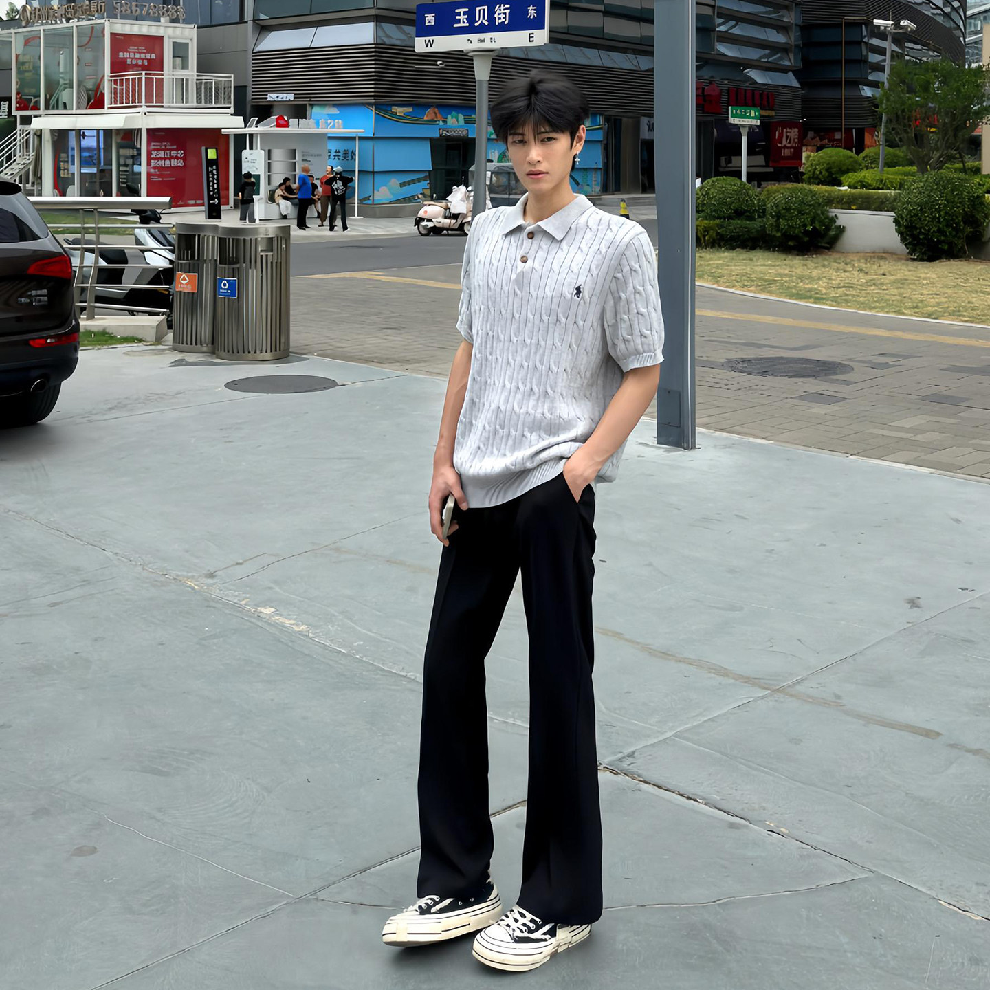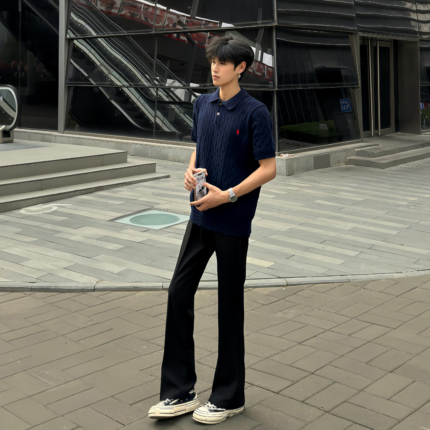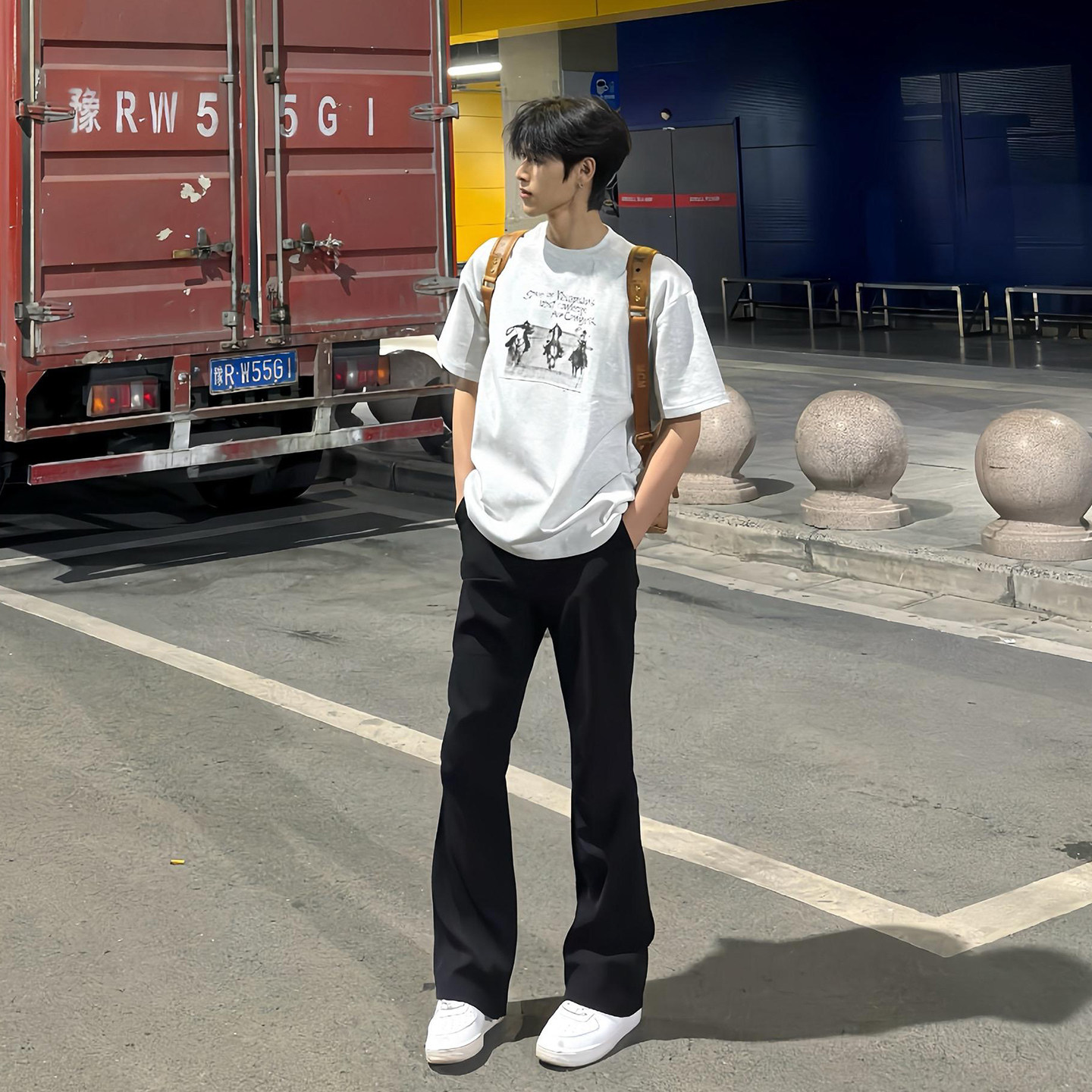 Black slightly flared scimitar trousers for men, summer thin, American handsome, high-end trousers, ice silk drapey straight trousers