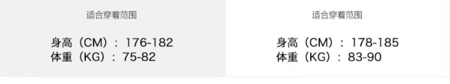 China (cm) 165 / 88-90 170 / 96-98 175 / 108-110 180 / 118-122 185 / 126-130
