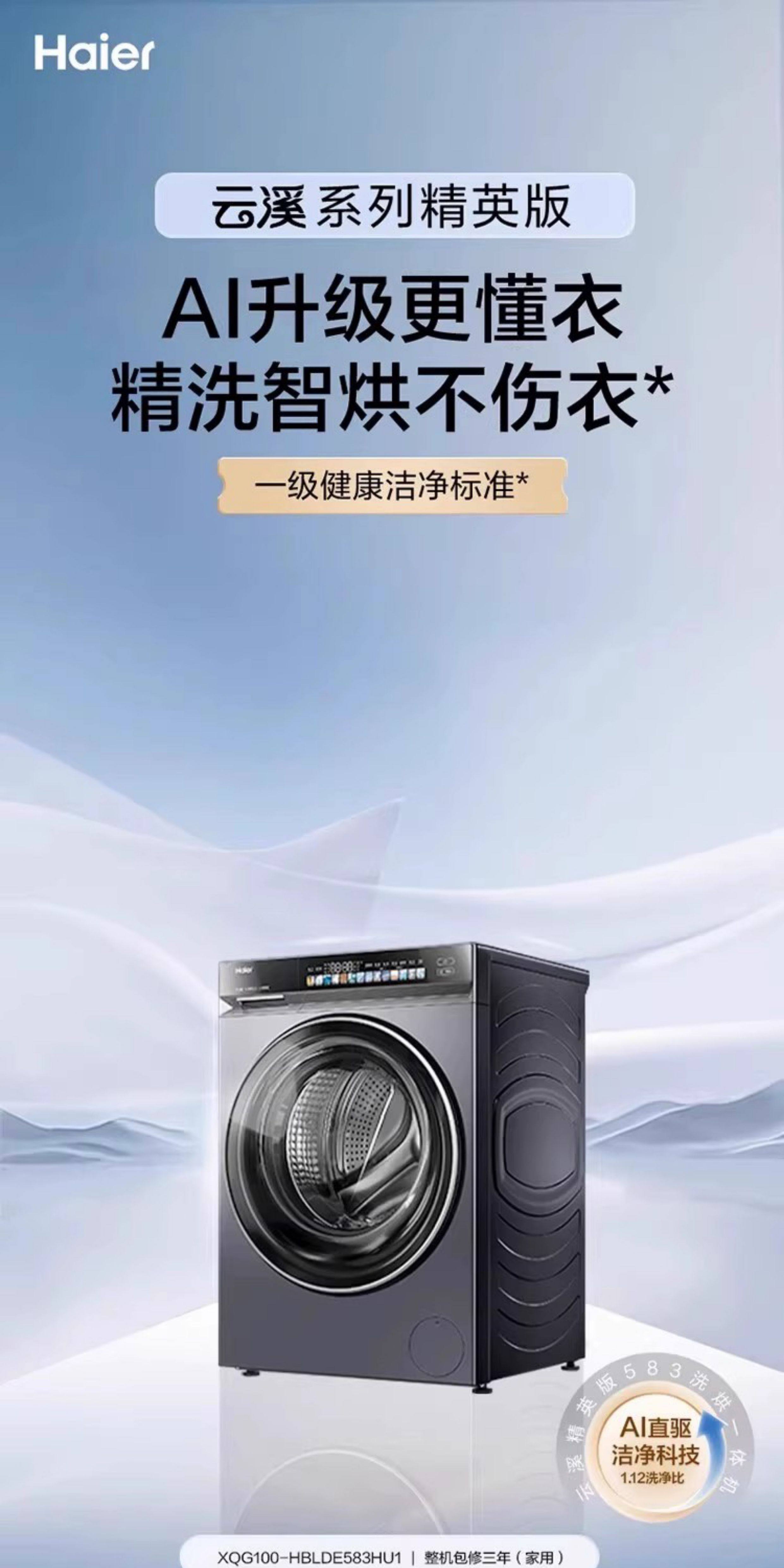 Haier Yunxi 3.0 XQG100-BLDE583HU1 drum washing machine fully automatic 10kg household direct drive