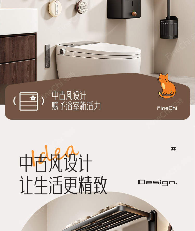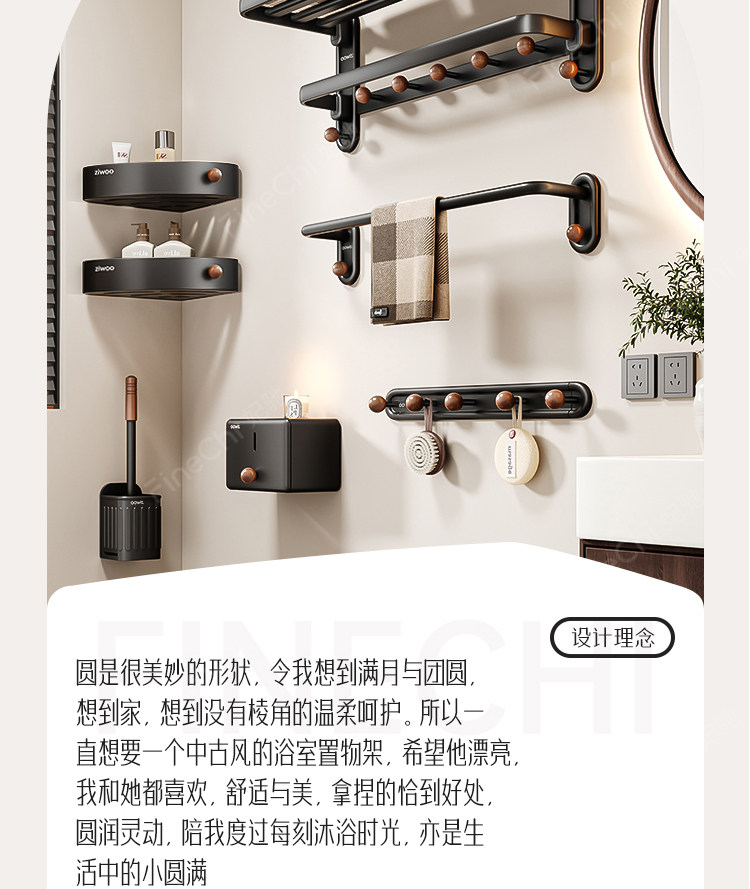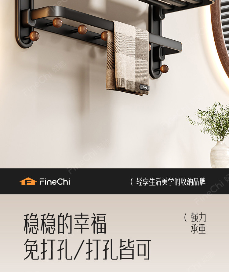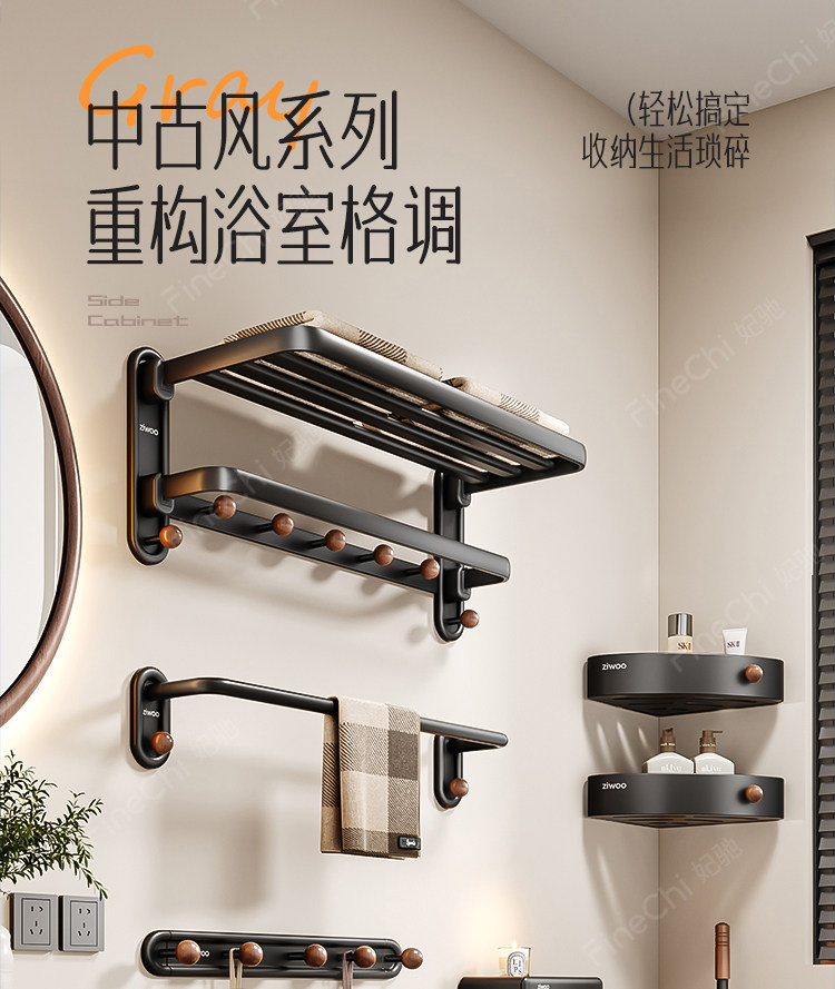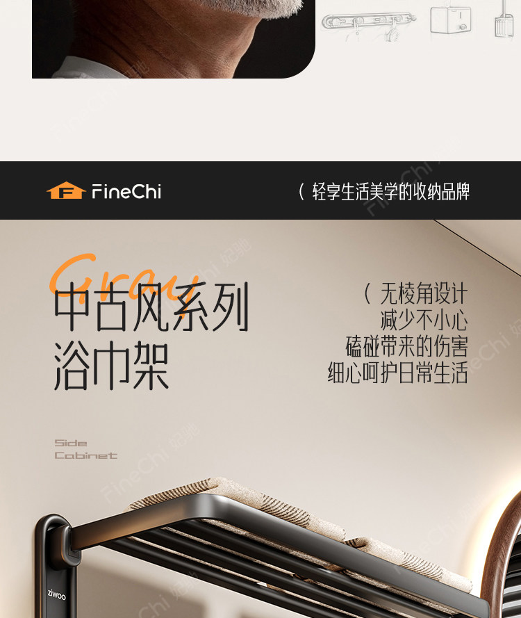 Finechi Vintage-Style Bathroom Towel Rack, No-Drill Towel Holder, Storage Rack, Italian Minimalist Bathroom Organization