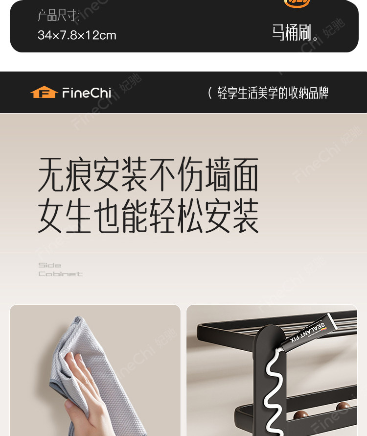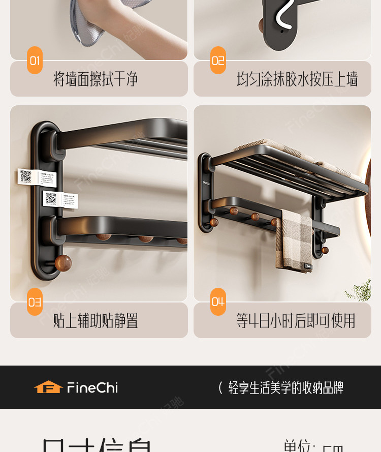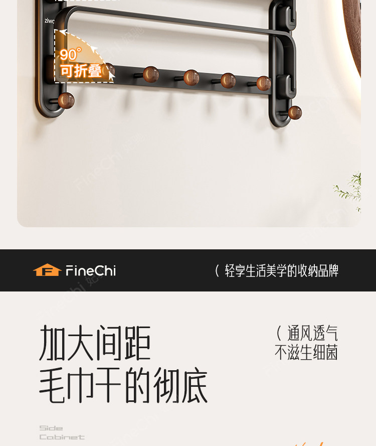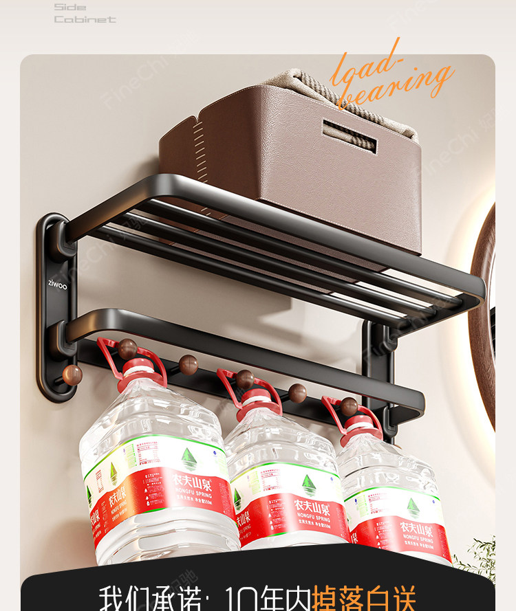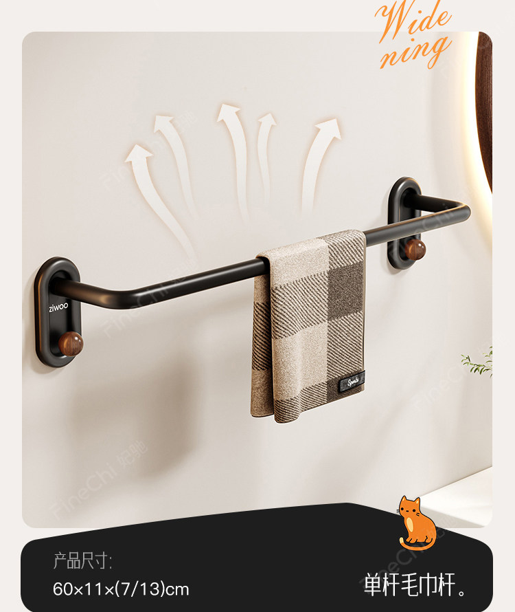 Finechi Vintage-Style Bathroom Towel Rack, No-Drill Towel Holder, Storage Rack, Italian Minimalist Bathroom Organization