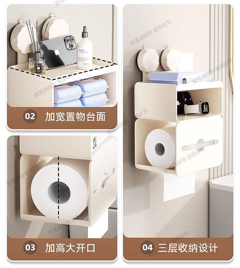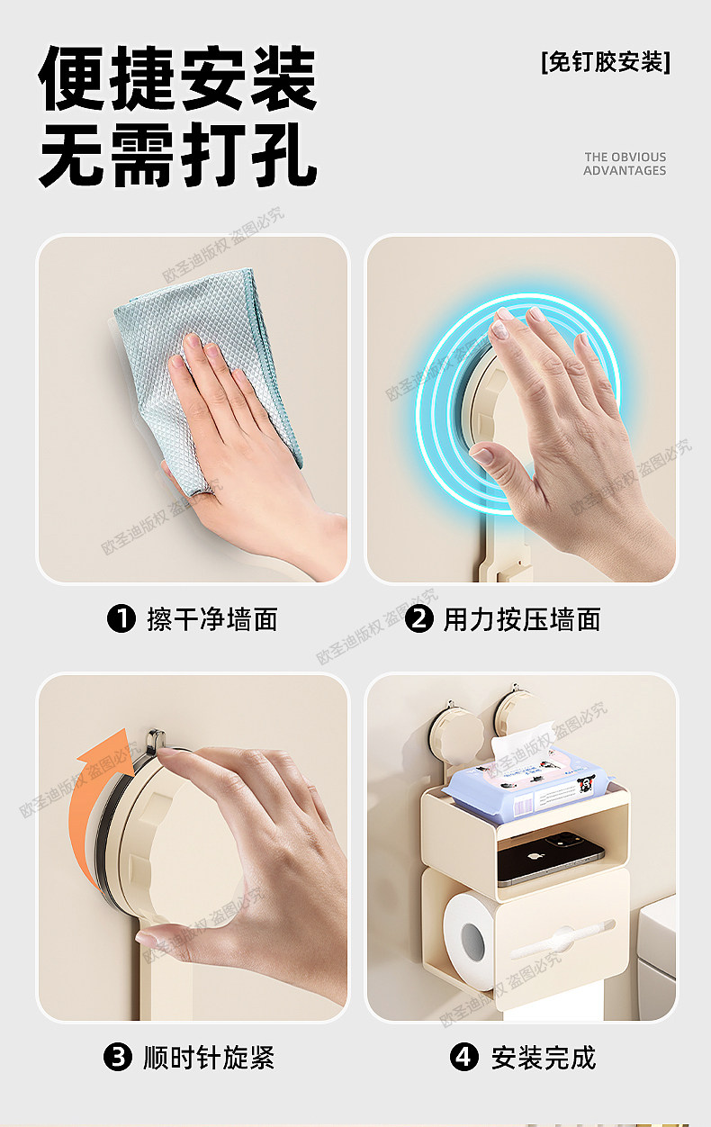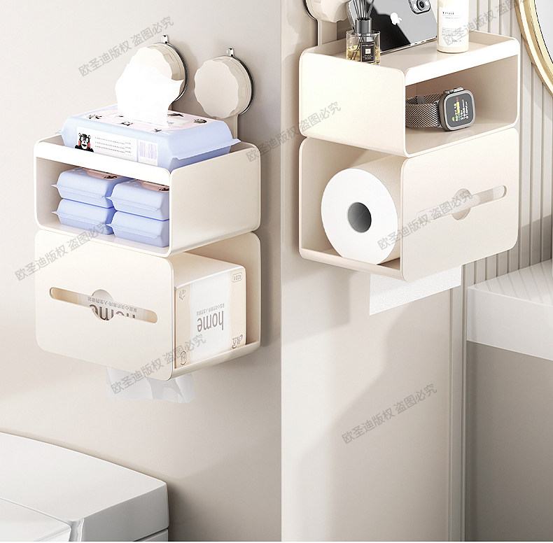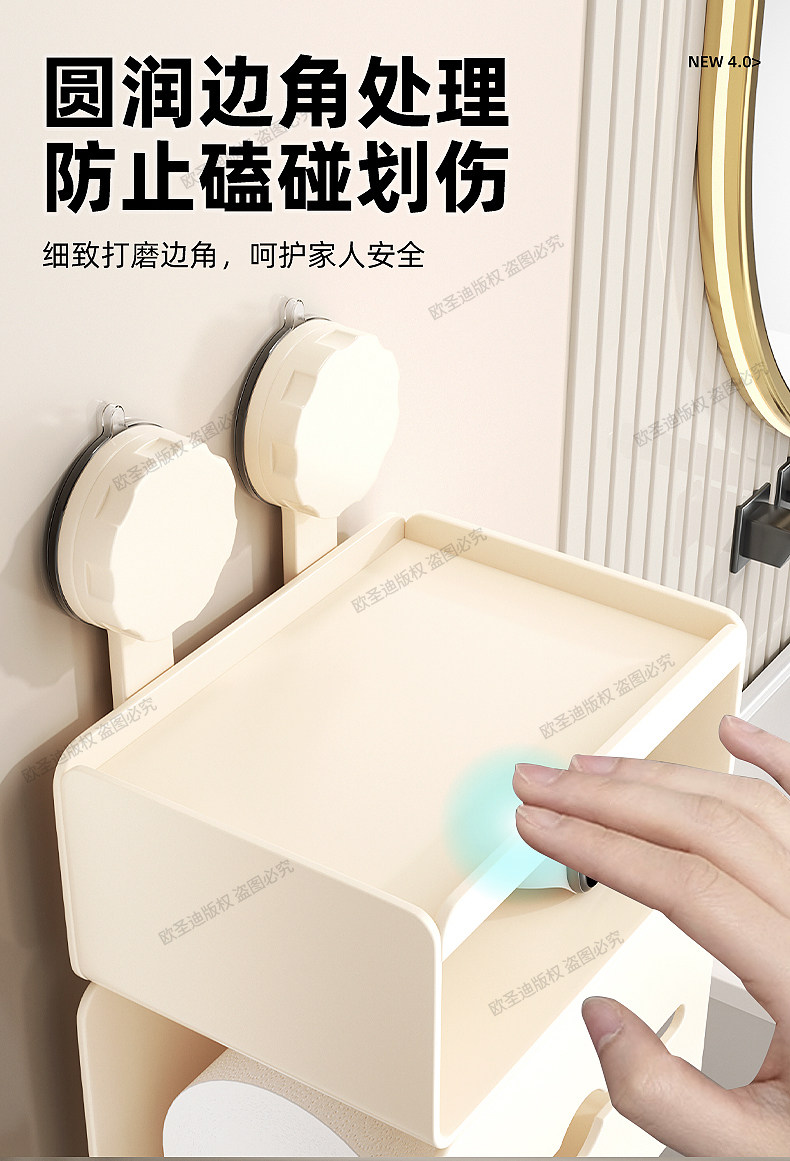 Suction cup bathroom toilet paper box without punching toilet tissue box wall-mounted roll paper toilet paper storage rack