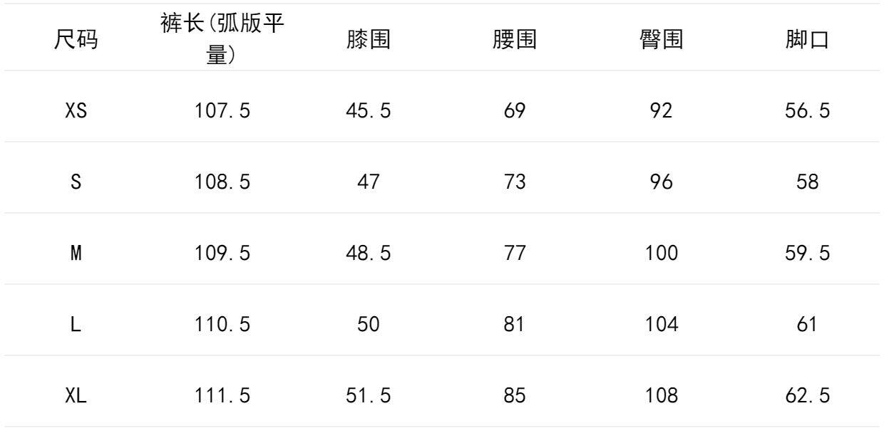 Outseam (cm) 99 cm 101.5 cm 104 cm 106.5 cm 109 cm