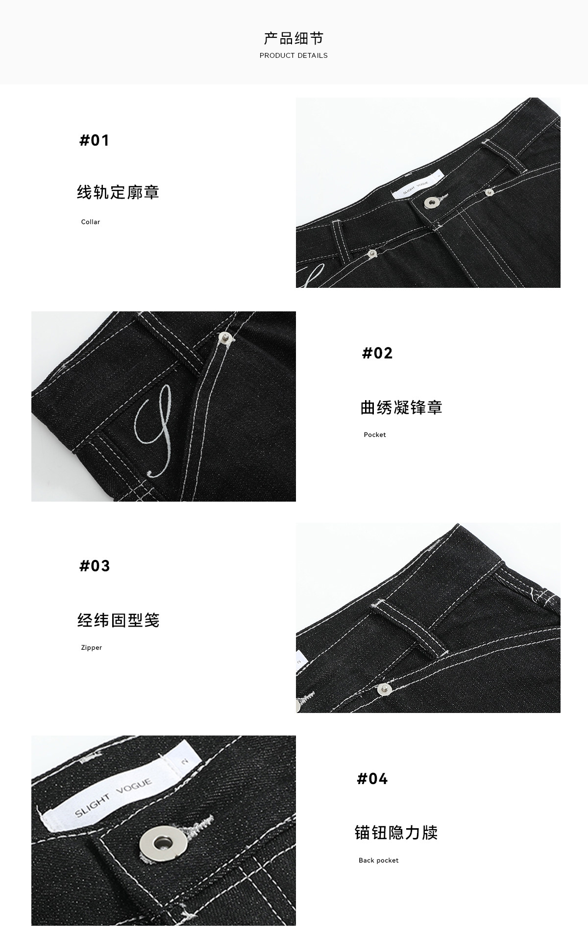 Slight Vogue丨Arc pocket fixed nail puree black denim 14oz five-pocket fitted bootcut trousers
