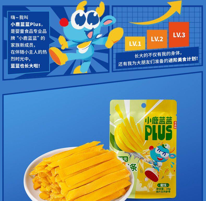 Little Deer Blue Blue Plus Prebiotic Mango Bars A+ Large Fruit 25g Pack Small Bagged Children's Healthy Snack