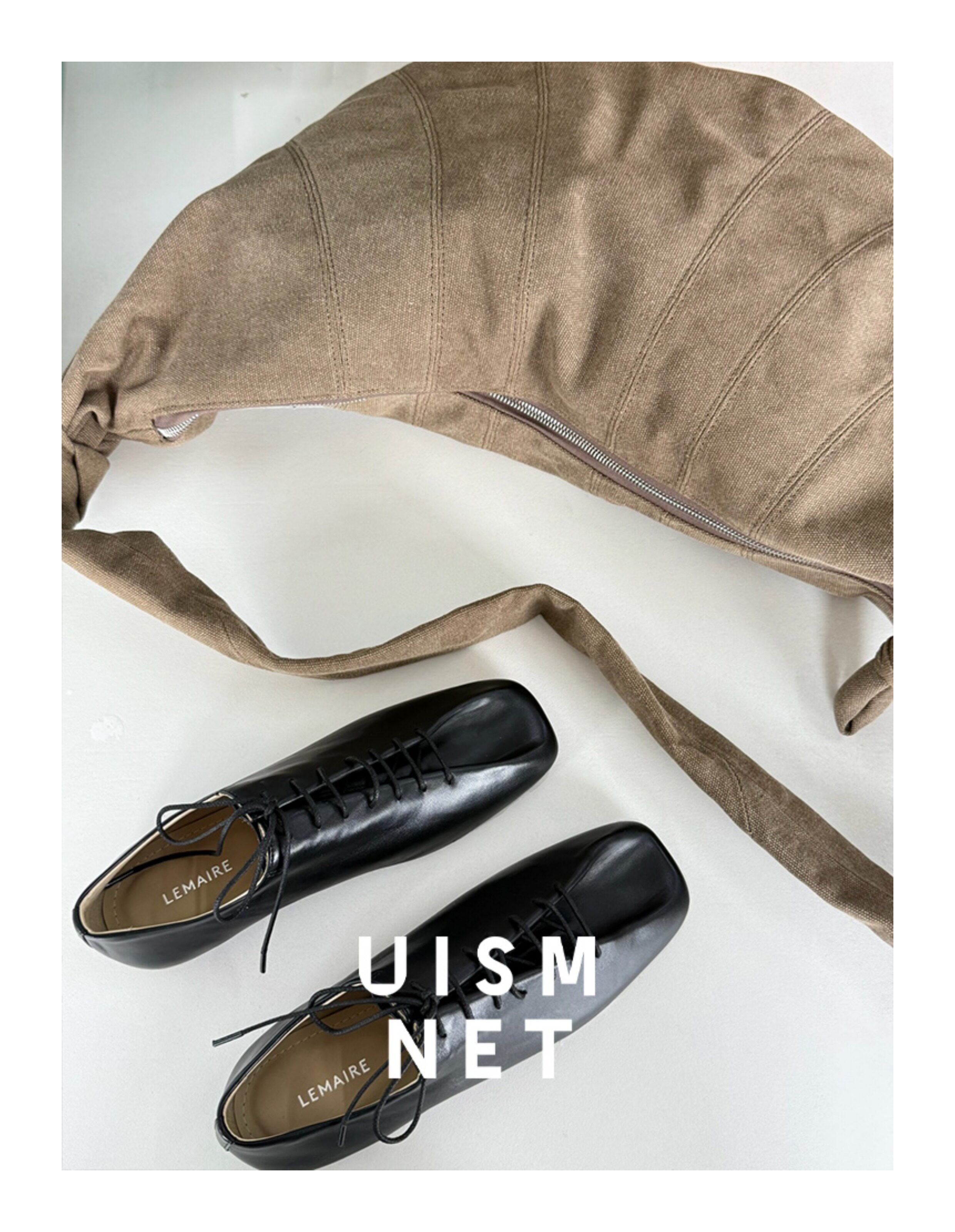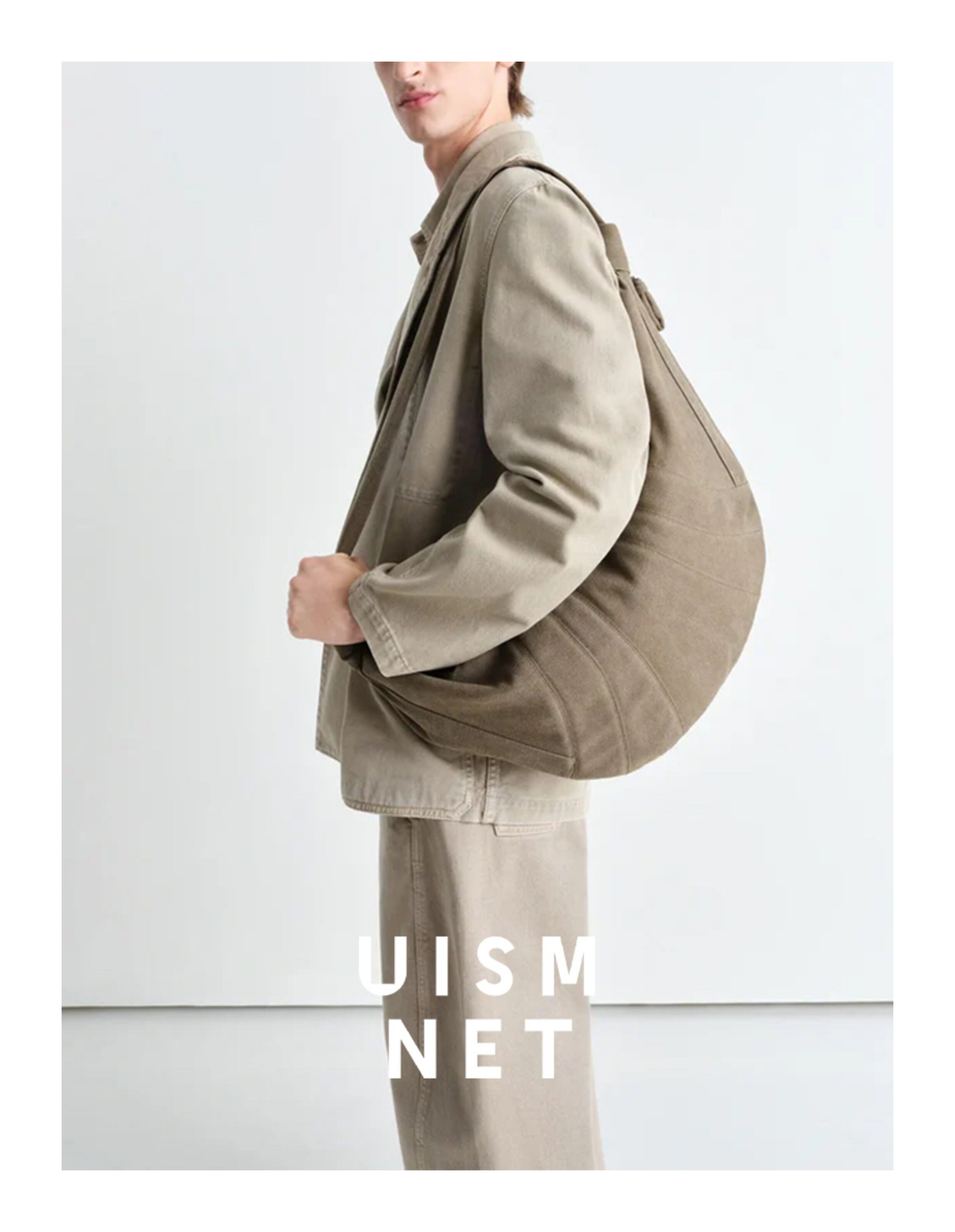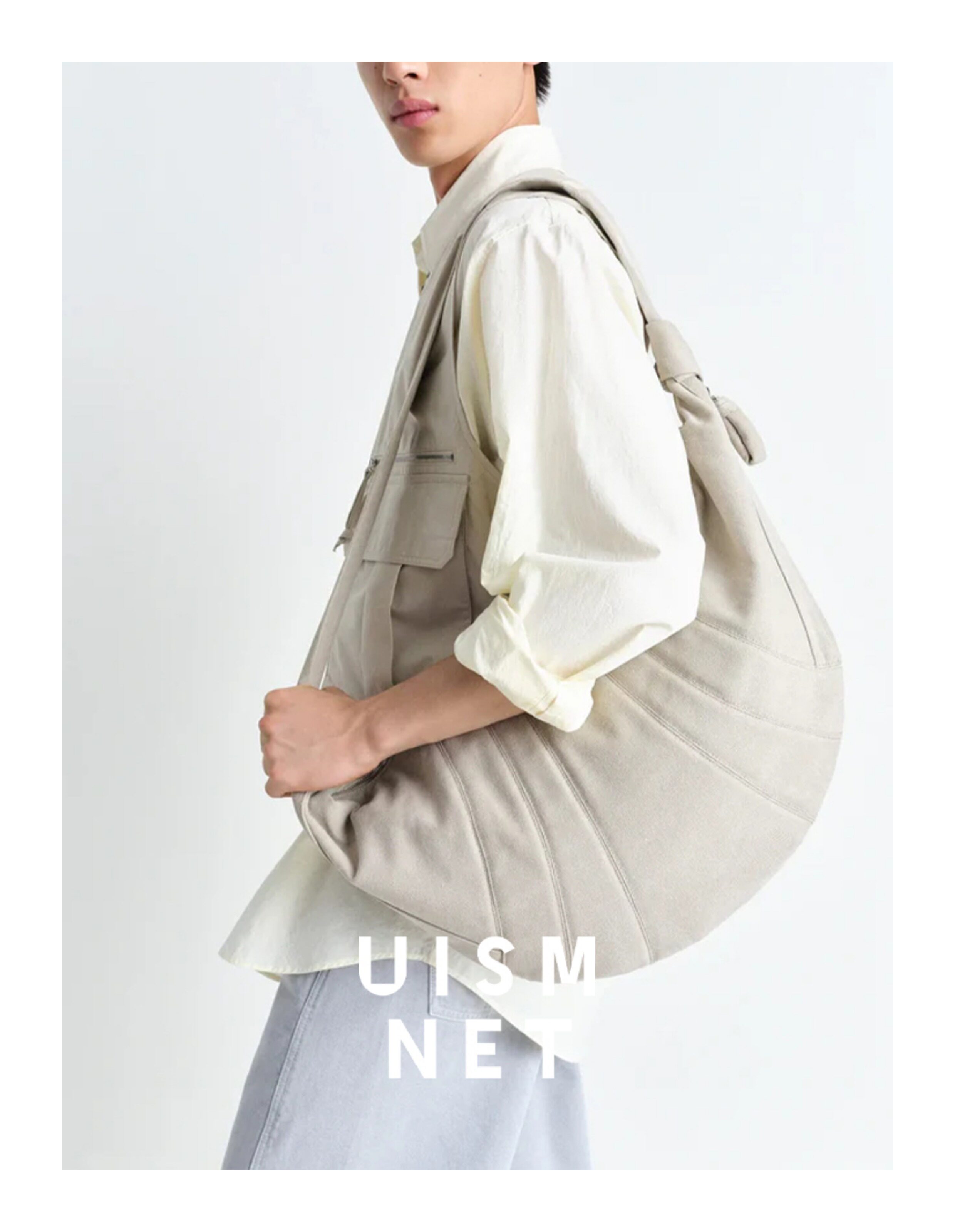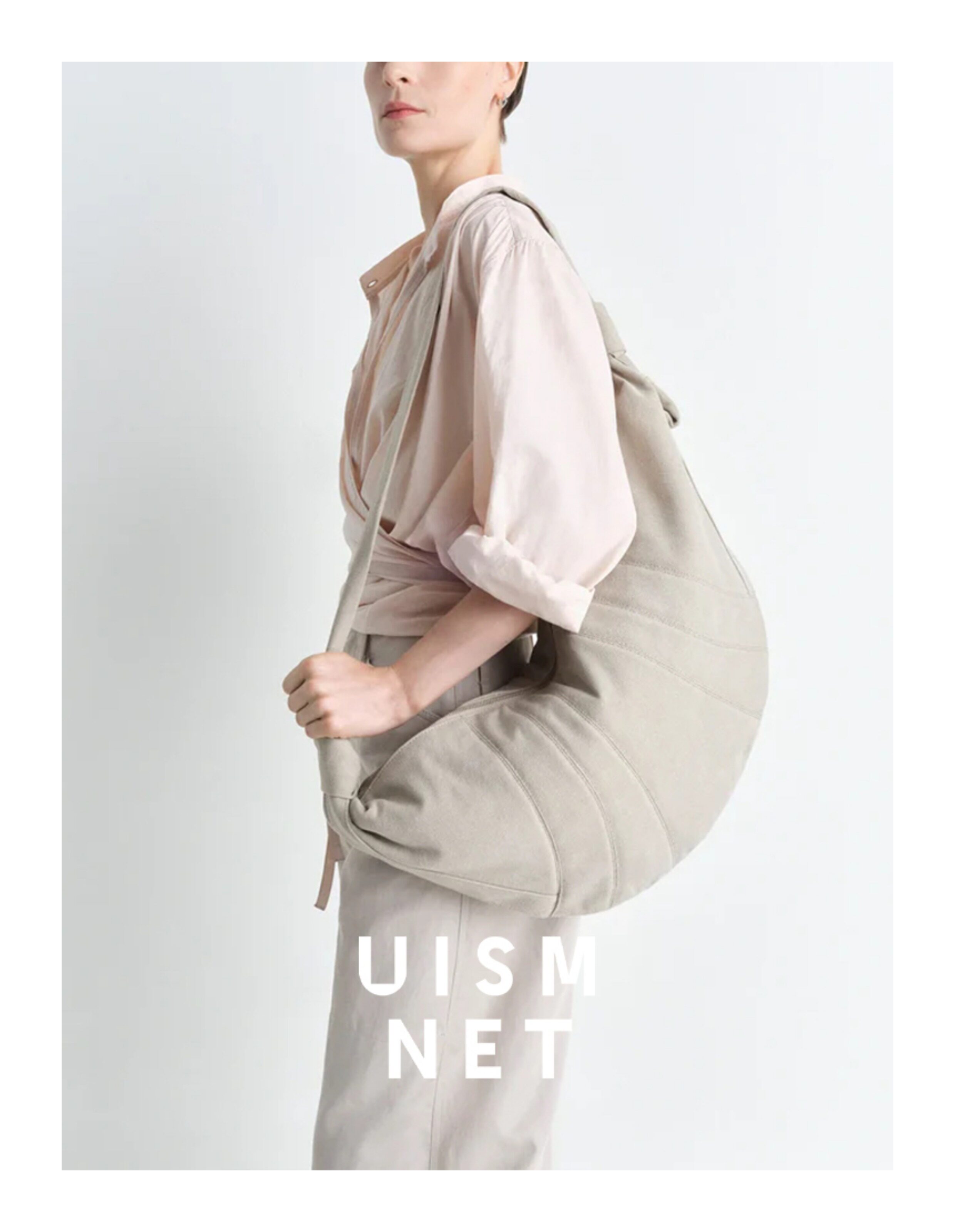 [Canvas Croissant]Lemaire White/Grey/Brown Large XL Croissant Bag