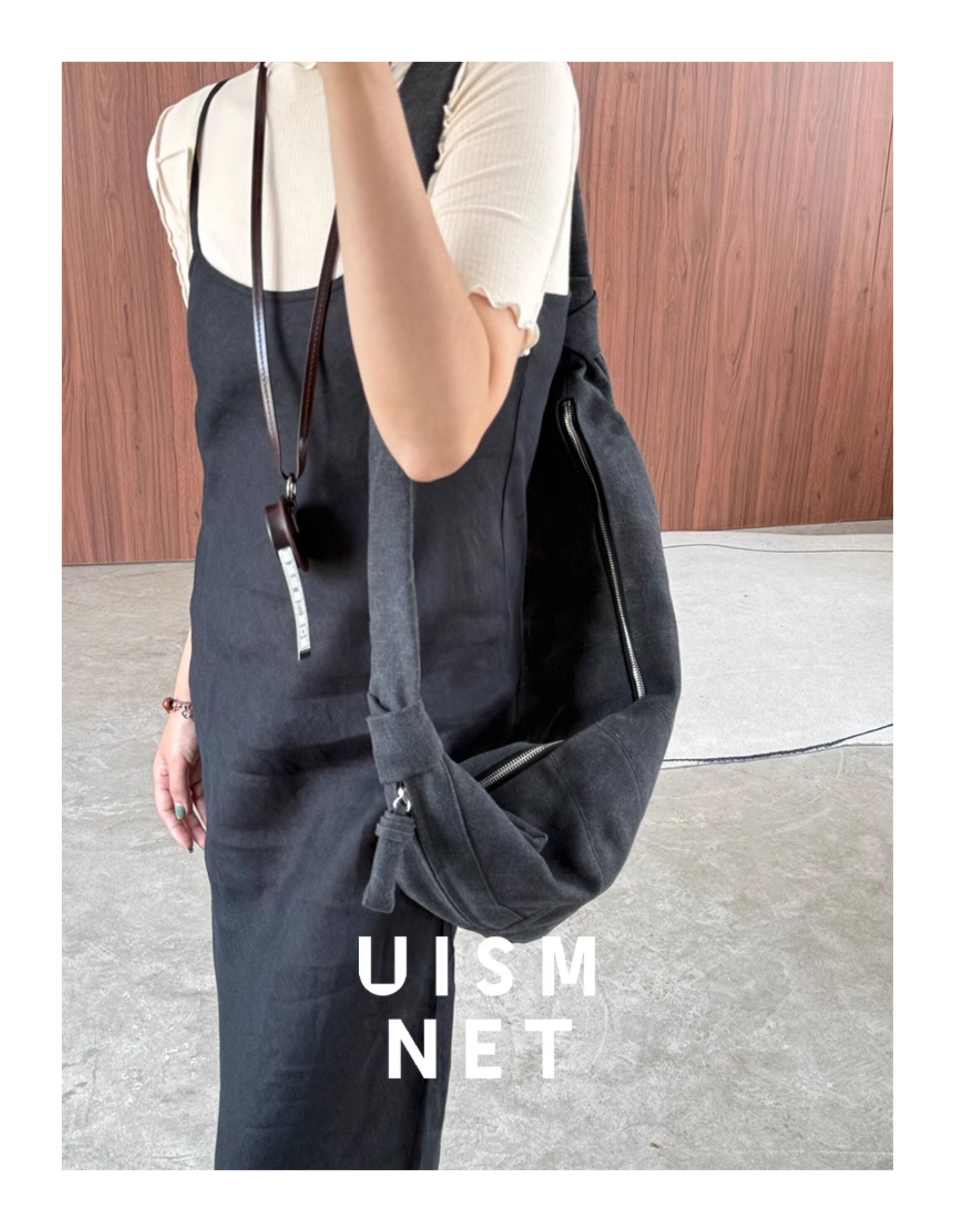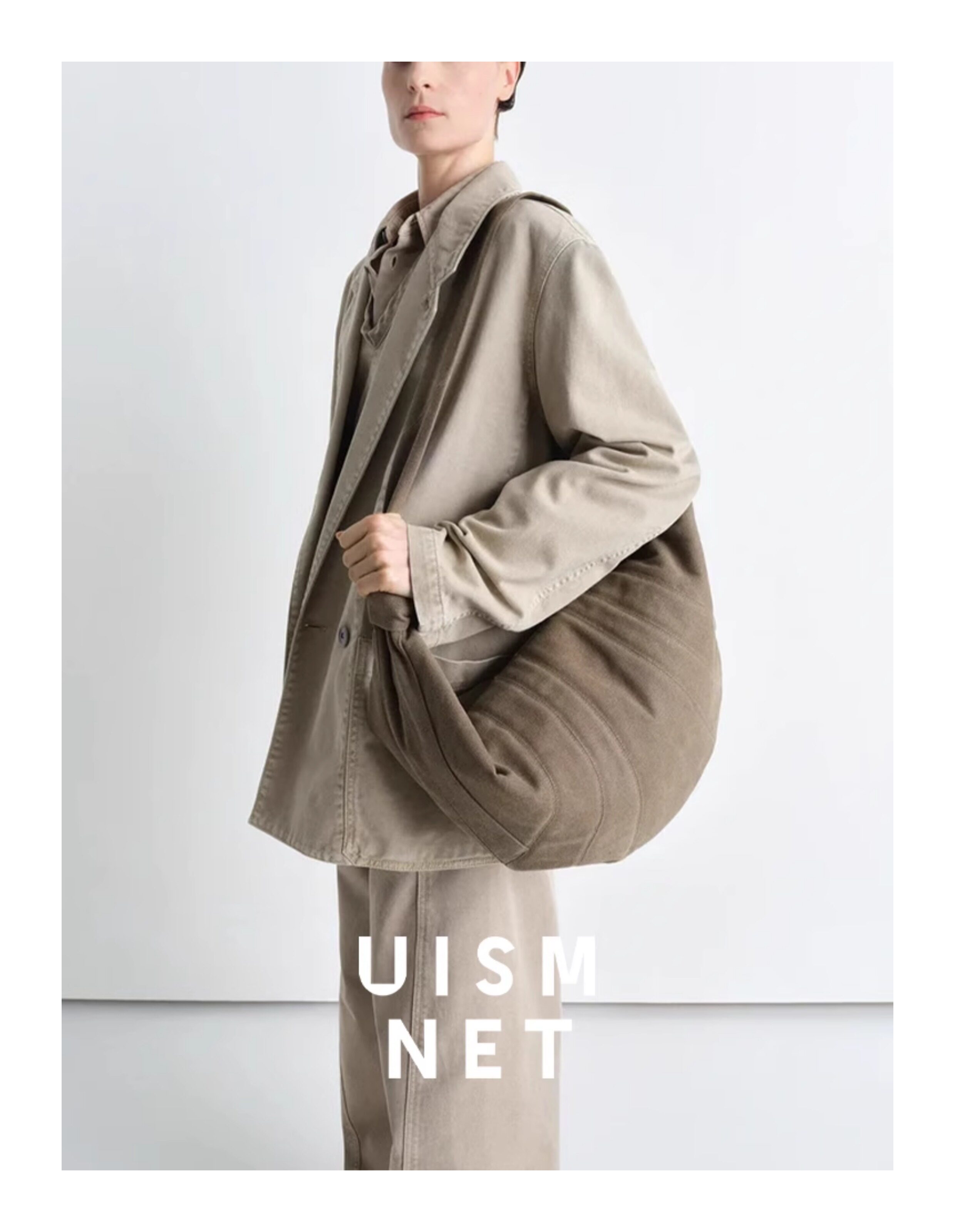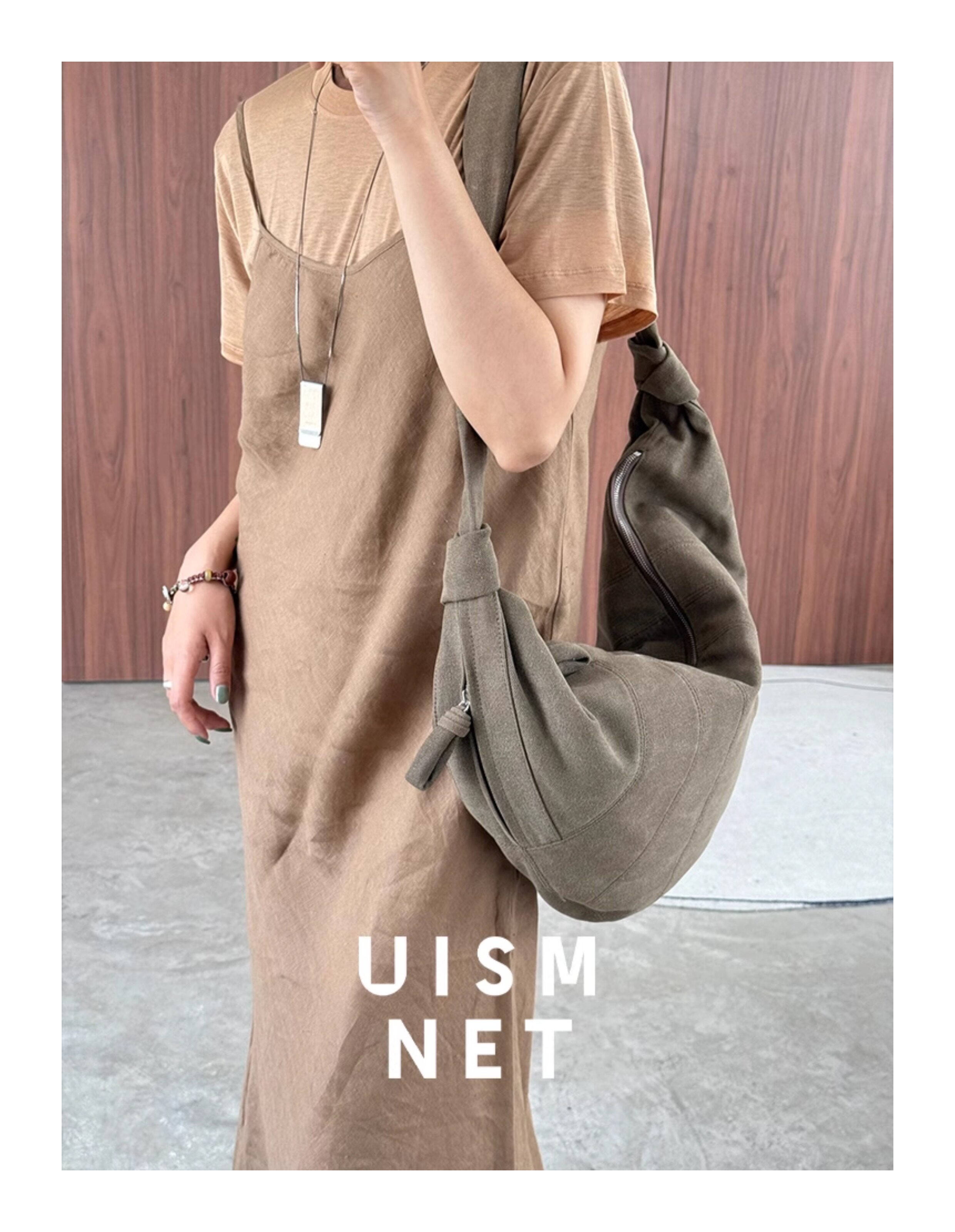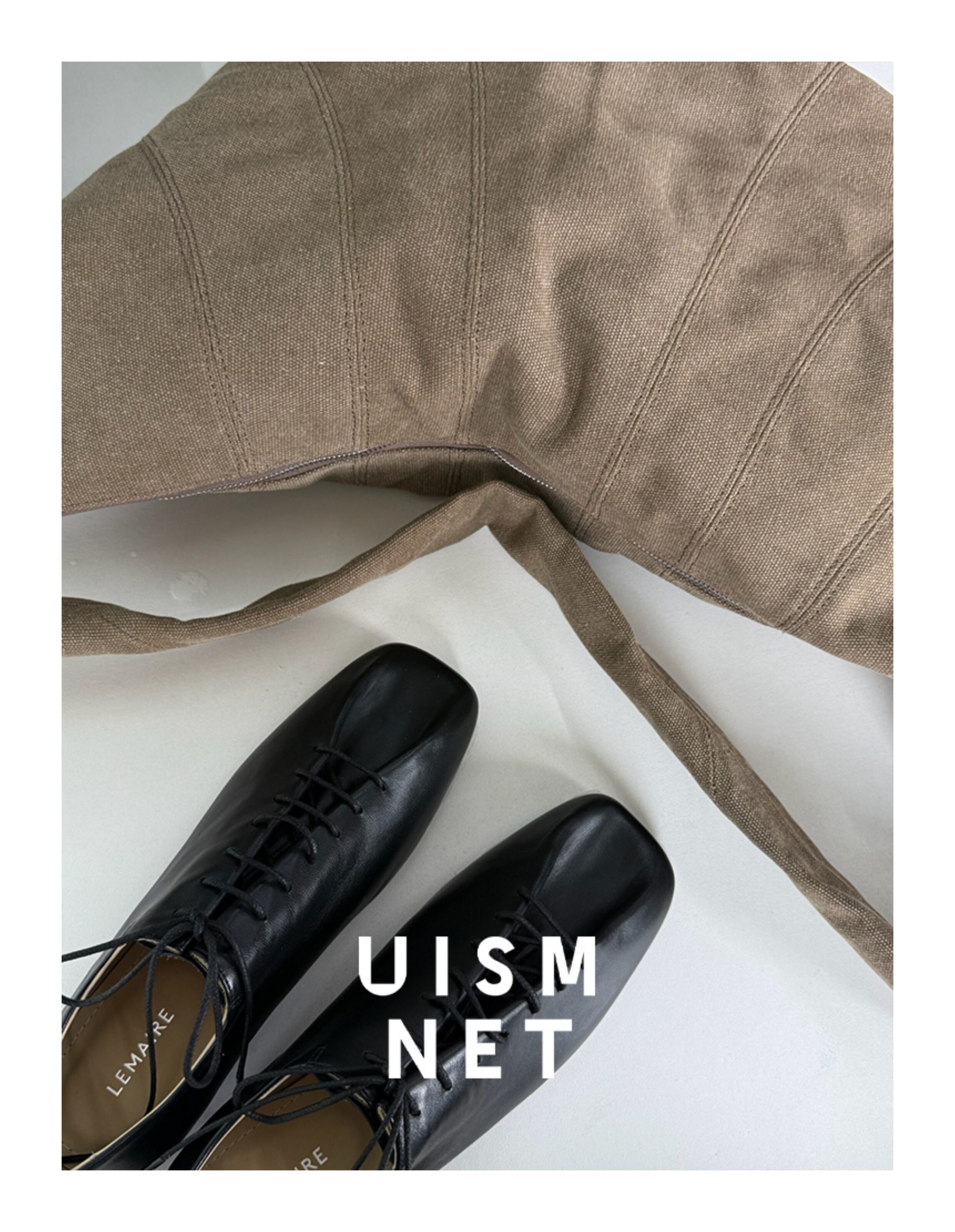 [Canvas Croissant]Lemaire White/Grey/Brown Large XL Croissant Bag