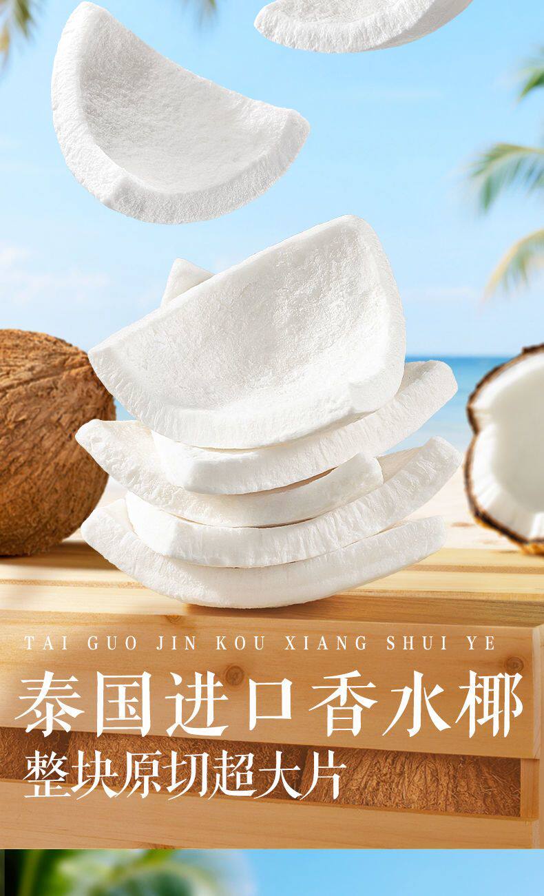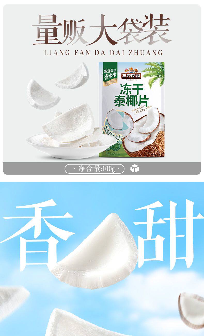 Three Squirrels freeze-dried Thai coconut flakes 100g bag of coconut crisps Internet celebrity ready-to-eat coconut crispy snacks