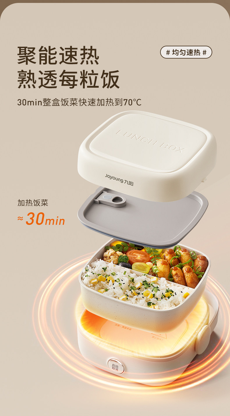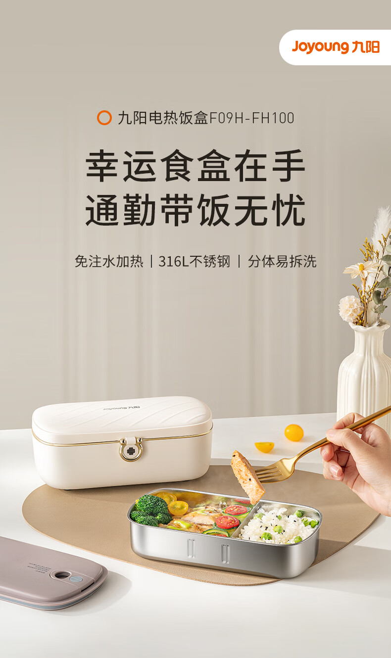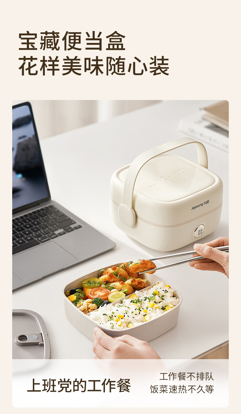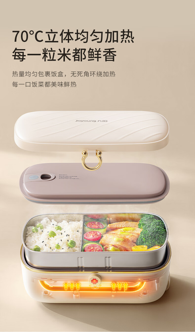 Joyoung Insulated No-Water-Fill Non-Stick Portable Self-Heating Lunch Box with One-Touch Heating and Dual Compartment Inner Pot Fh200