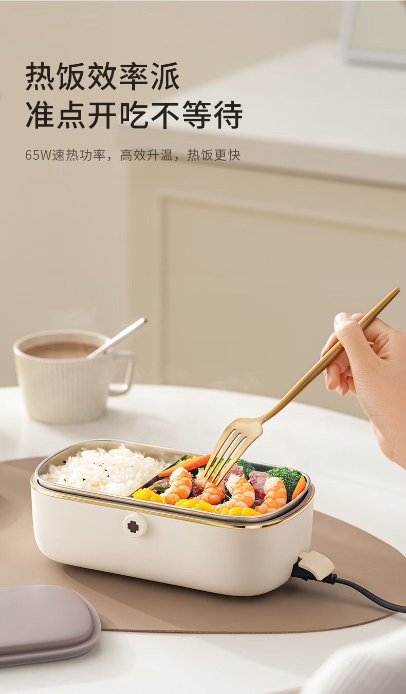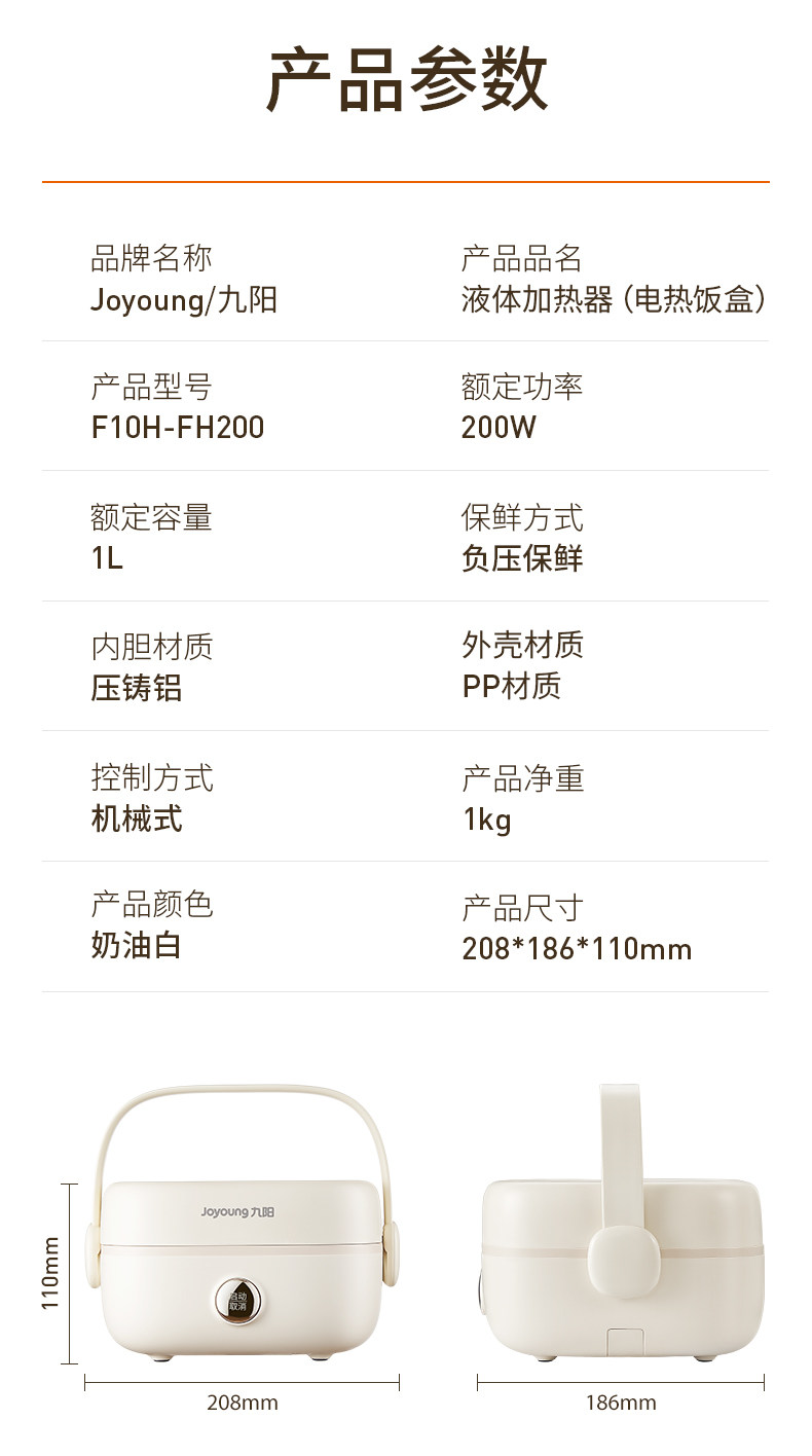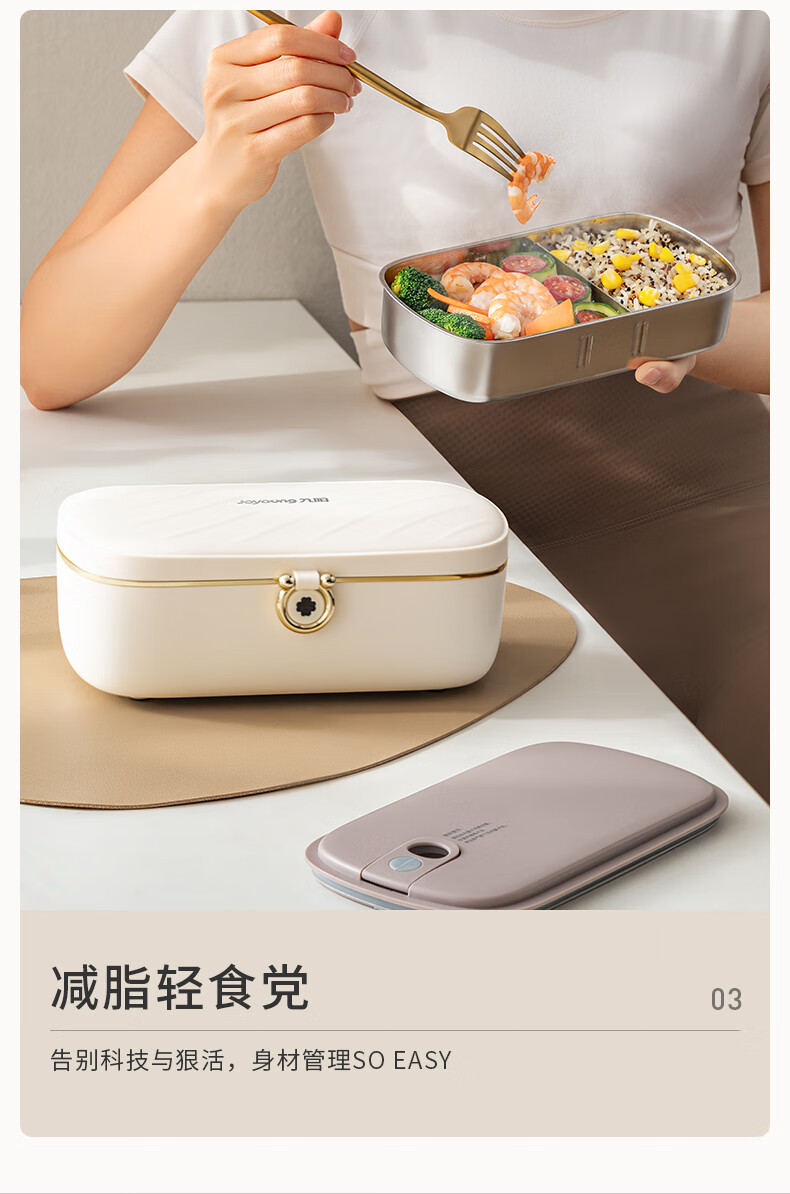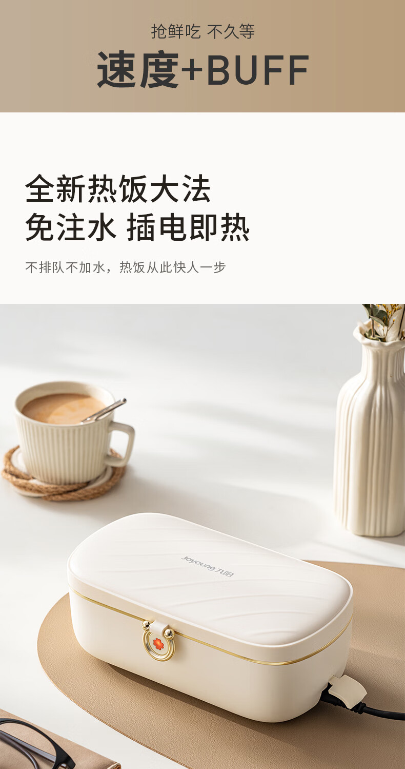 Joyoung Insulated No-Water-Fill Non-Stick Portable Self-Heating Lunch Box with One-Touch Heating and Dual Compartment Inner Pot Fh200
