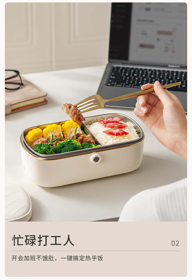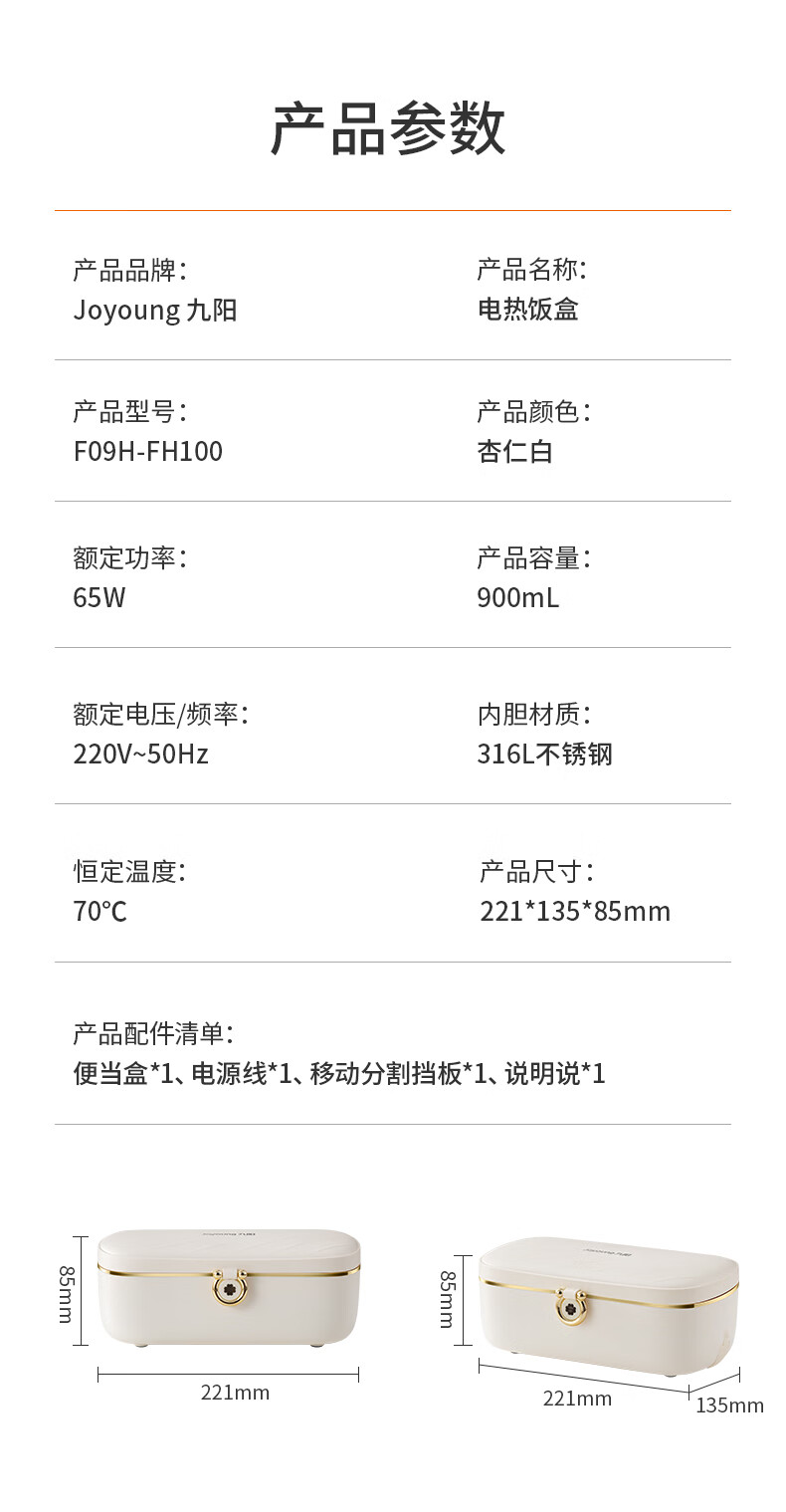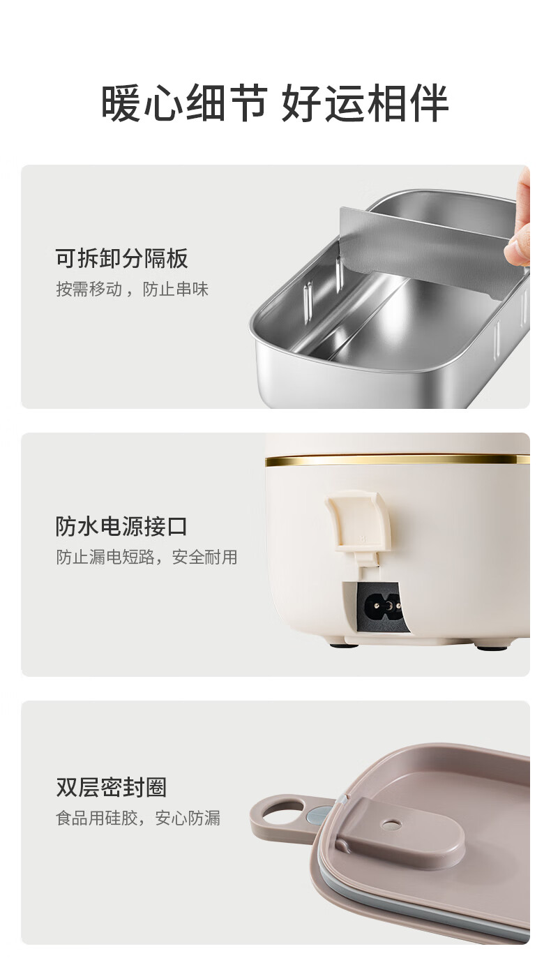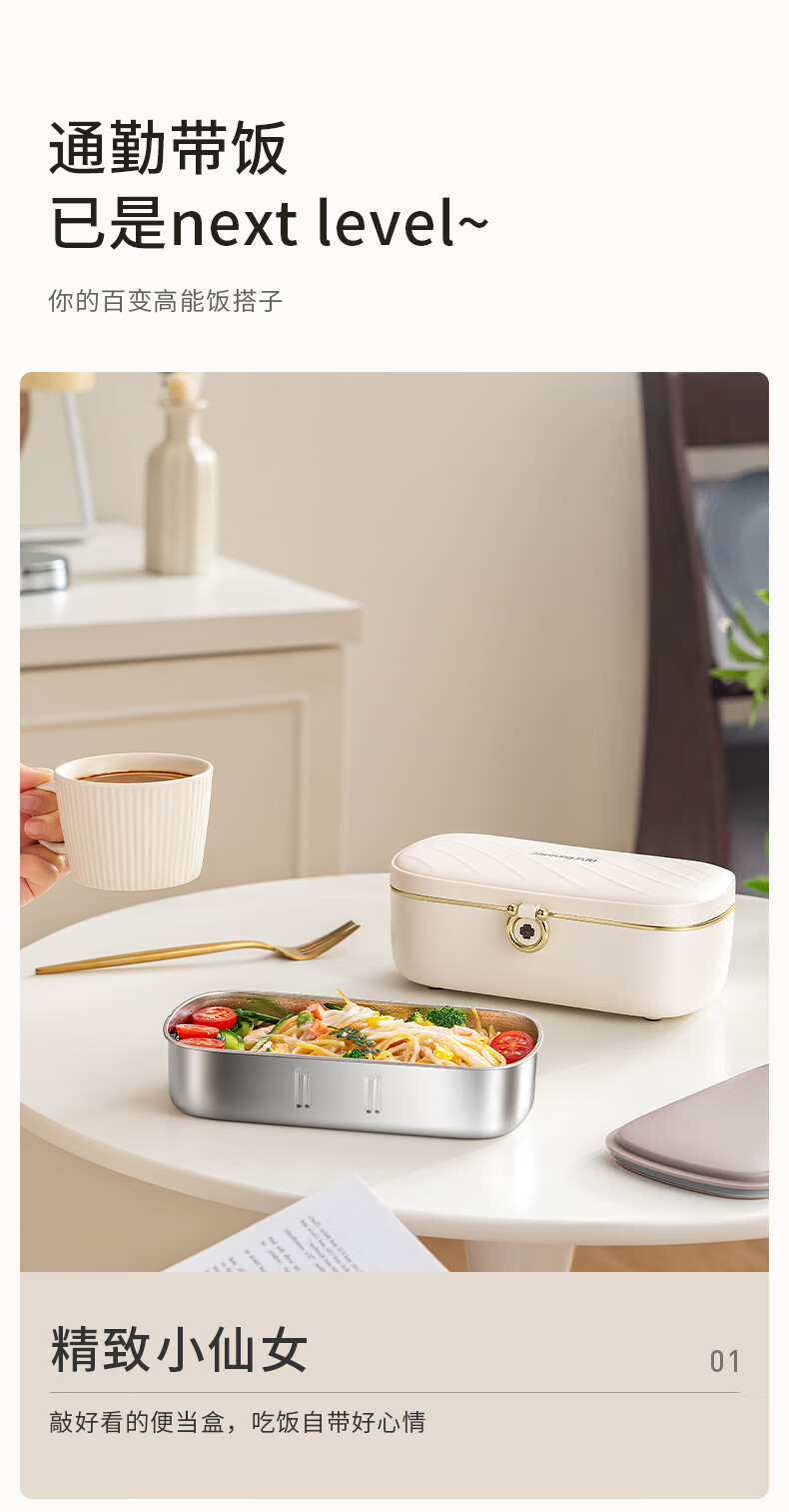 Joyoung Insulated No-Water-Fill Non-Stick Portable Self-Heating Lunch Box with One-Touch Heating and Dual Compartment Inner Pot Fh200