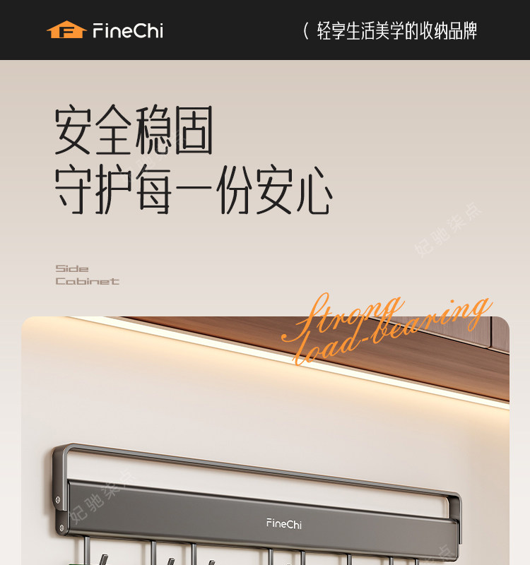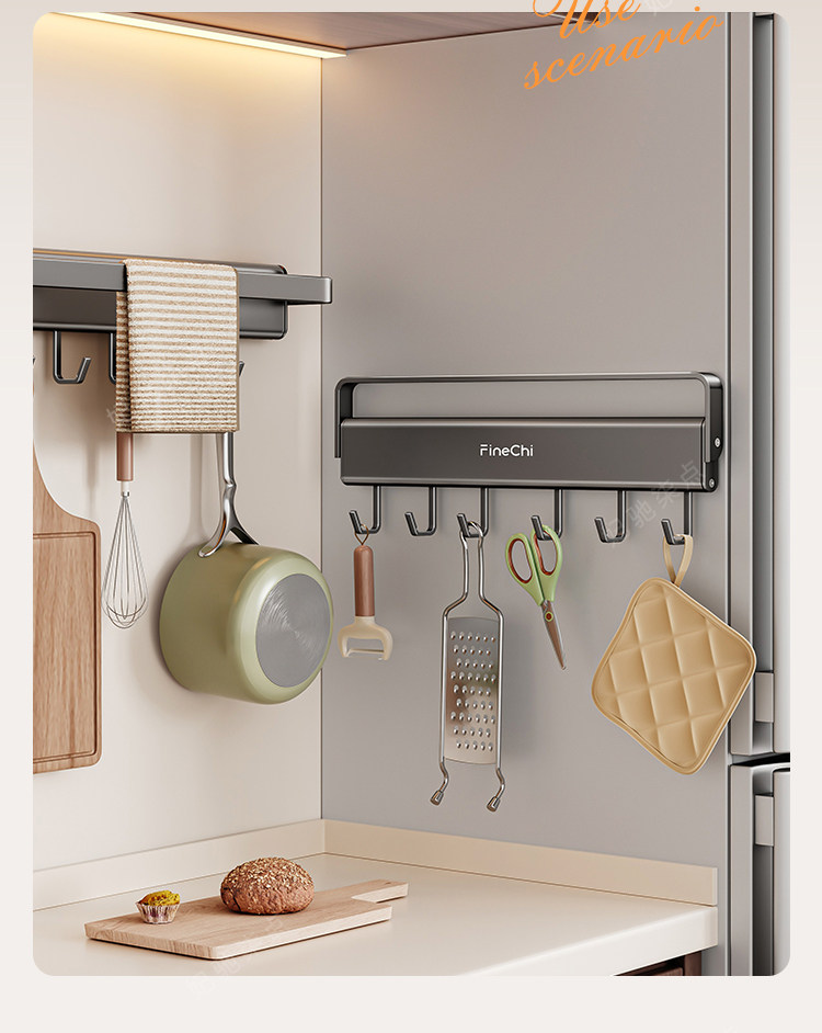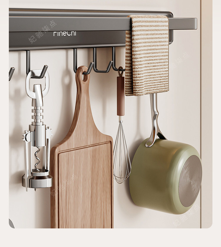 Finechi Kitchen Hook, No-Drill Storage Rack, Multifunctional Wall-Mounted Pot Spoon and Kitchen Utensil Organizer, Movable