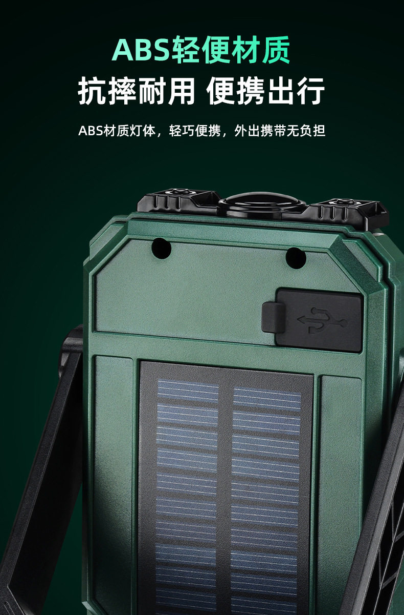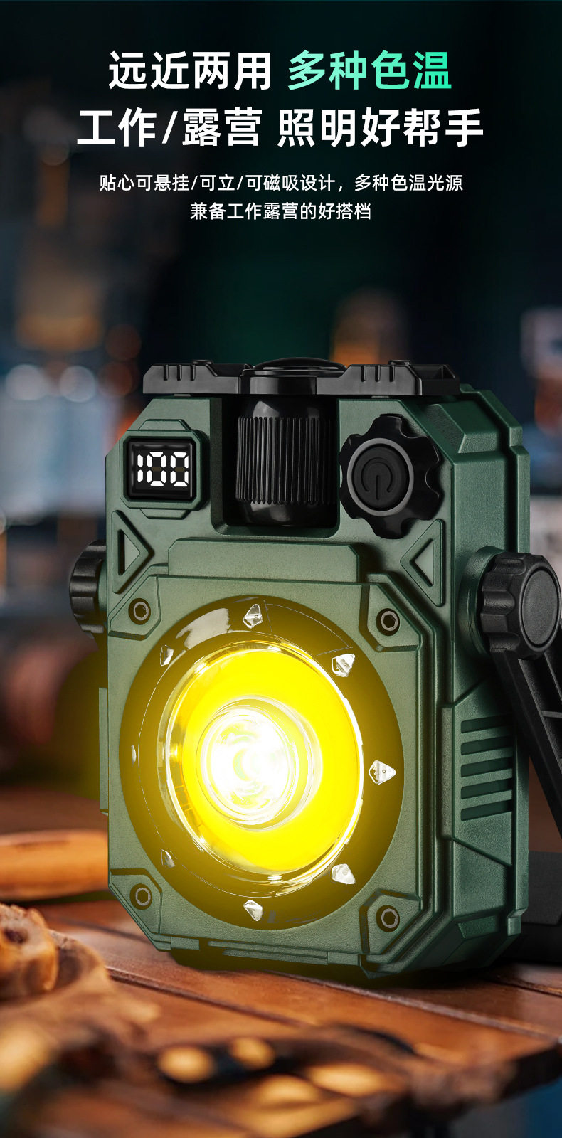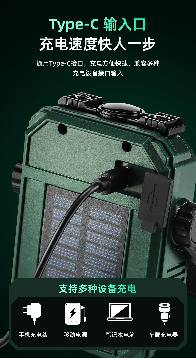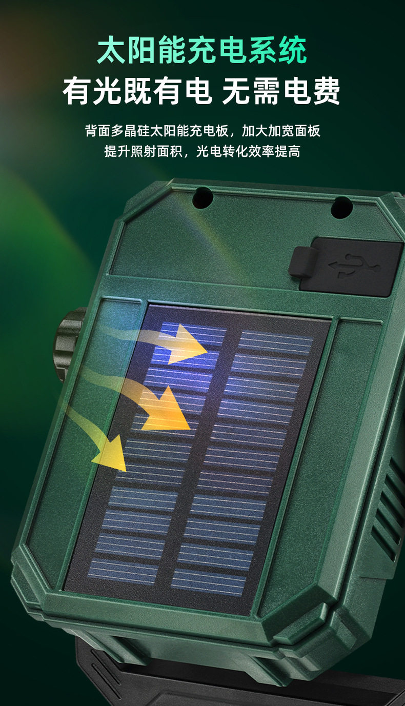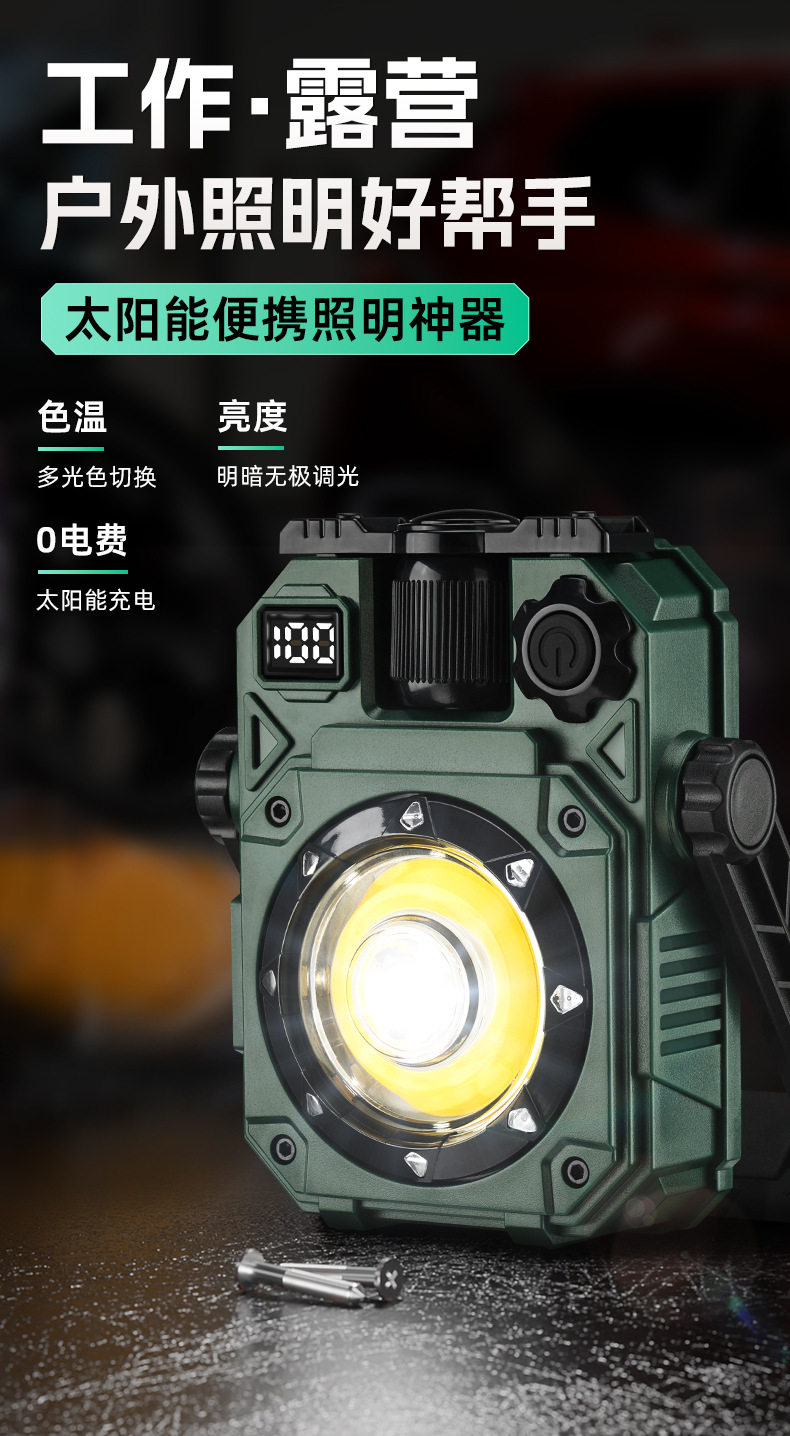 Solar-Powered Yellow and White Dual-Light Work Light with Strong Magnetic Suction, Stepless Dimming, Ultra-Bright Cob Floodlight, Camping Flashlight