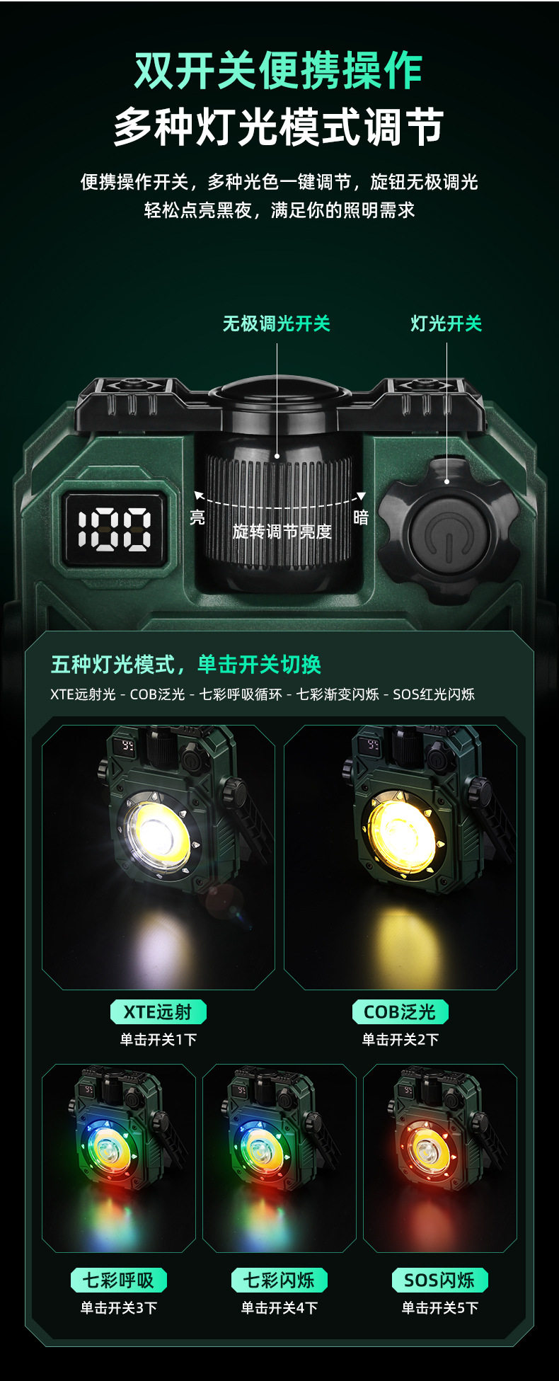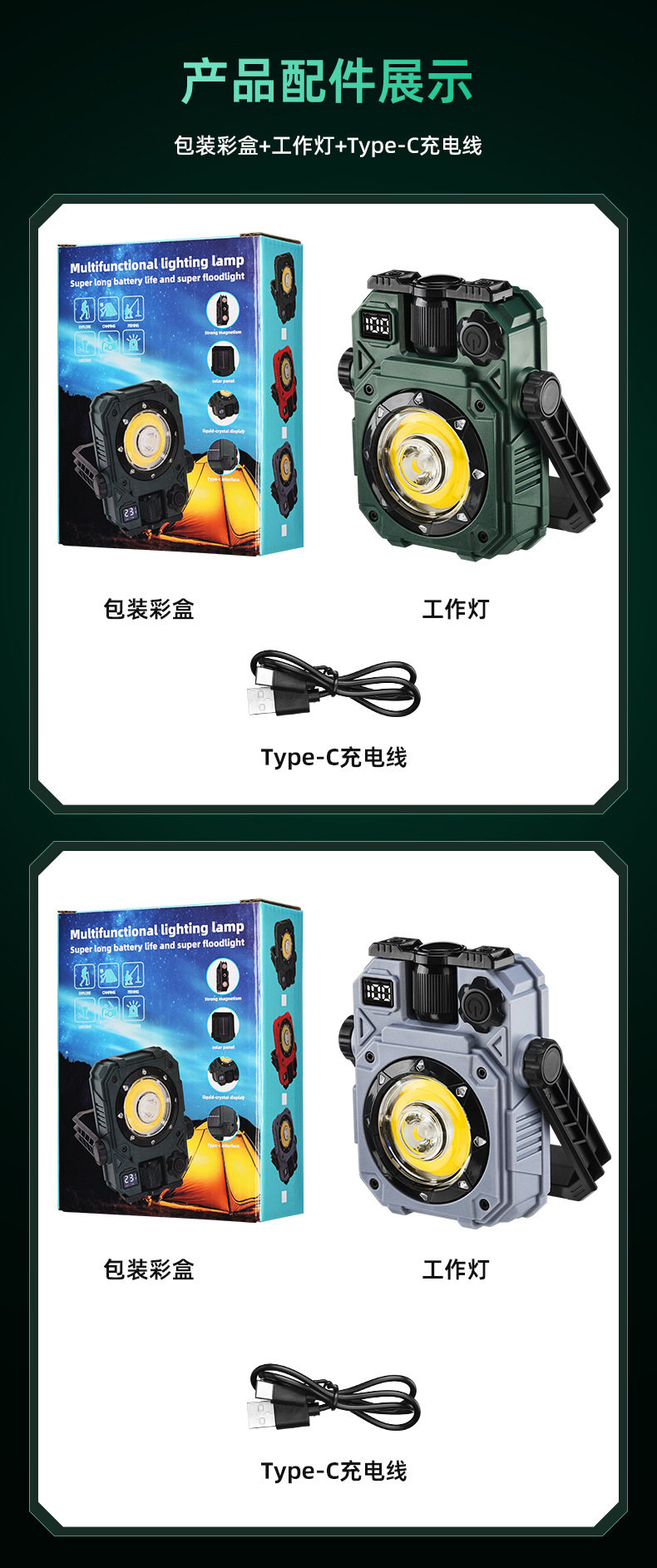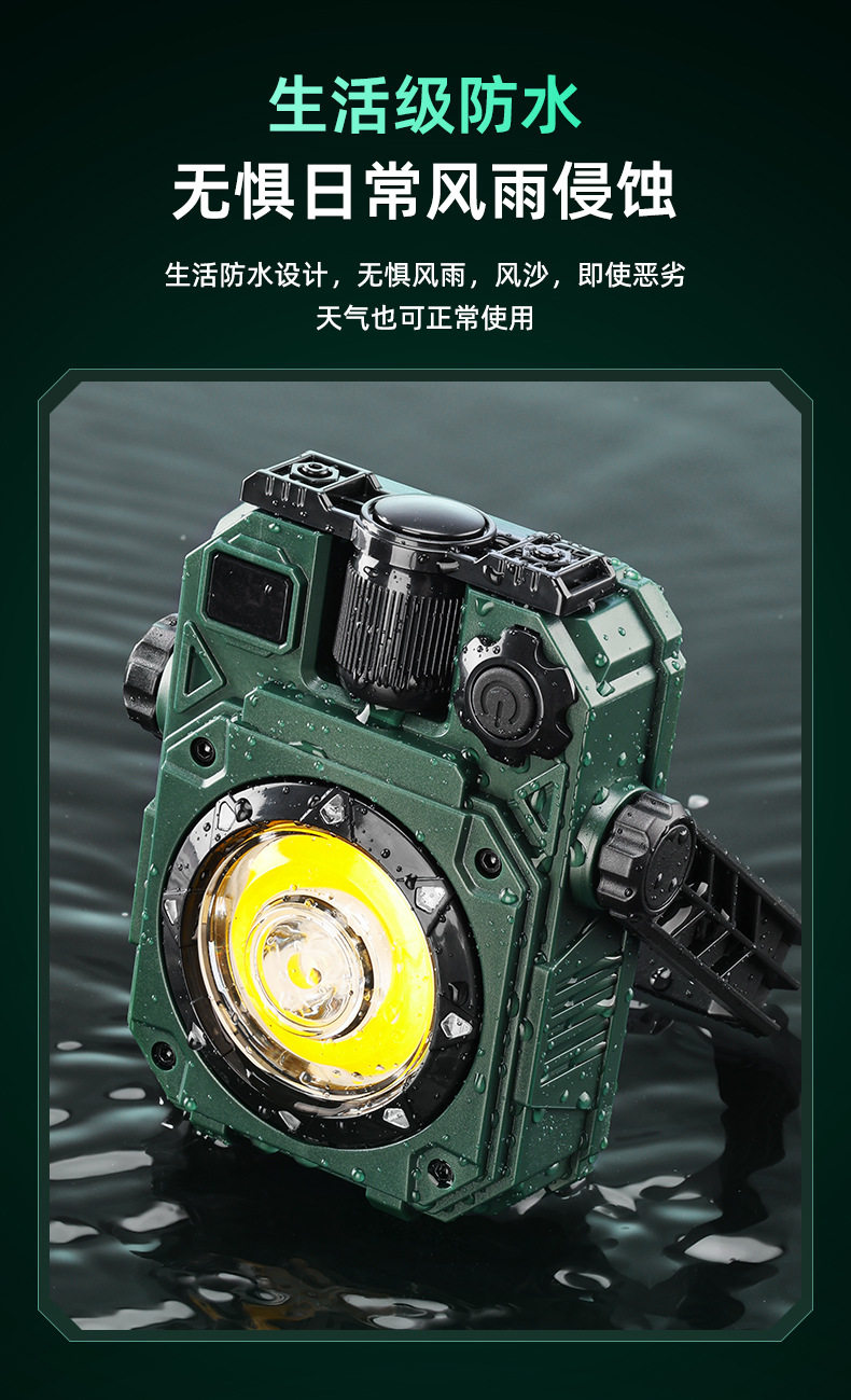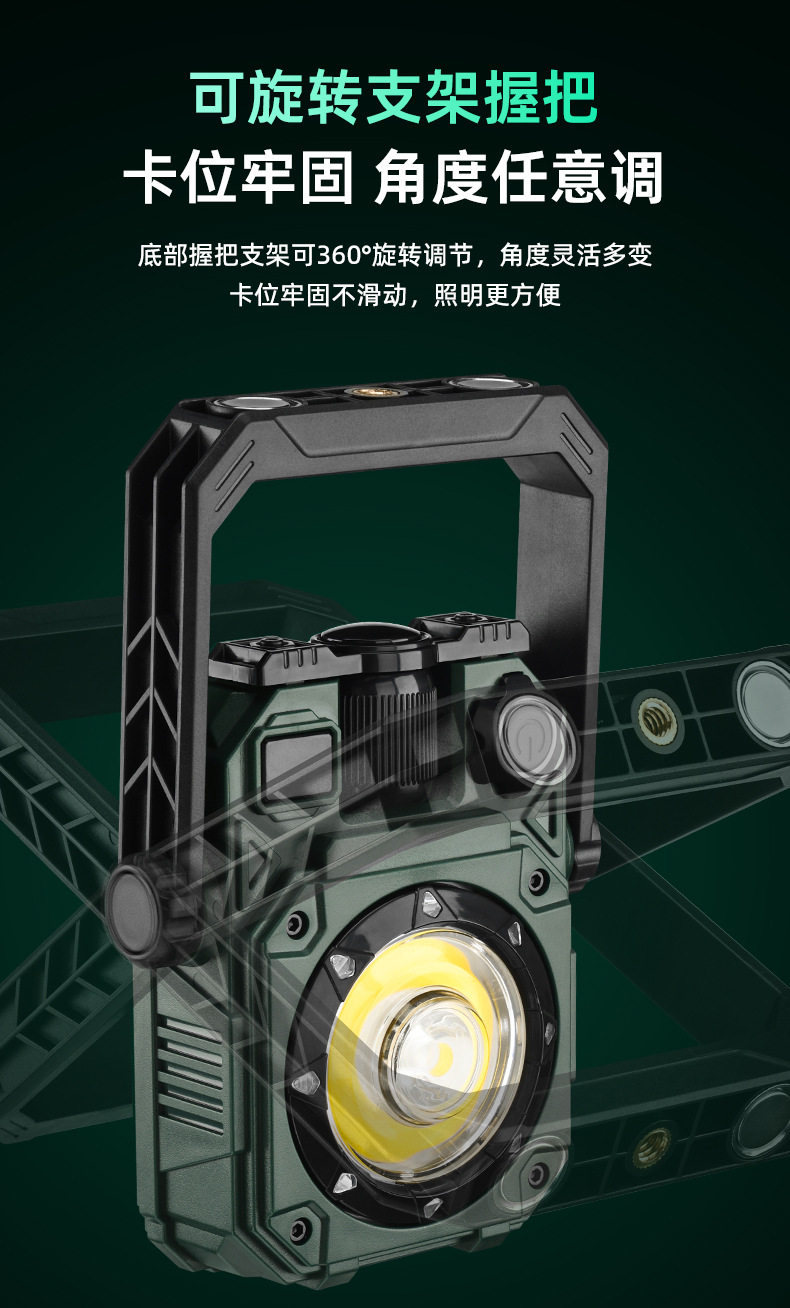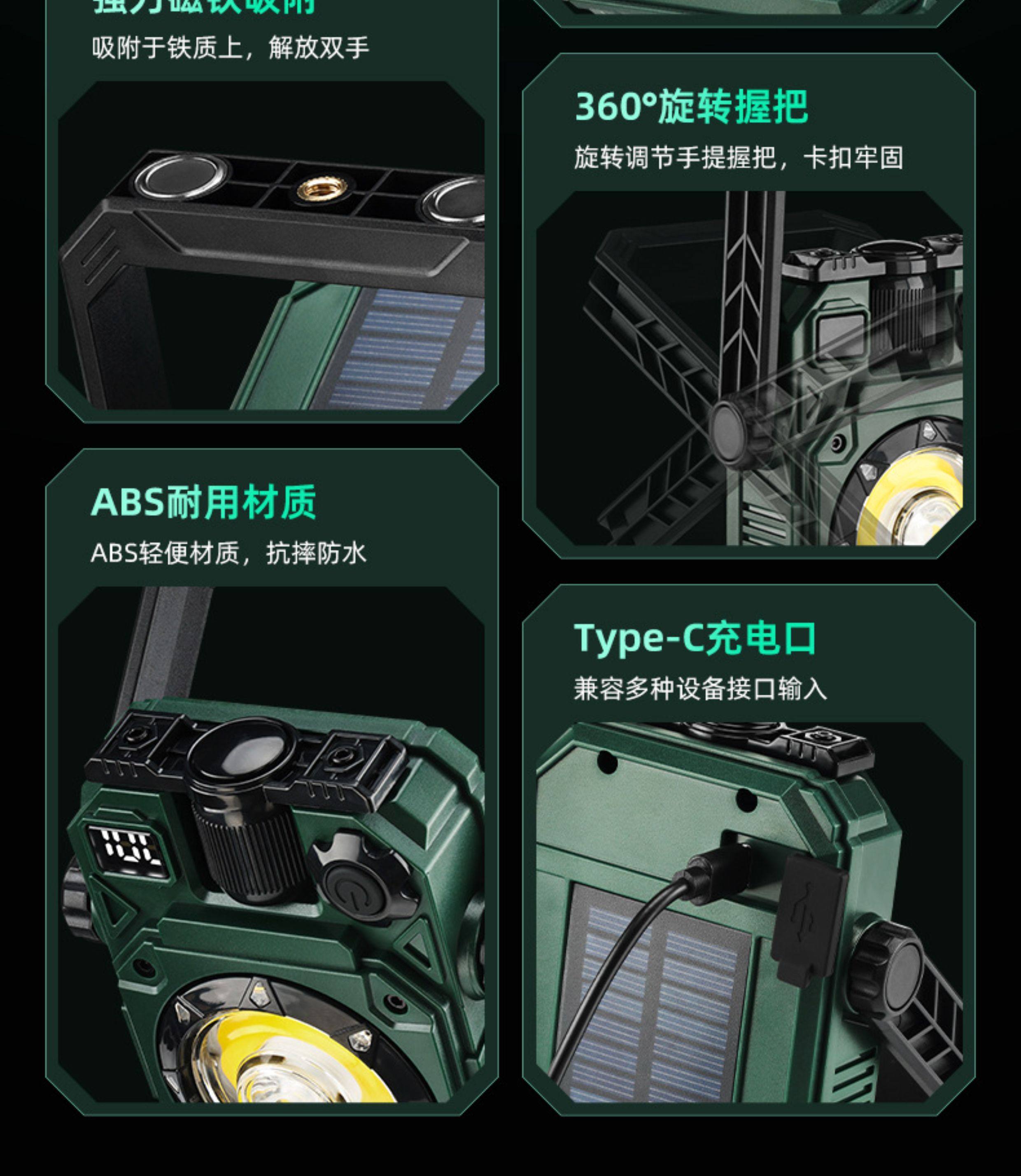 Solar-Powered Yellow and White Dual-Light Work Light with Strong Magnetic Suction, Stepless Dimming, Ultra-Bright Cob Floodlight, Camping Flashlight