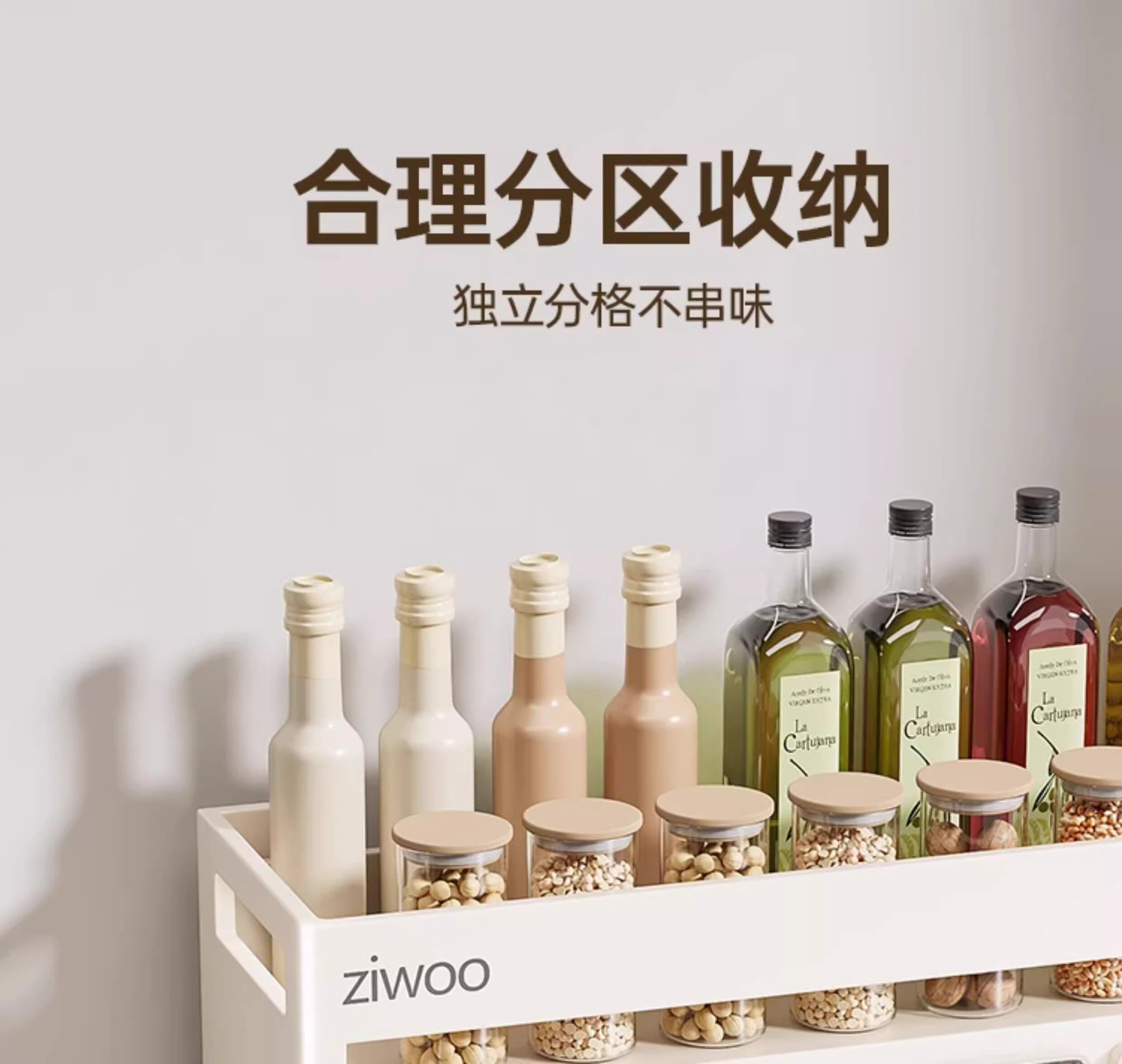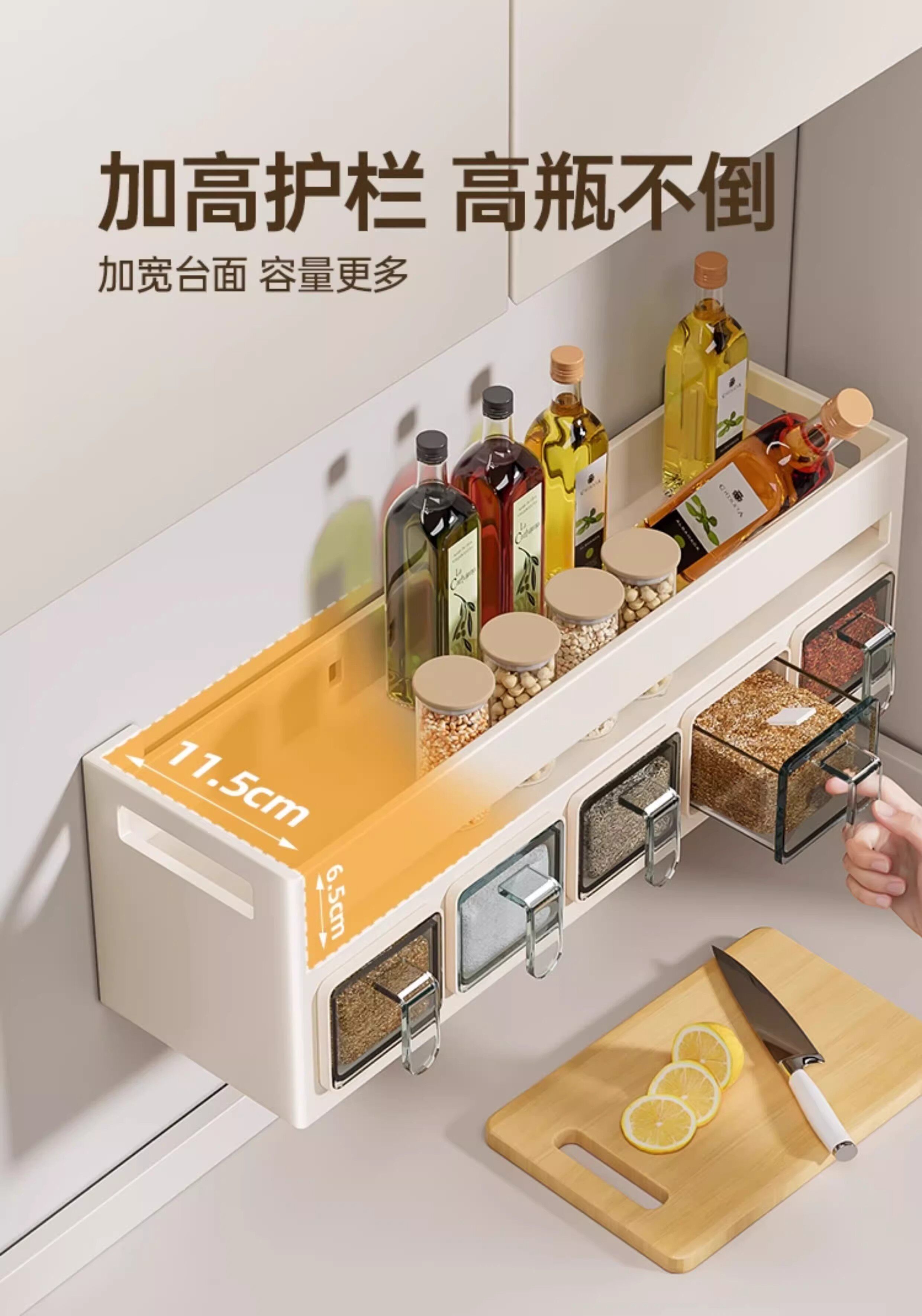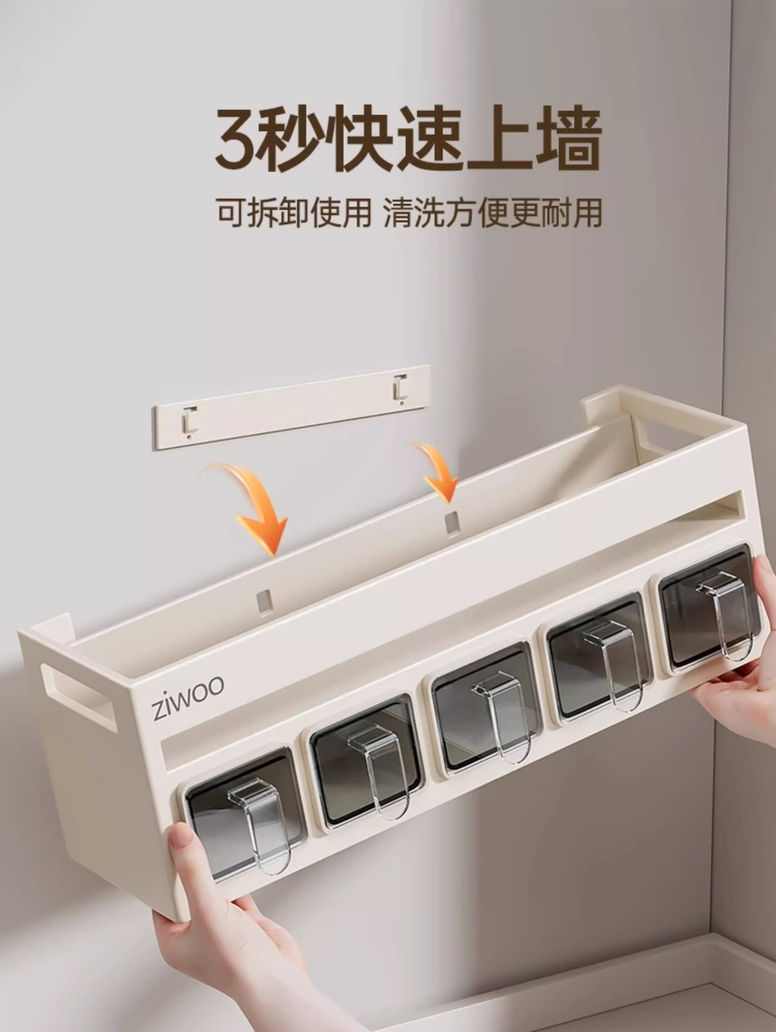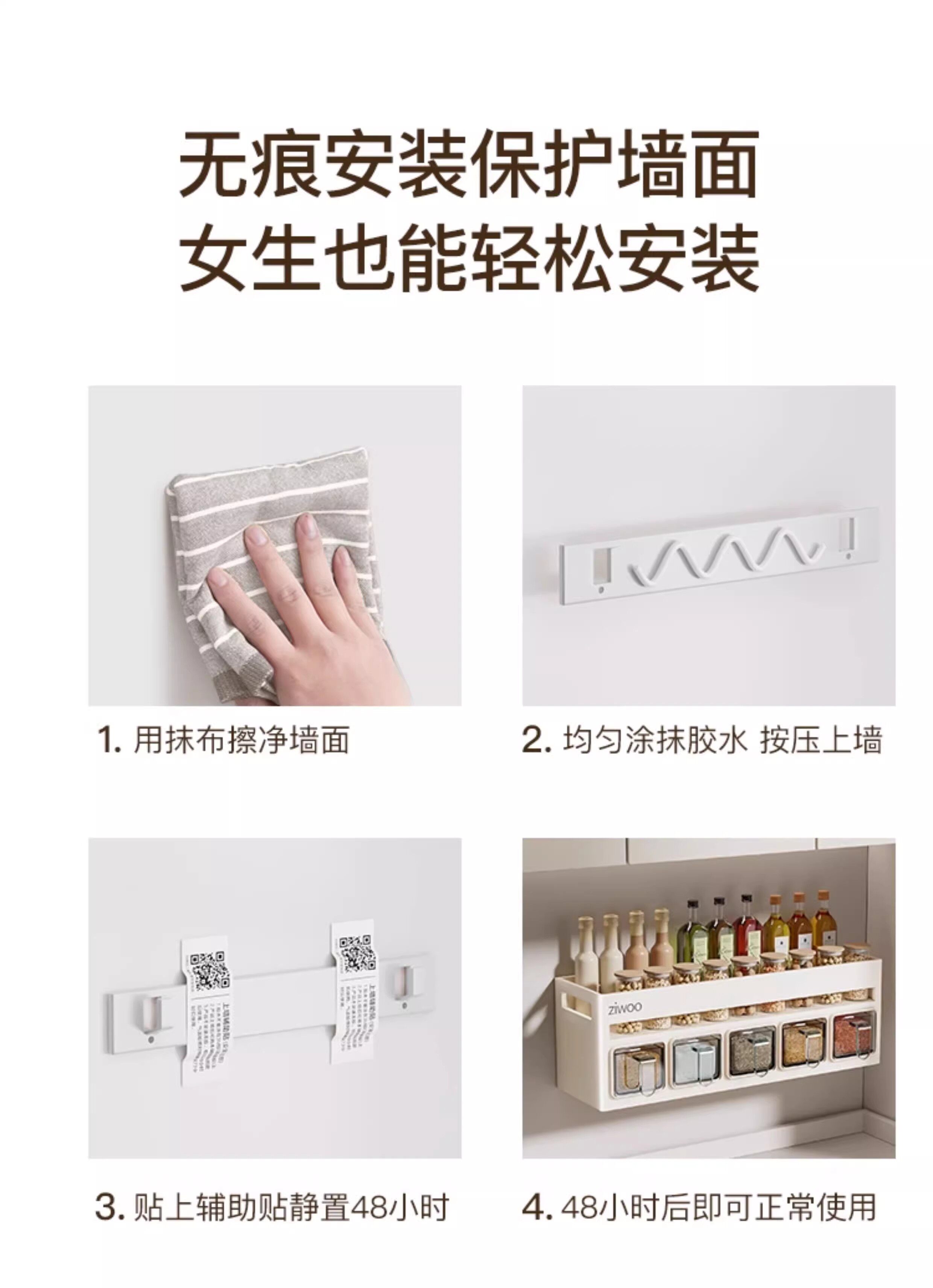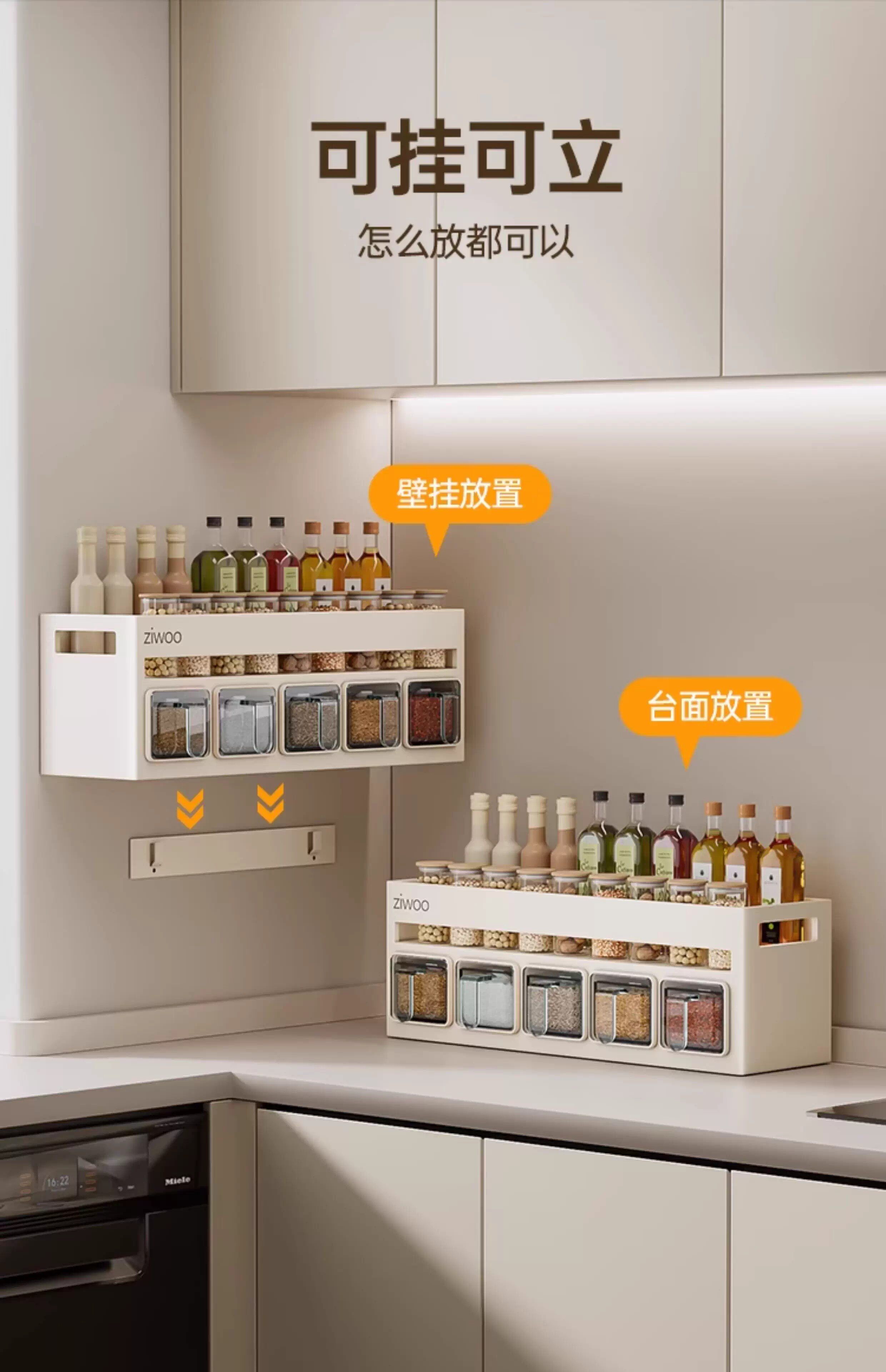 French Ziwoo Kitchen Storage Rack, No-Drill Seasoning Rack, Household Wall-Mounted Multi-Layer Seasoning Storage Shelf