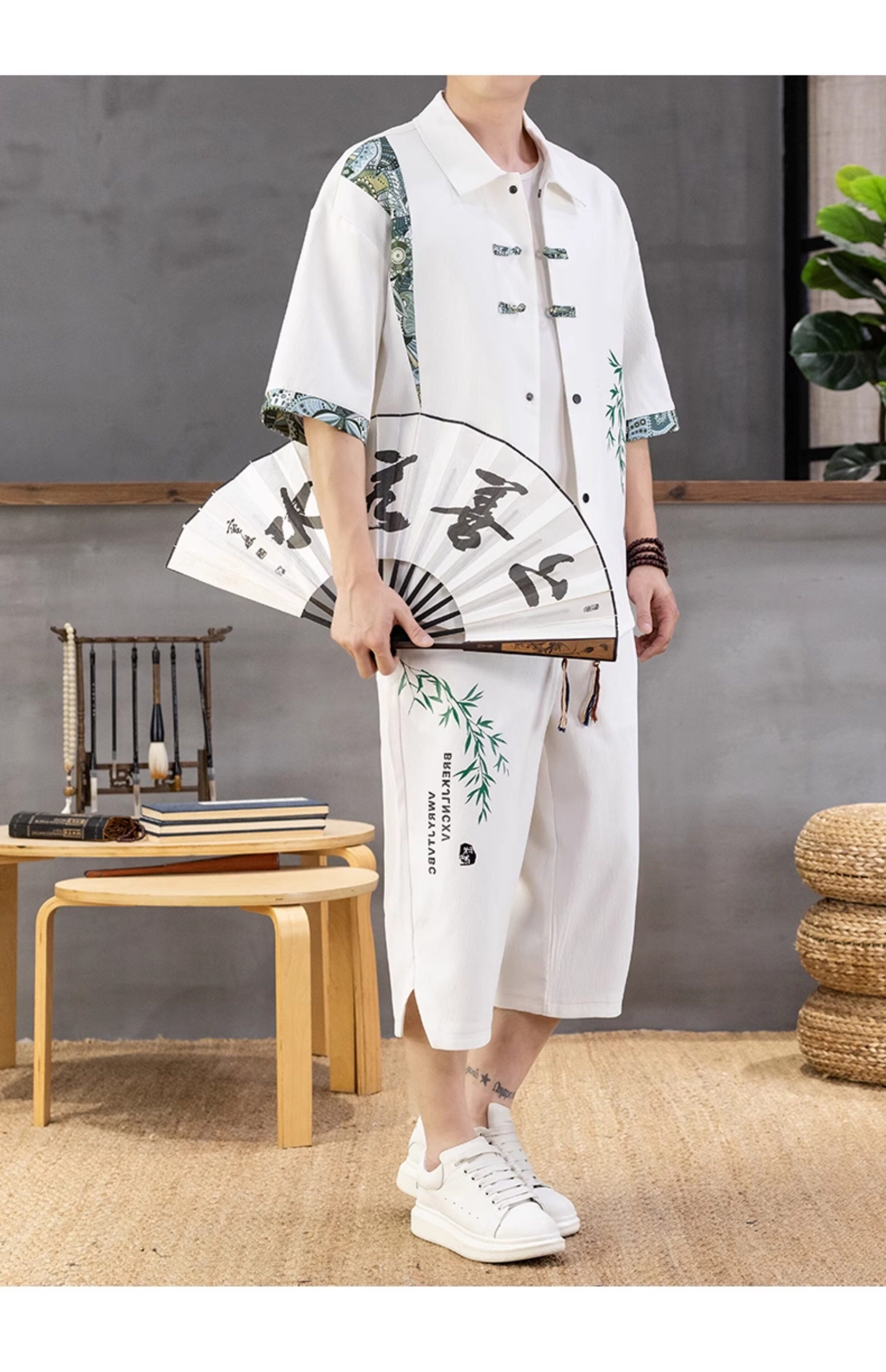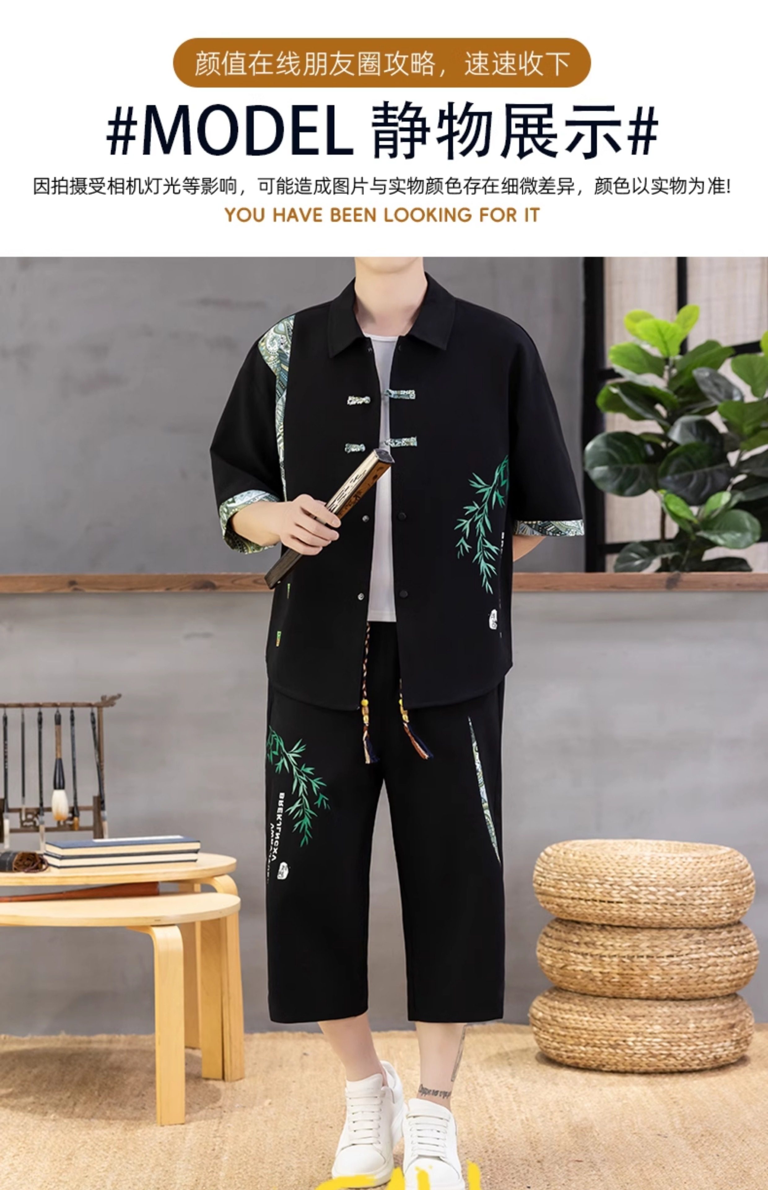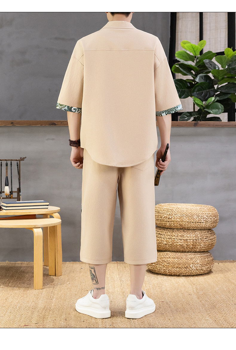 Summer New Style Chinese Casual Short-Sleeved Shirt Suit for Men, Loose Thin Cropped Pants, Chinese Style Handsome Two-Piece Set